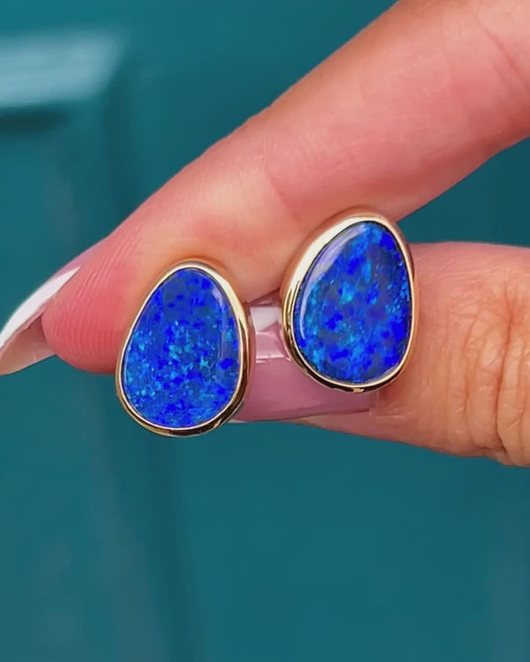 9ct Gold Boulder Opal Bezel-Set Stud Earrings