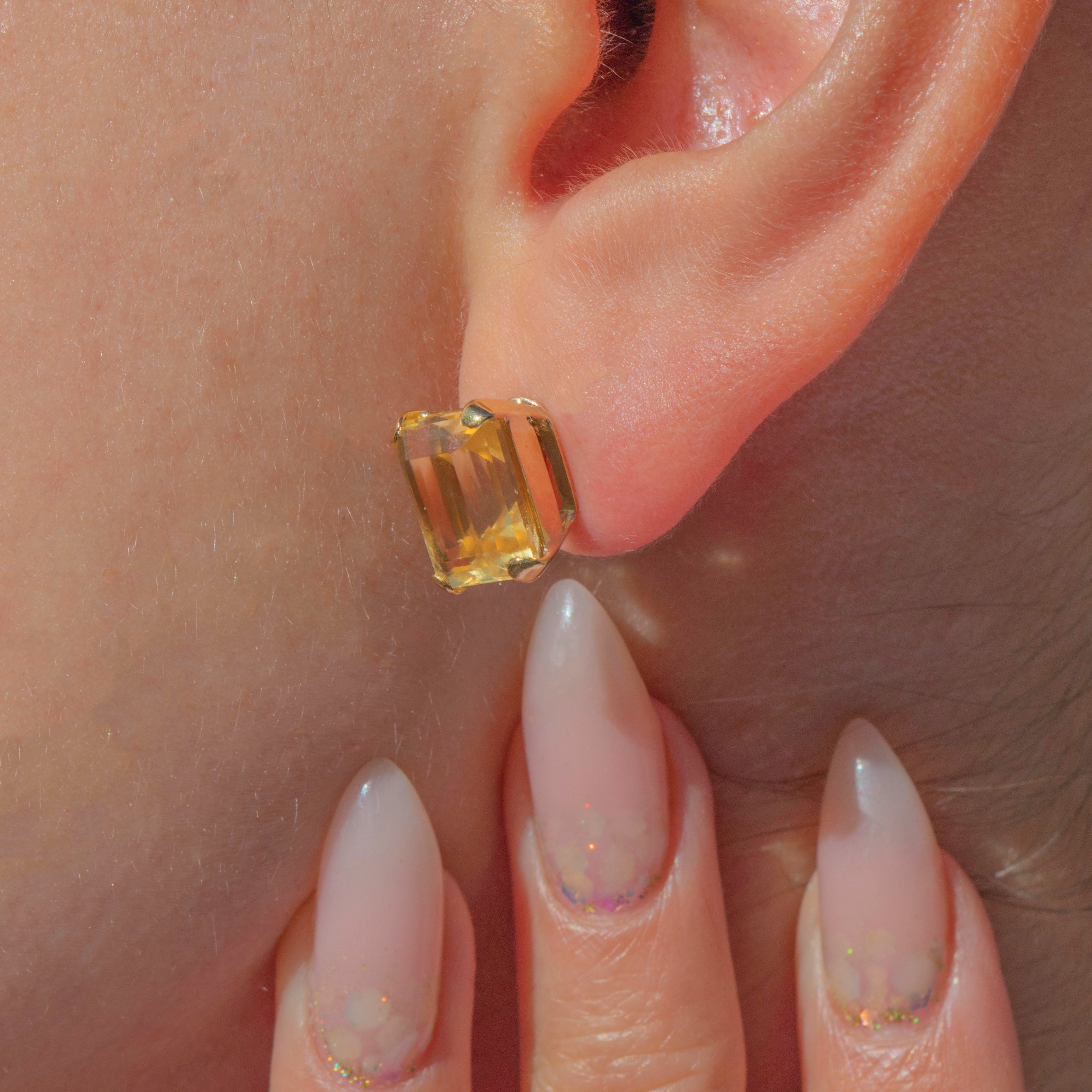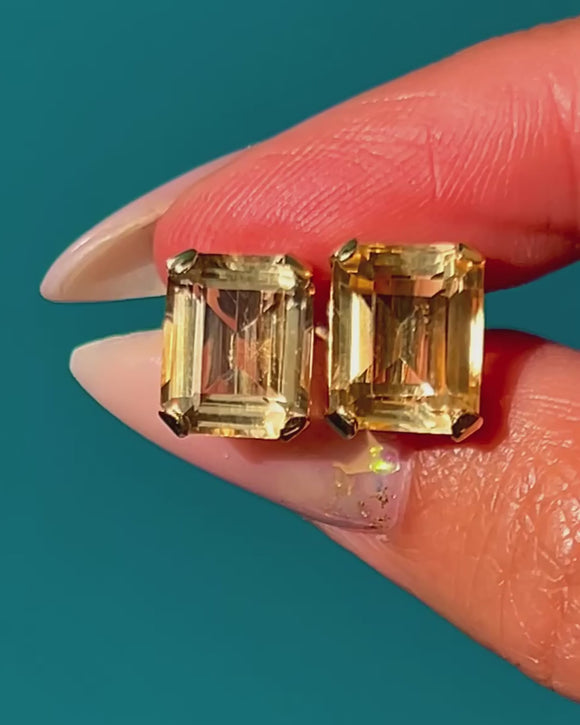14ct Gold Emerald-Cut Citrine Earring, 8.26ct