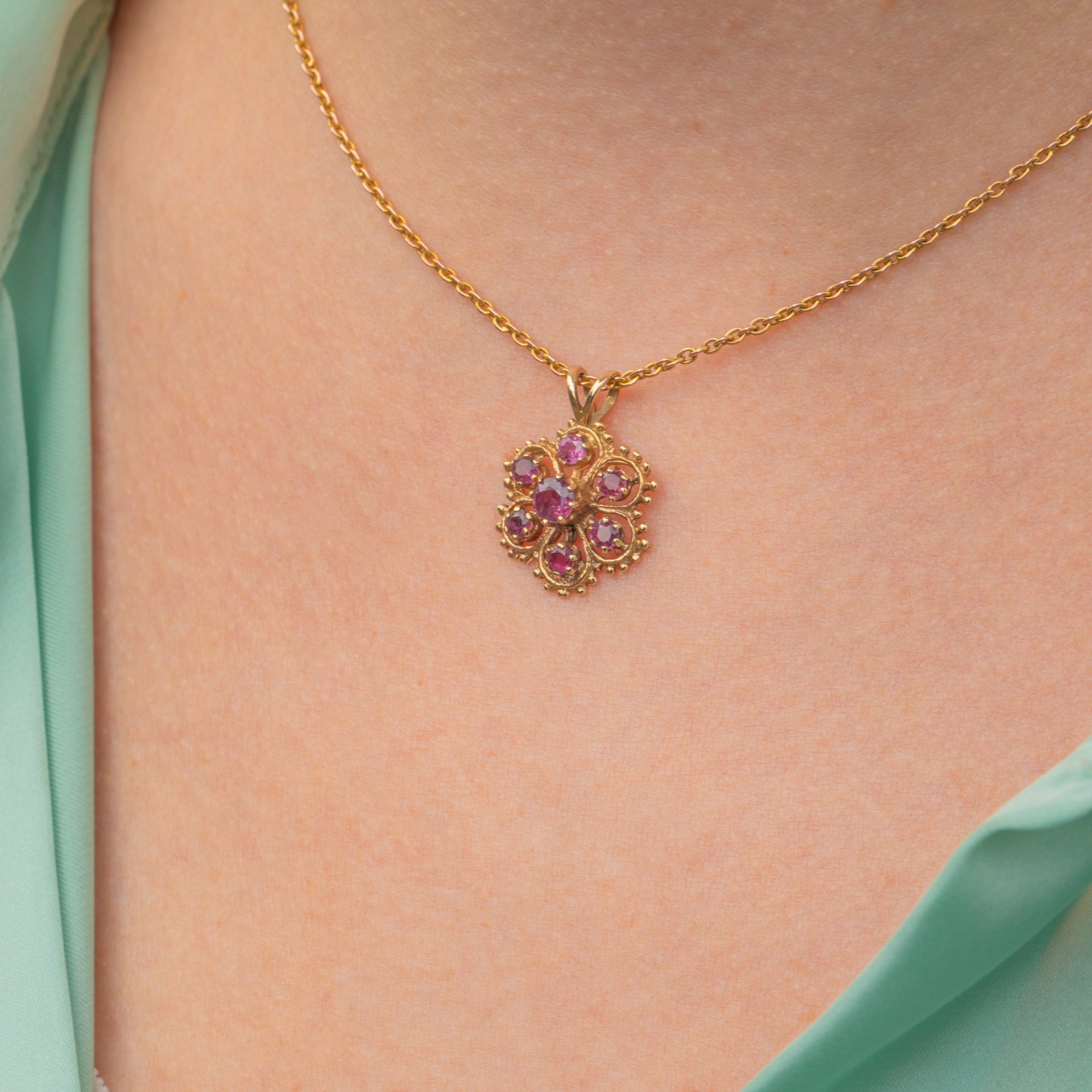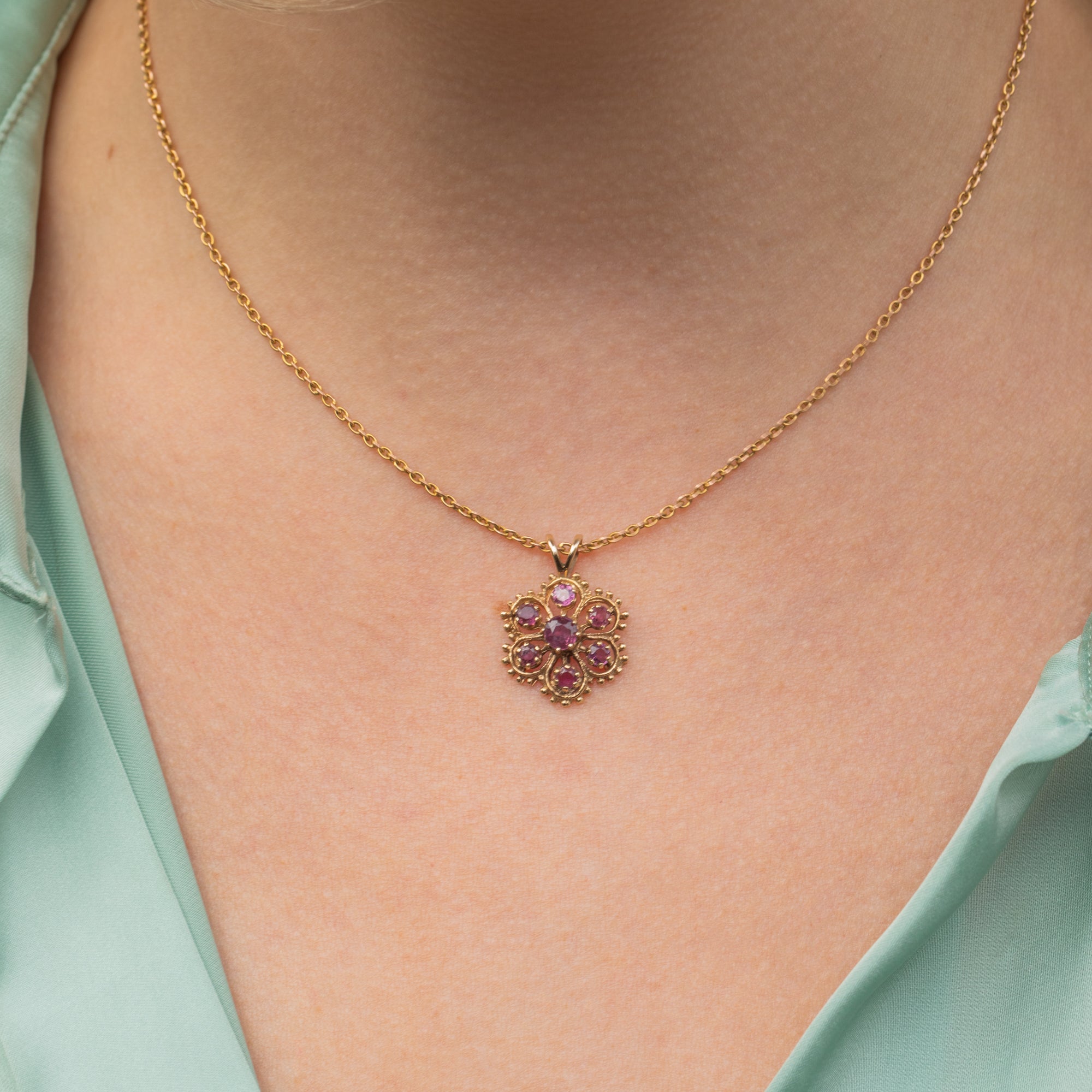 If you're a lover of all things pretty and pink, you'll fall head over heels for this 14ct Gold pink Sapphire flower pendant! Bringing a burst of summer into your outfit at any time, her fuchsia pink hues glisten effortlessly against her glossy 14ct Gold.