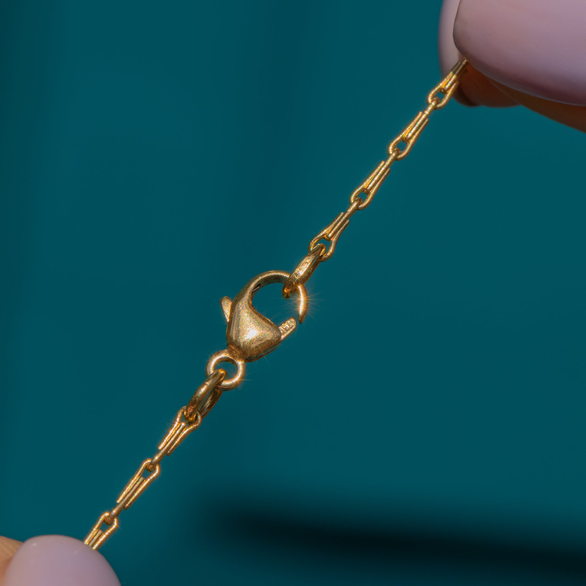 HALLMARKS: 'CC' Makers mark, 750 Convention mark, '750' fineness mark, Birmingham Anchor on claw clasp.