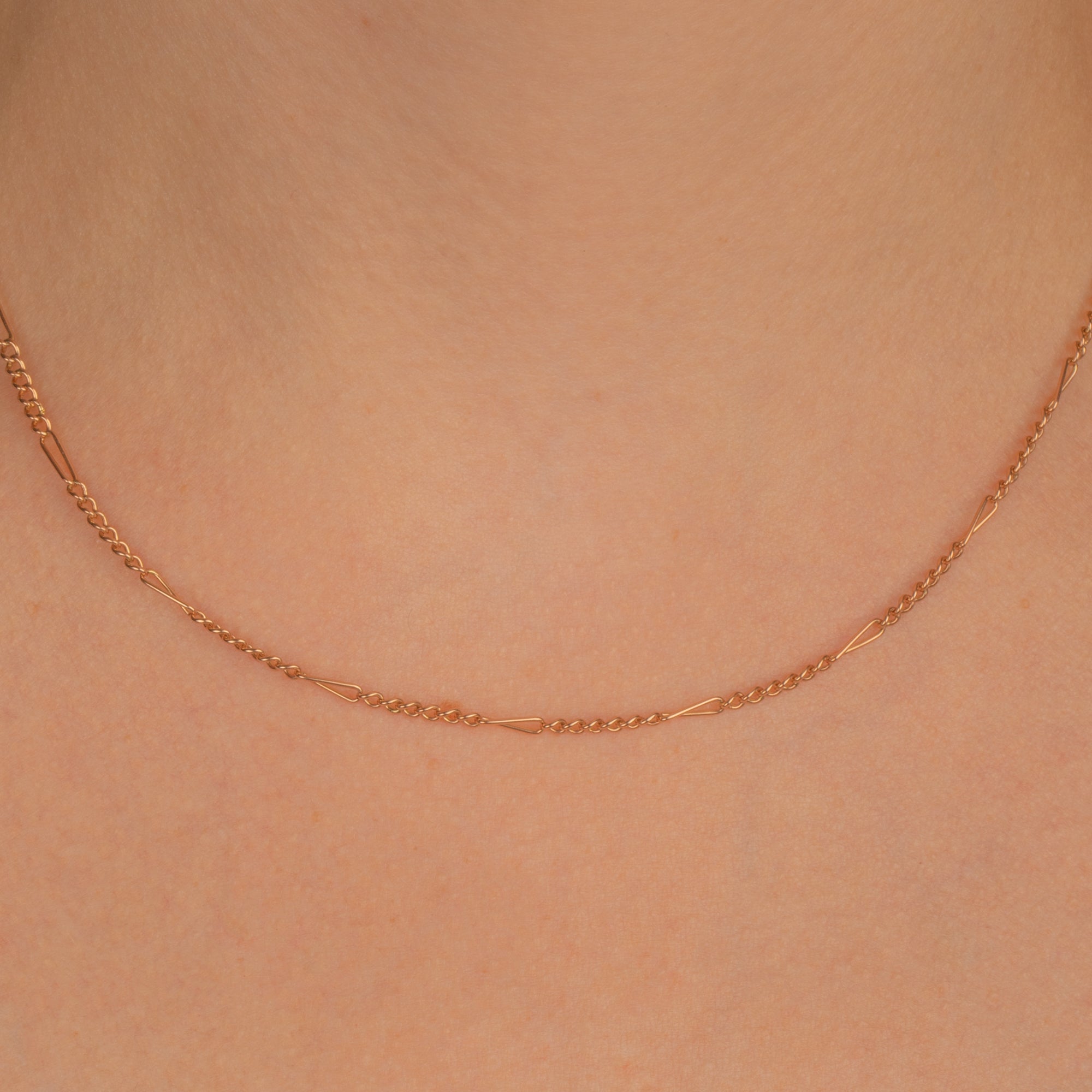 A splendorous 15.5" antique 9ct Gold Figaro chain to add to your repertoire! Crafted from buttery and saturated 9ct Gold, she features alternating longer and shorter curb links making her that highly desirable Figaro chain.