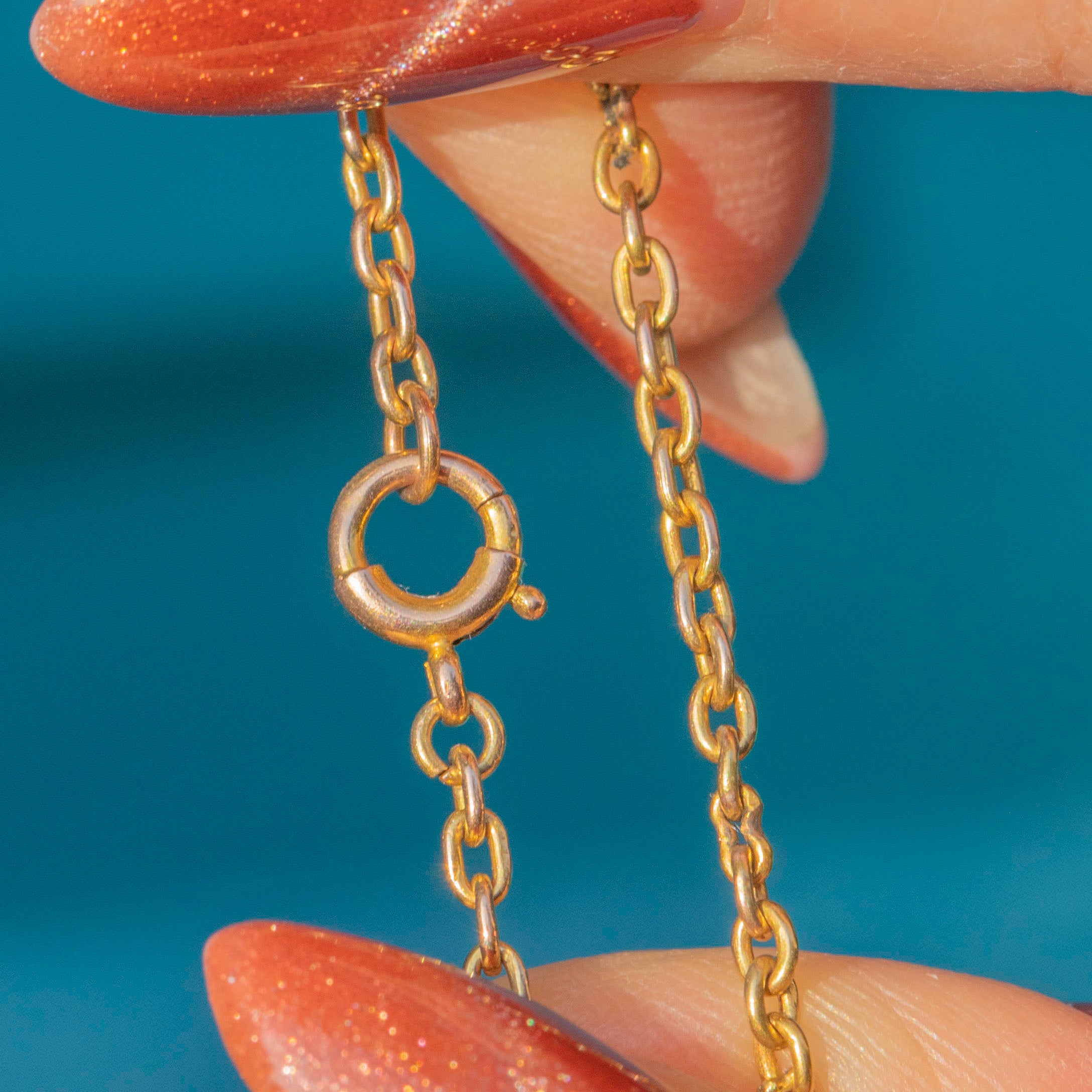 In popular demand, we have managed to source this cute and dainty 15" antique 9ct Gold skinny pendant chain! Crafted from buttery solid 9ct Gold, she radiates warmth as she adorns your décolletage, a necessity for every antique jewellery collection!