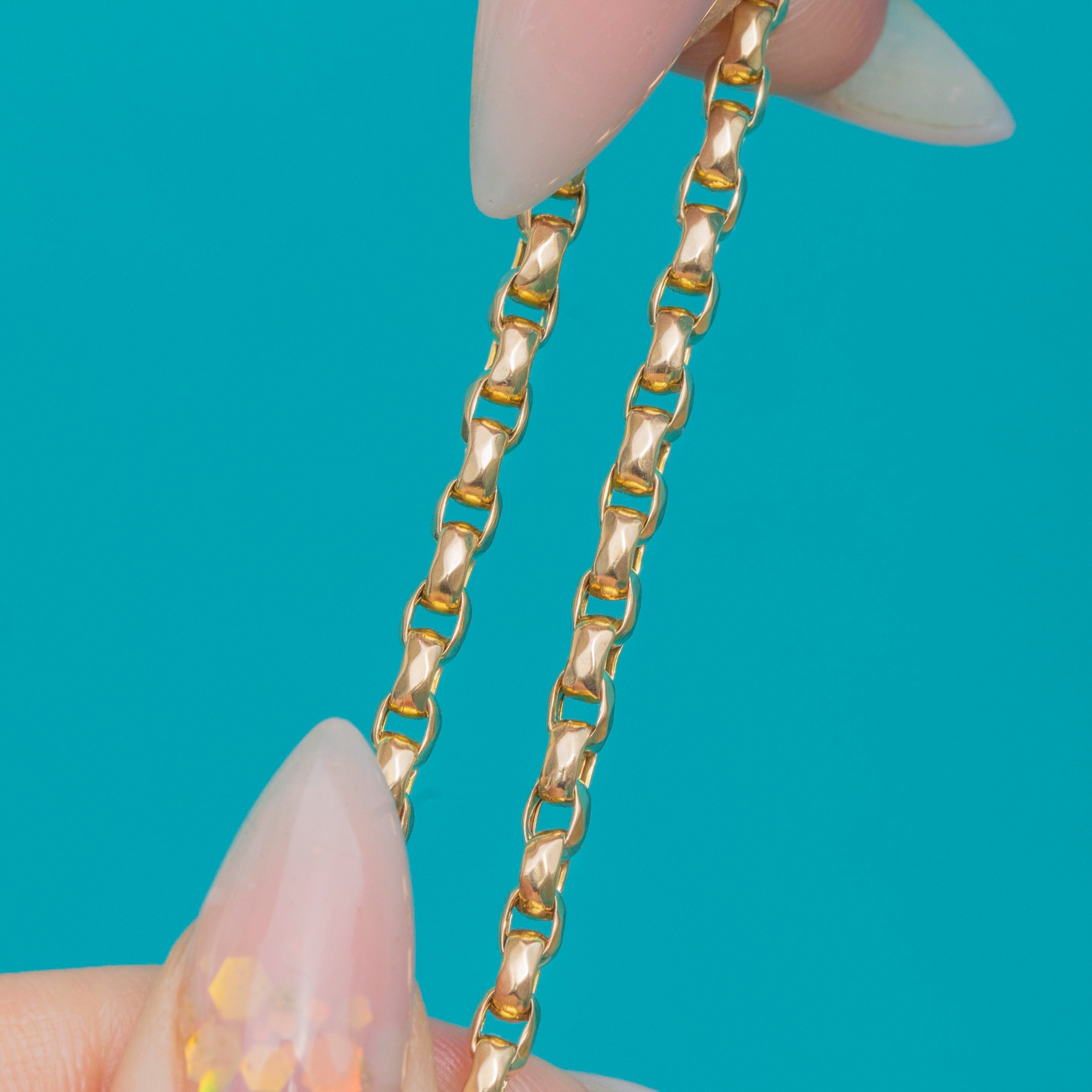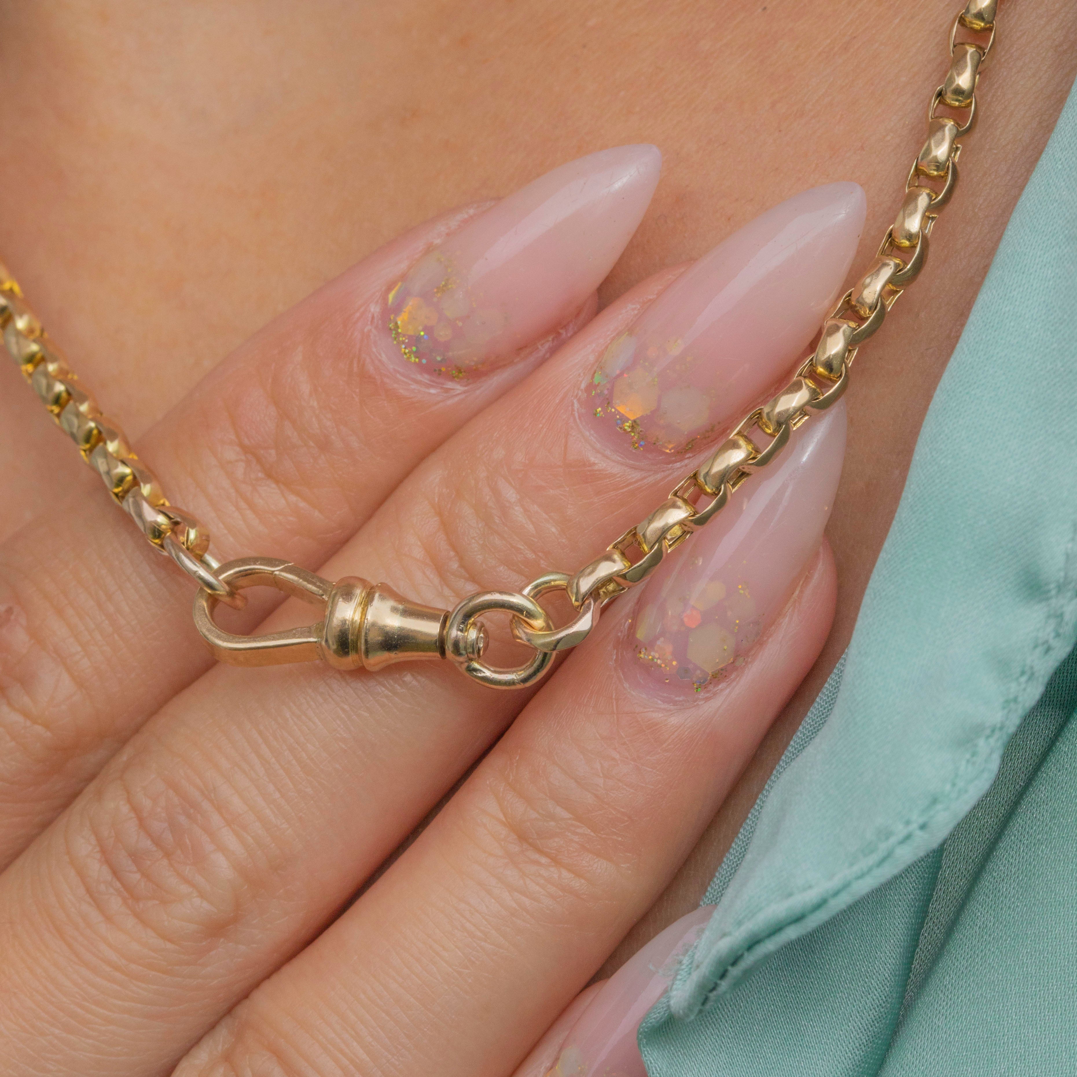 Weighing 10.2g, this antique chain is a fine example of Victorian craftsmanship, with a warm Gold hue and timeless design that remains effortlessly wearable today.