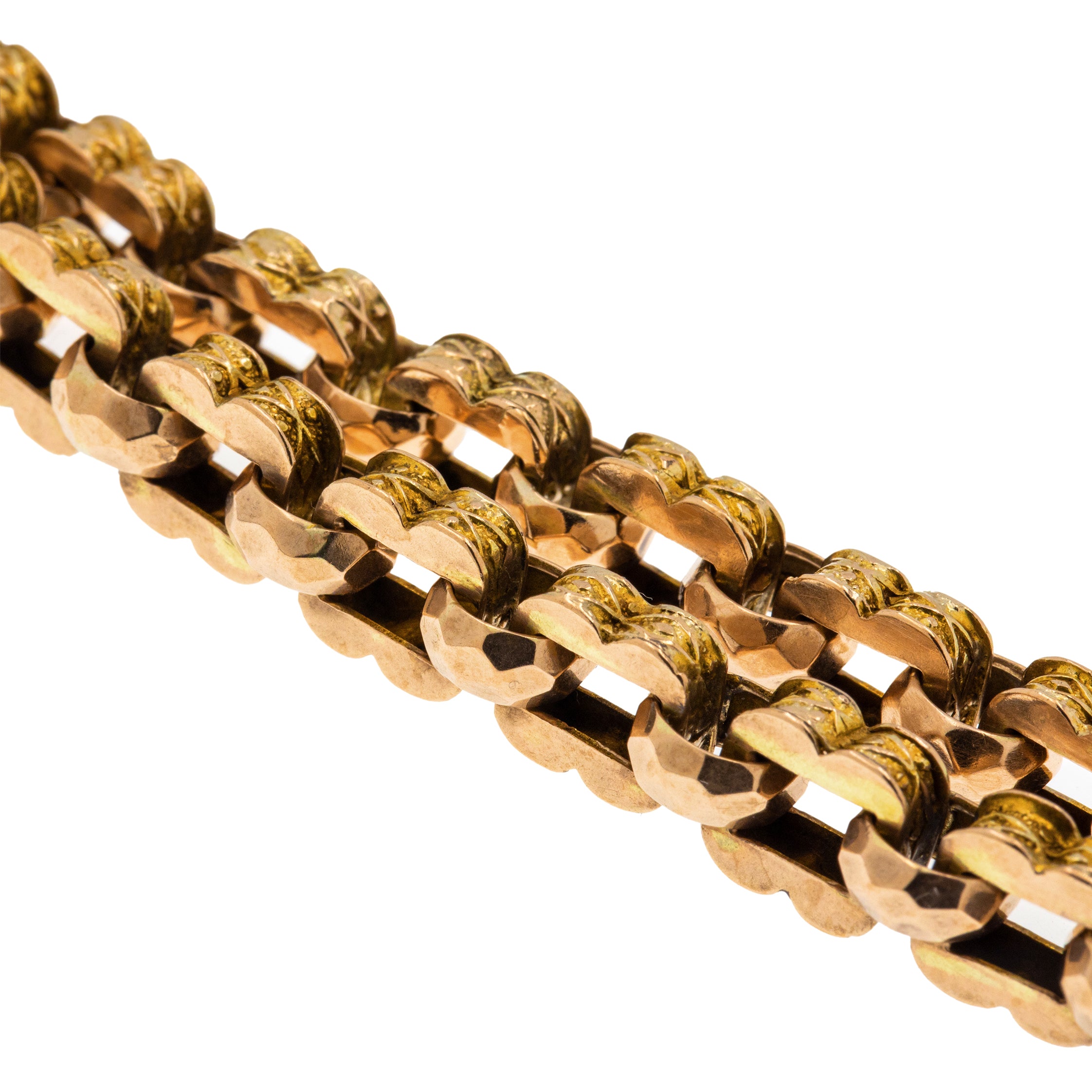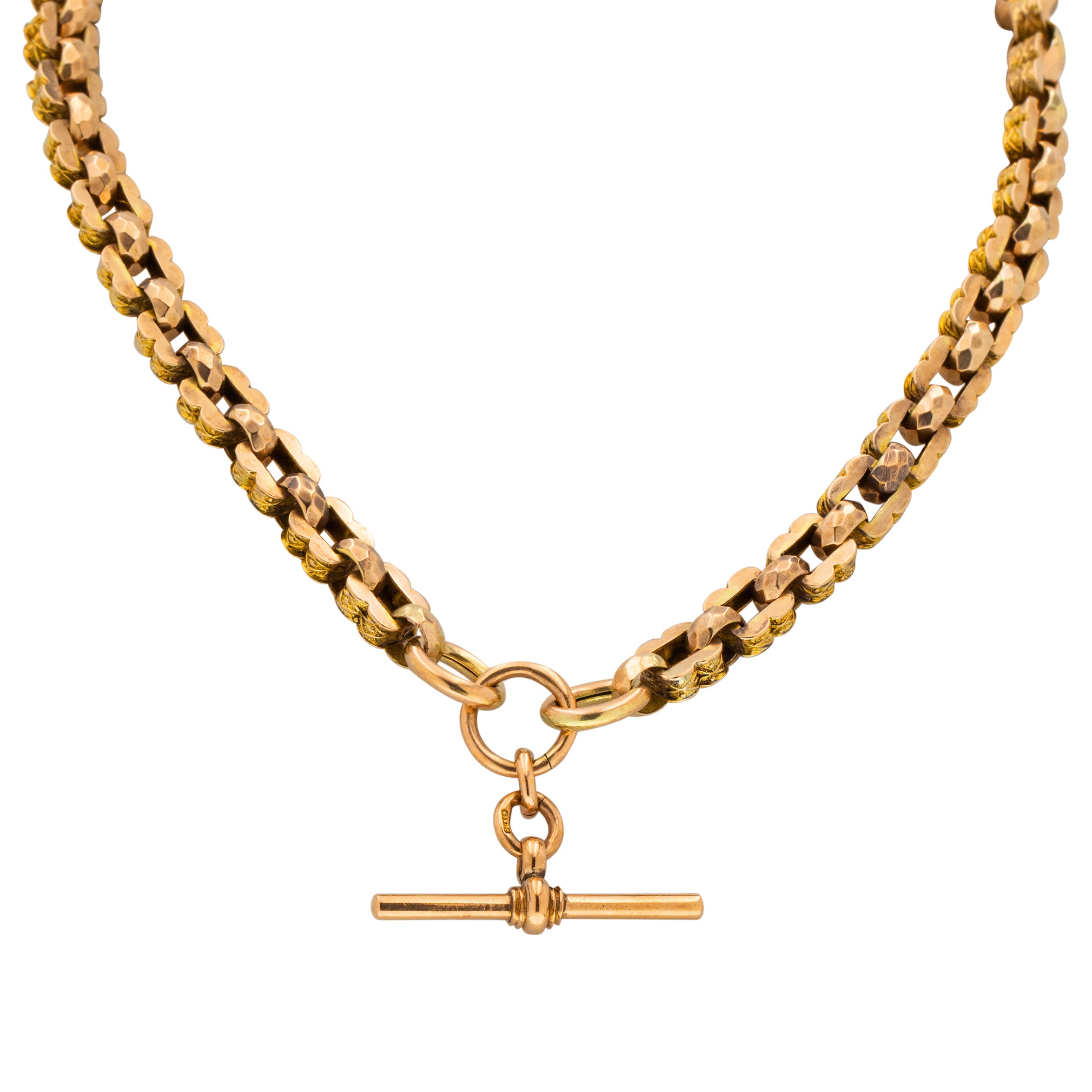 Quintessentially Victorian, the 15" length boasts uniquely shaped links with intricately engraved details that will effortlessly accentuate your neckline. A rare and highly collectible piece, don't hesitate to make this exceptional antique Gold t-bar necklace the newest addition to your collection!