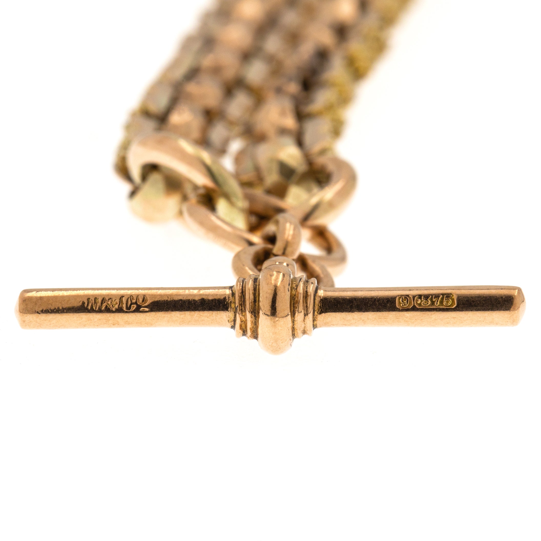 HALLMARKS: 9C tag. 9, .375, P&M Makers mark on dog-clip. 9, .375, WA&Co on T-bar. Birmingham Anchor, Date letter V on jump ring connected to t-bar for the year 1870.
