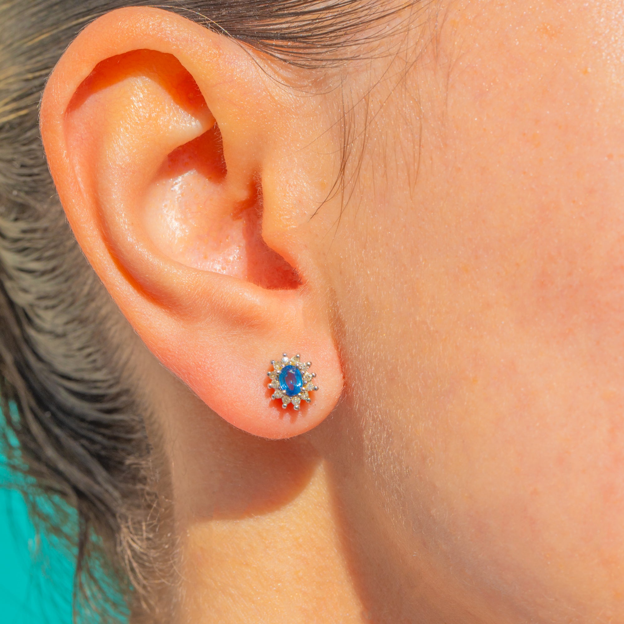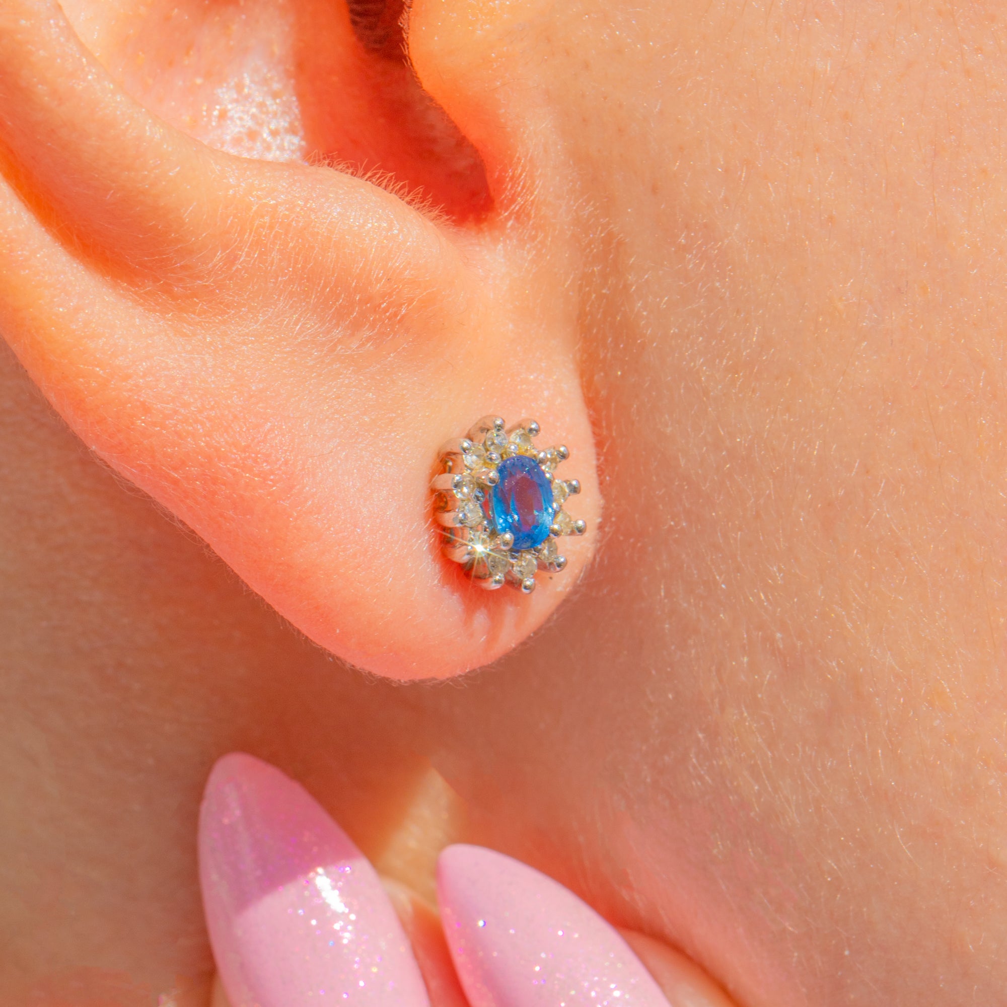 15ct Gold Cornflower Blue Sapphire & Diamond Cluster Stud Earrings