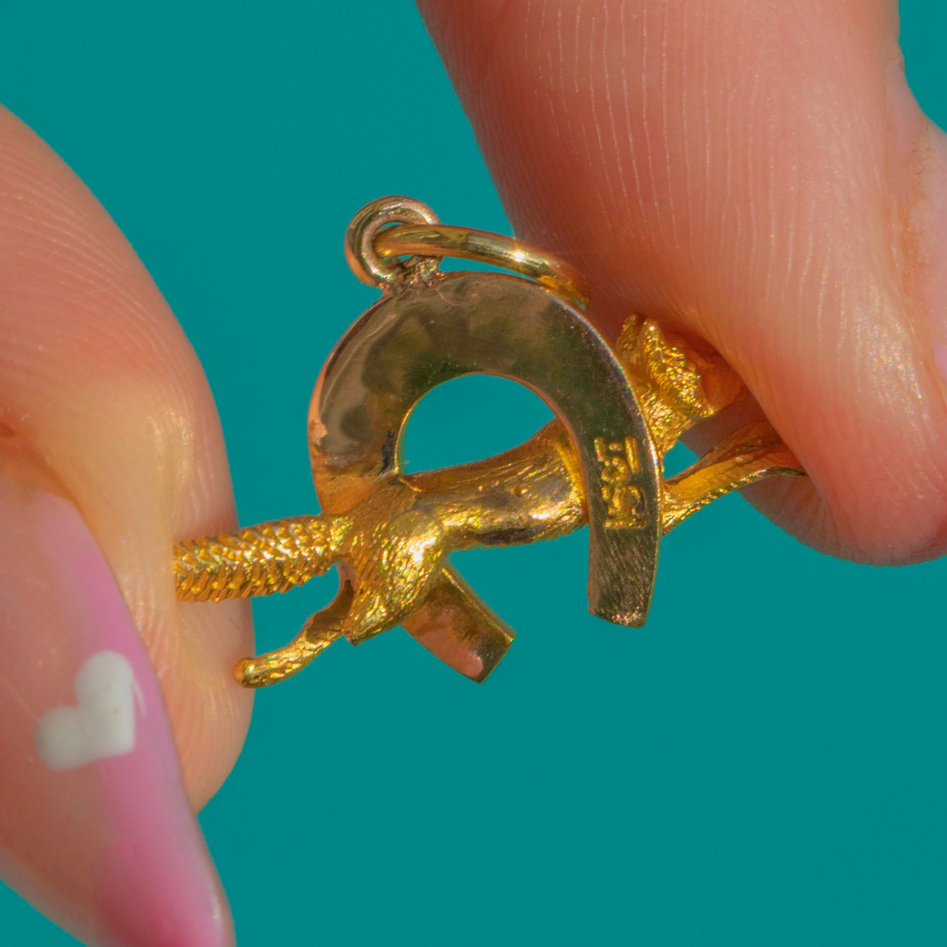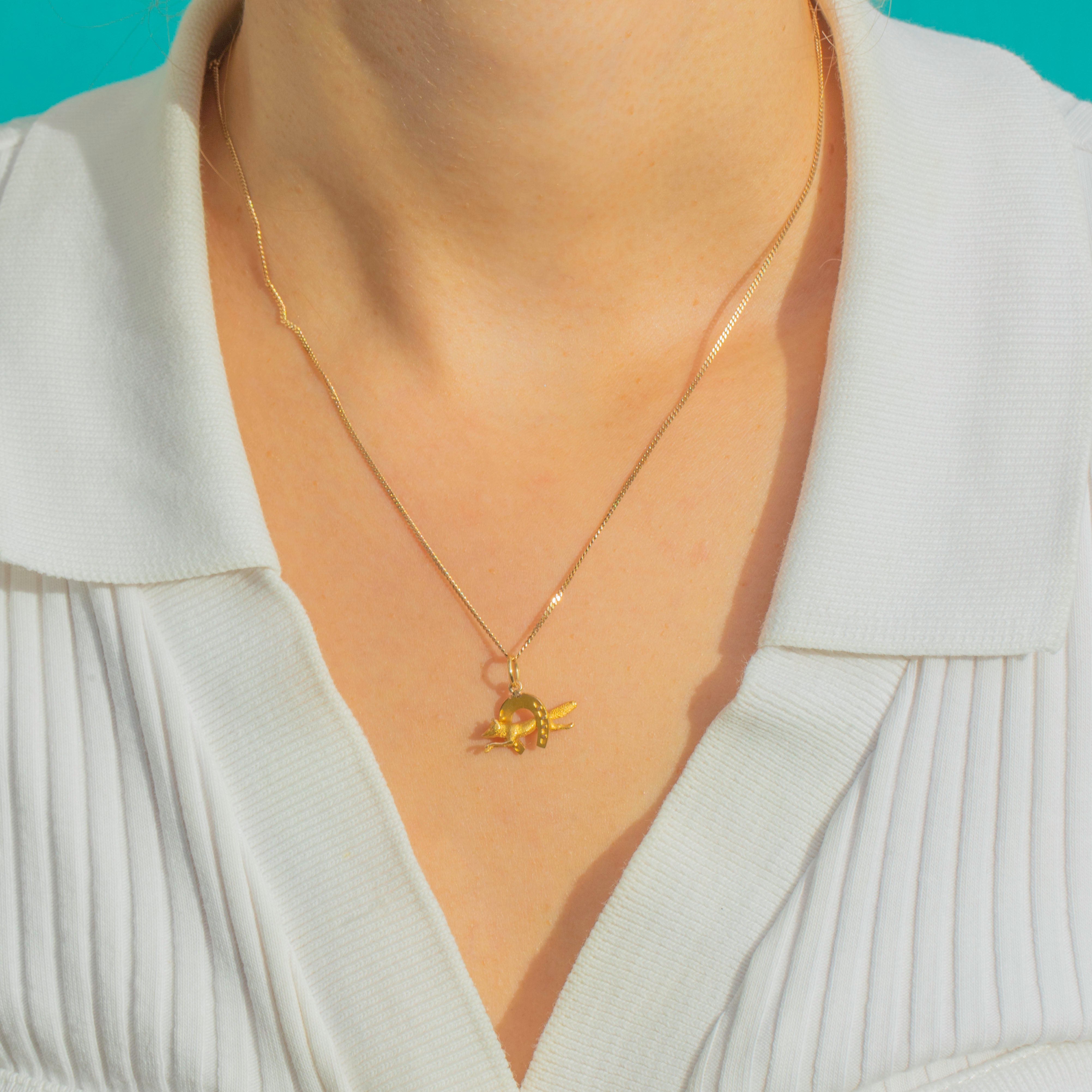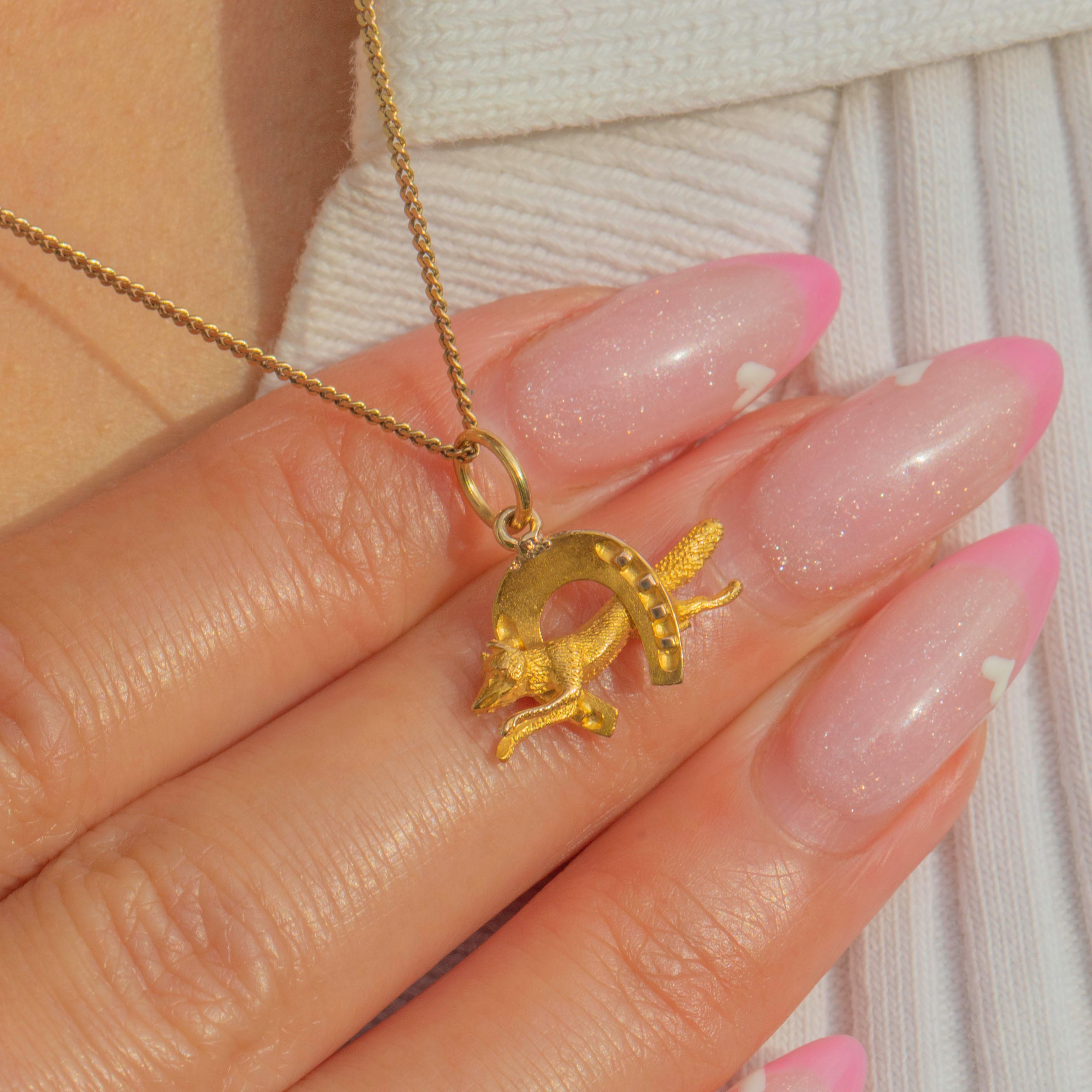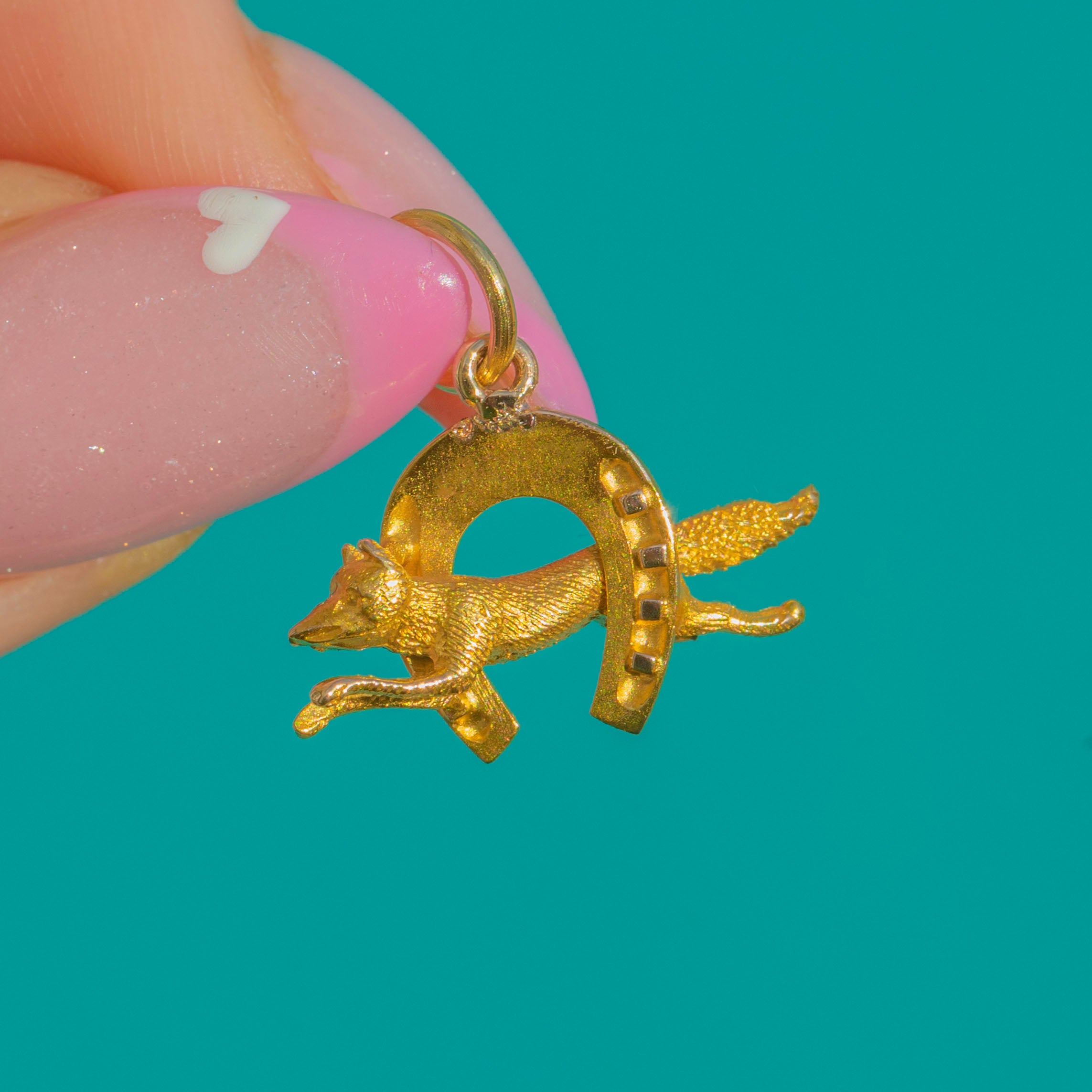 EXCELLENT: The charm is in superb condition with crisp detailing to the fox’s head and horseshoe. The Gold remains bright with minimal wear, and the jump ring is secure.