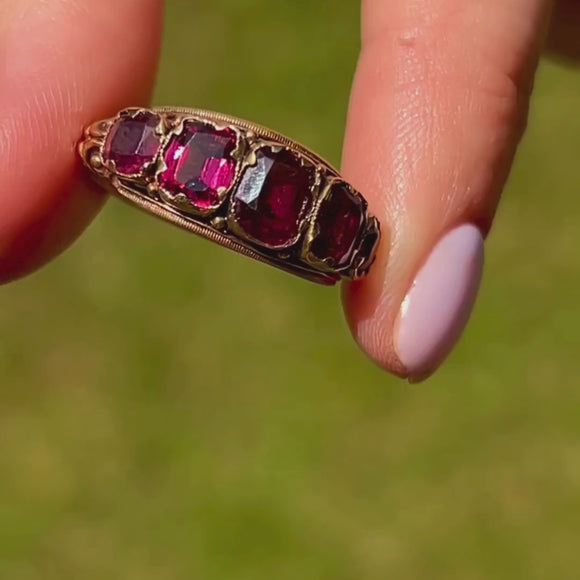 15ct Gold Garnet Five-Stone Ring, c.1876