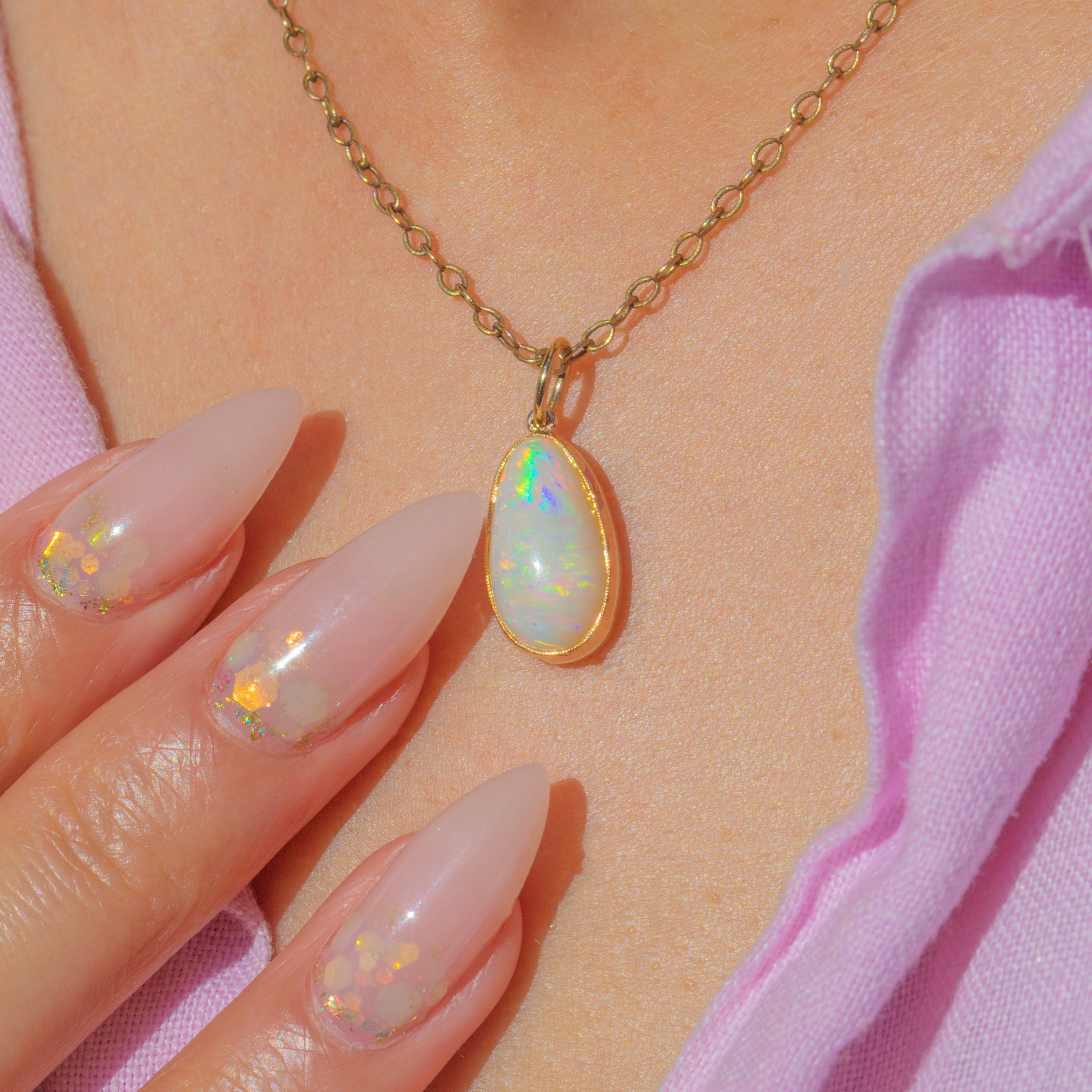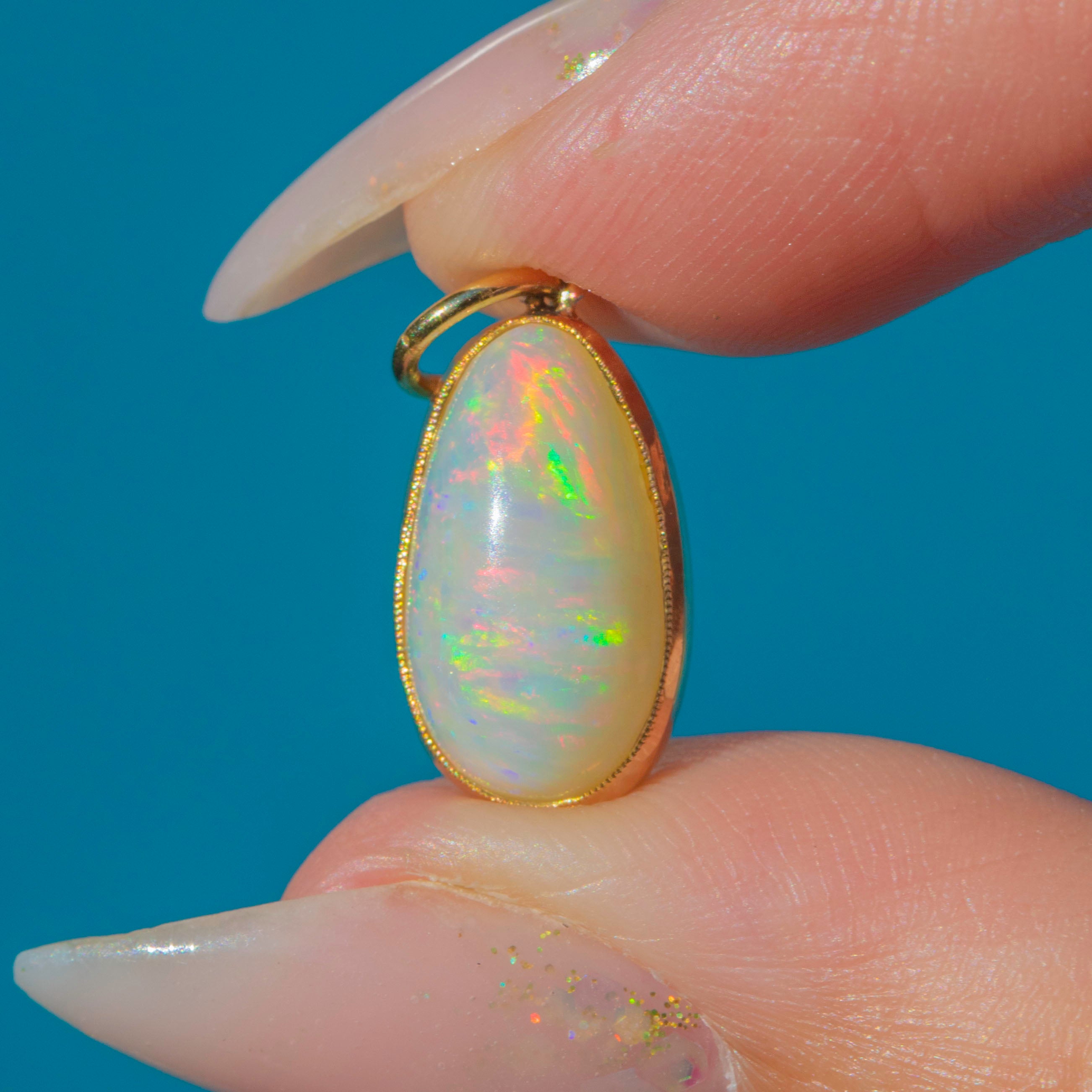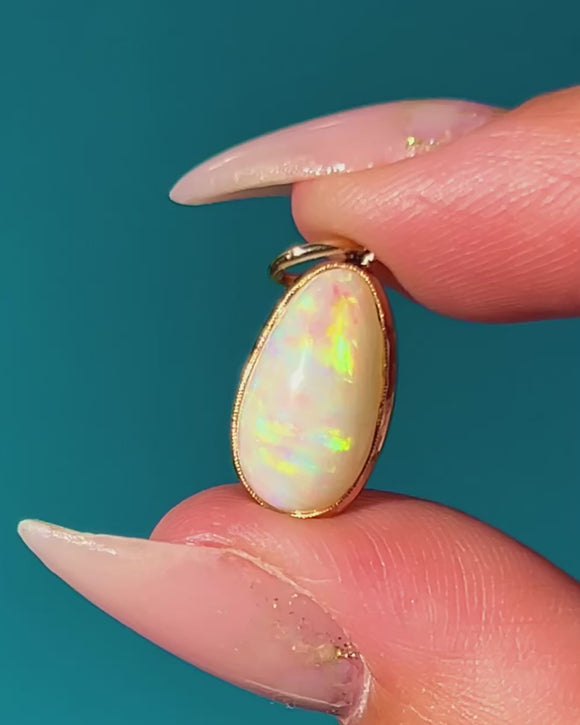 EXCELLENT: The Opal is free from chips and abrasions, with strong play-of-colour. The Gold setting is smooth with no signs of damage or repair. The jump ring is secure and ready to wear.
