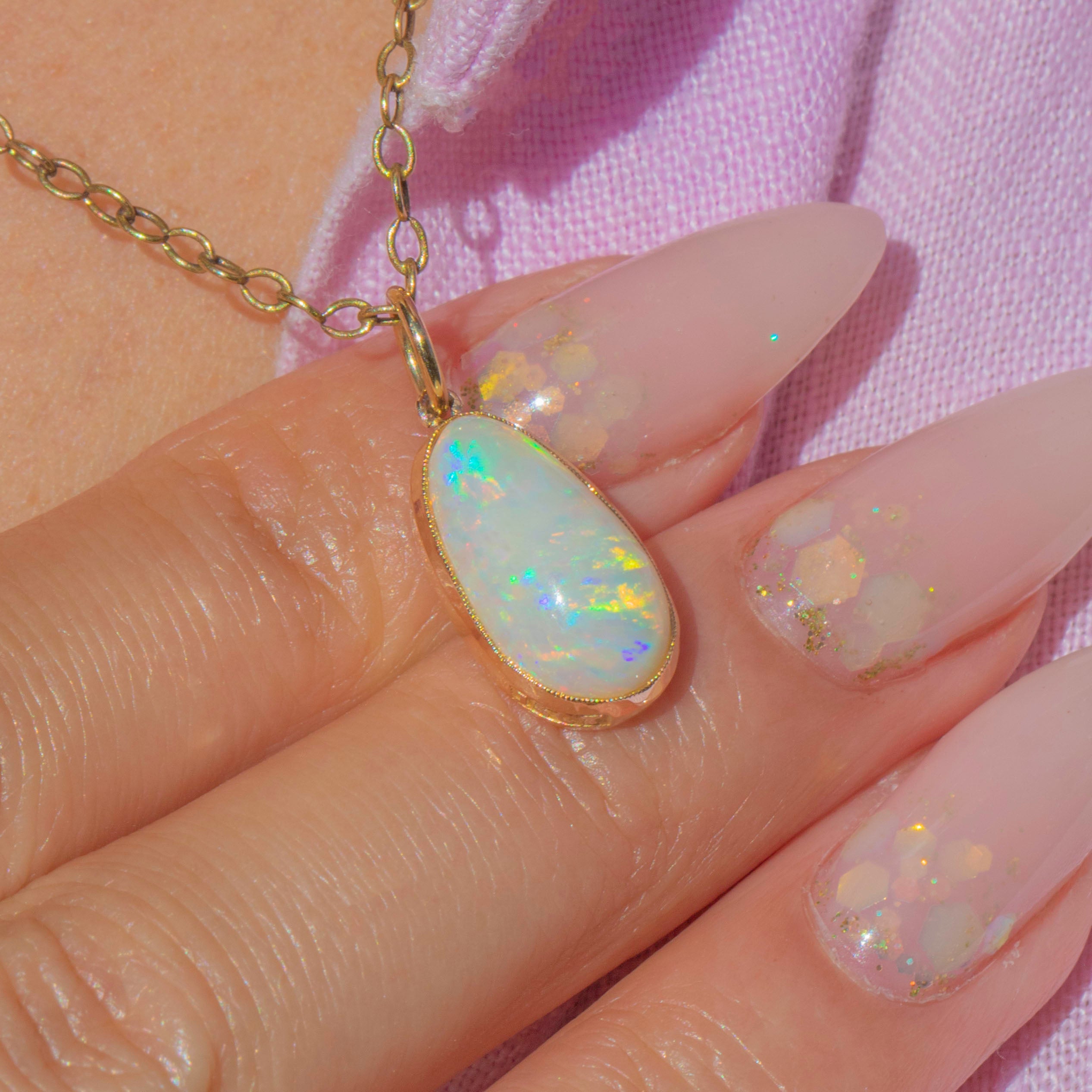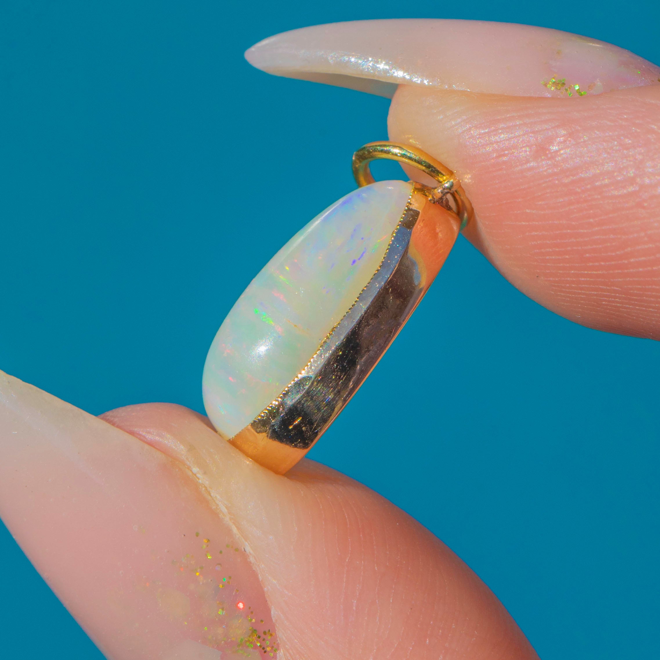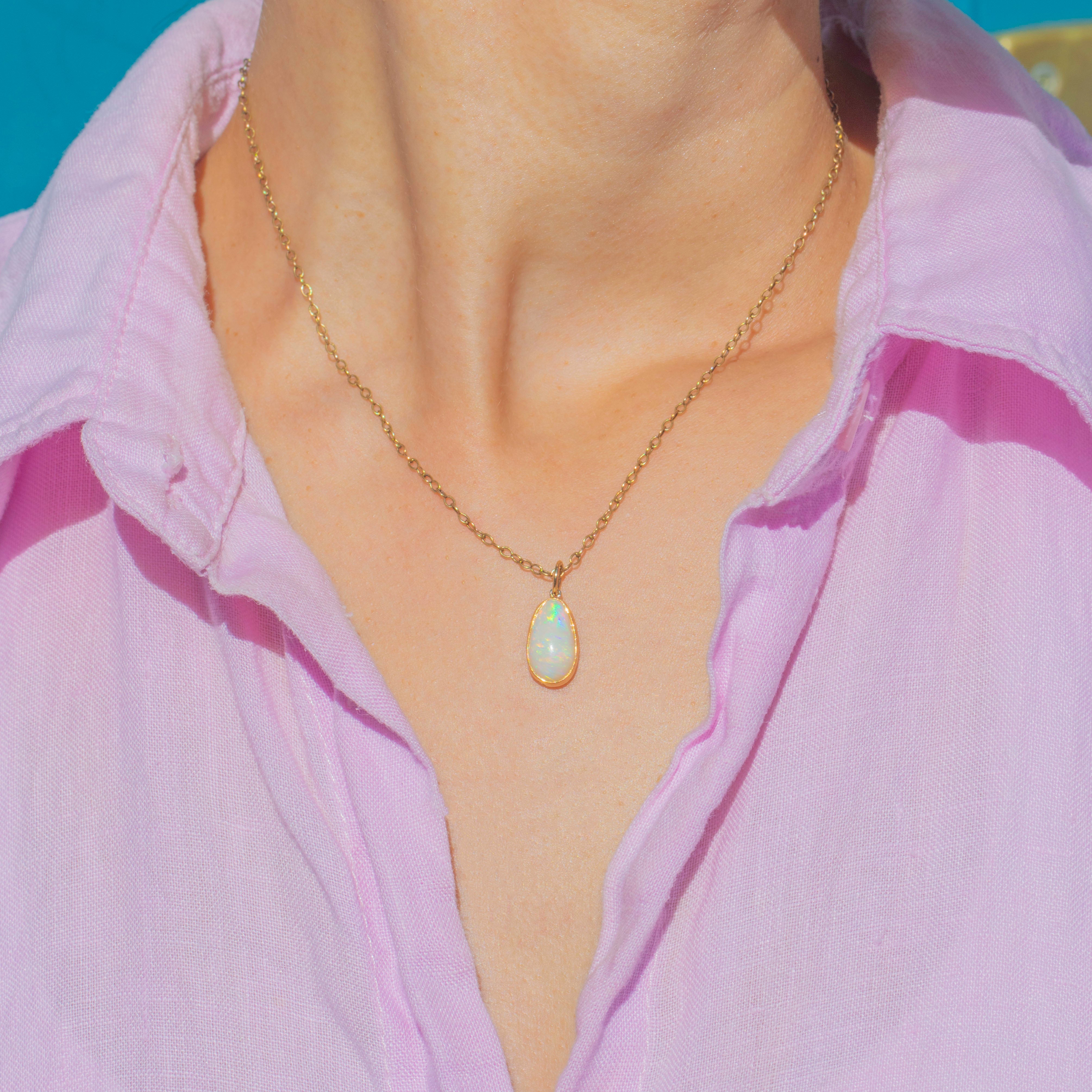 EXCELLENT: The Opal is free from chips and abrasions, with strong play-of-colour. The Gold setting is smooth with no signs of damage or repair. The jump ring is secure and ready to wear.