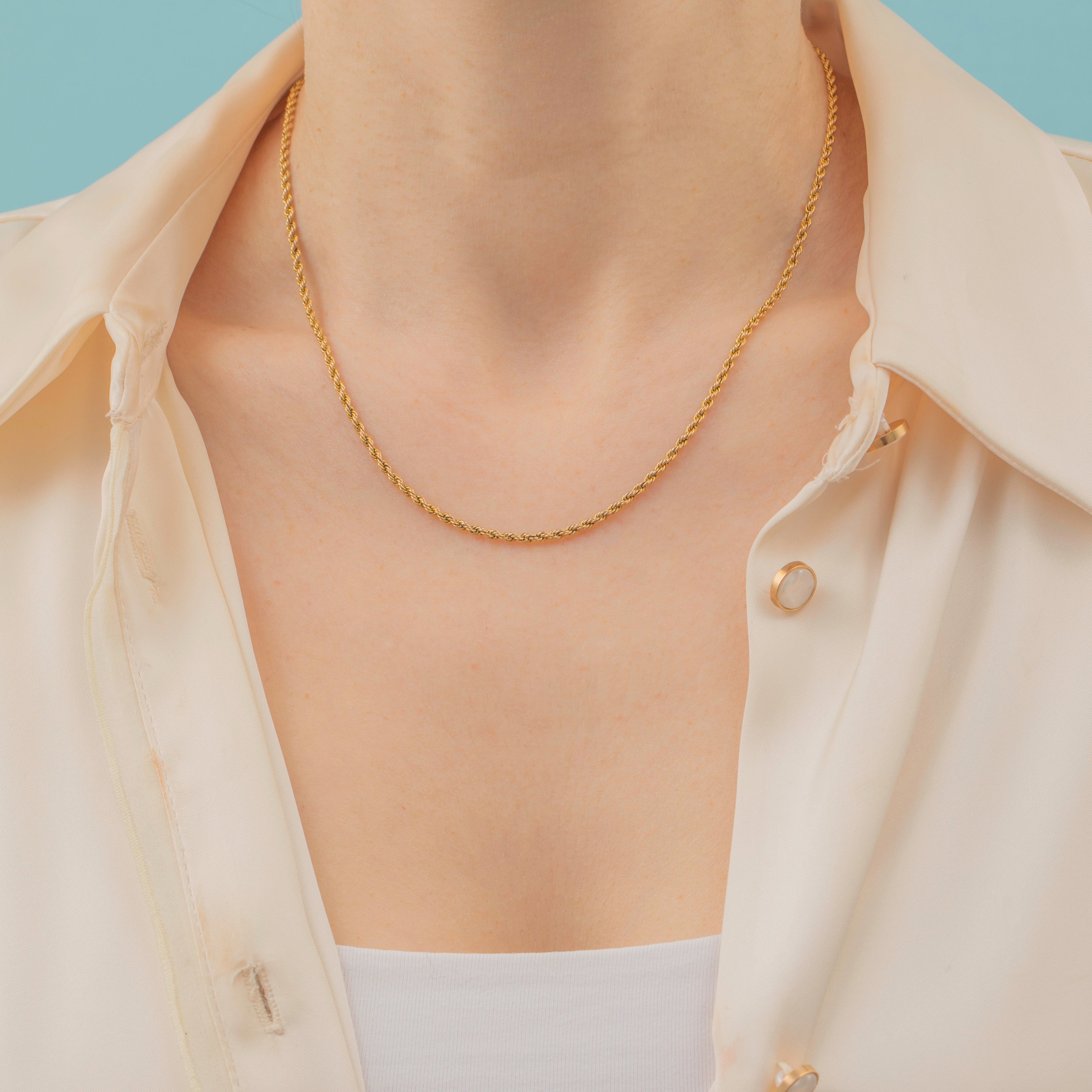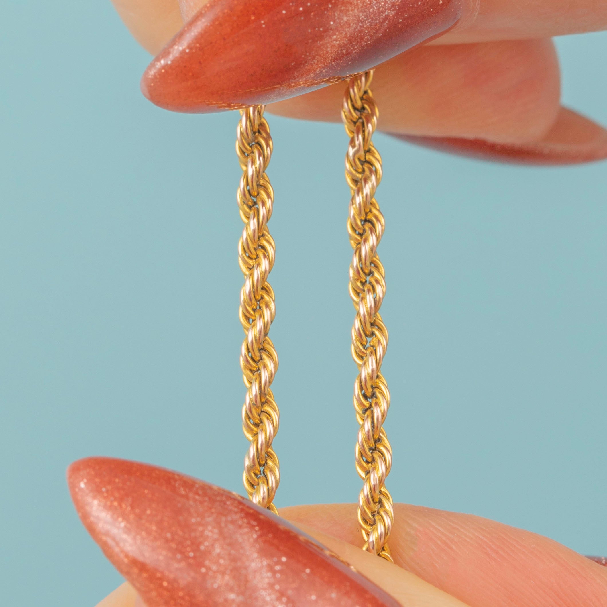 How pretty is this 16.5" antique 9ct Gold twisted rope chain?! Comprised of fine strands of buttery 9ct Gold, woven together to form her twisted design, and the 16.5" length sits snugly around your neck.