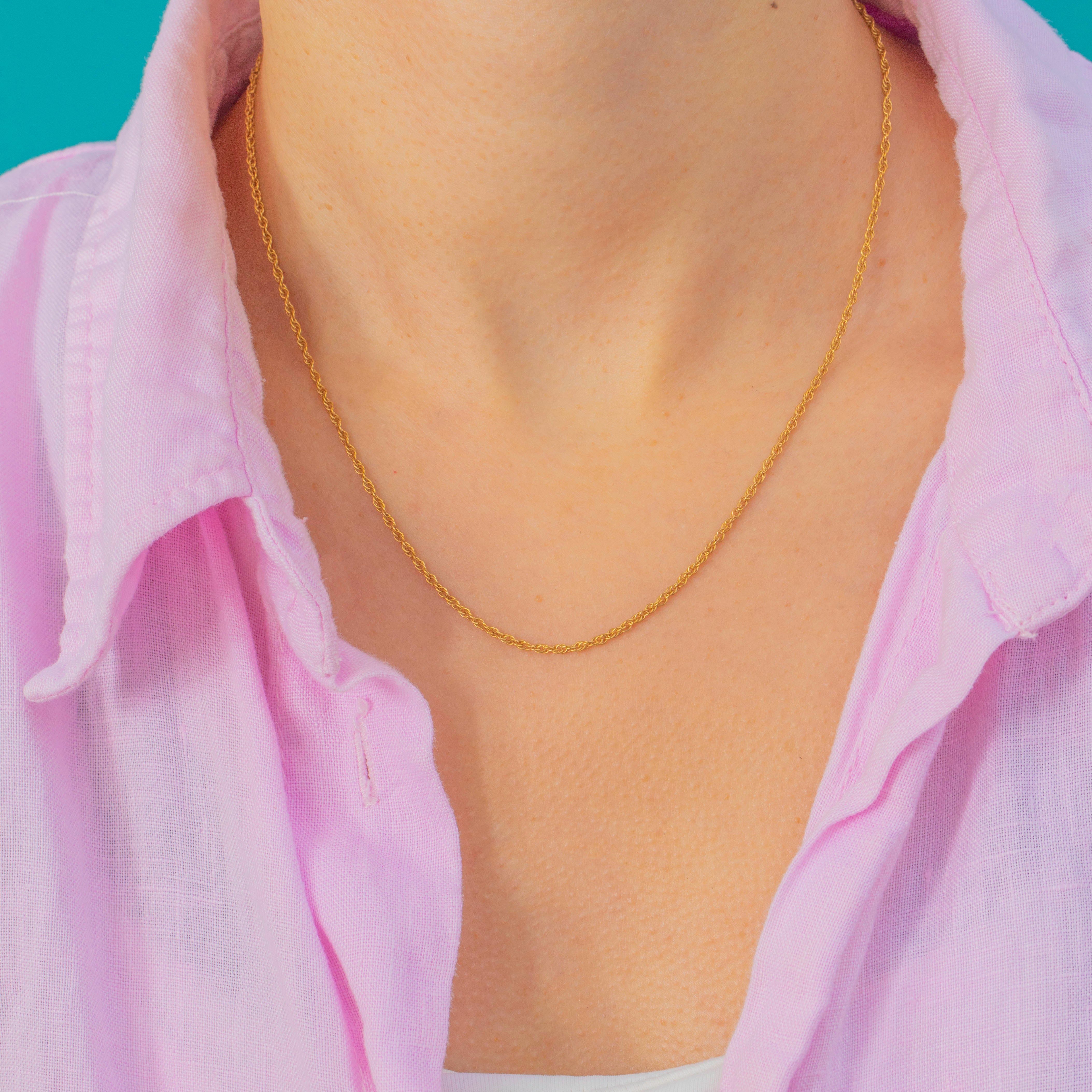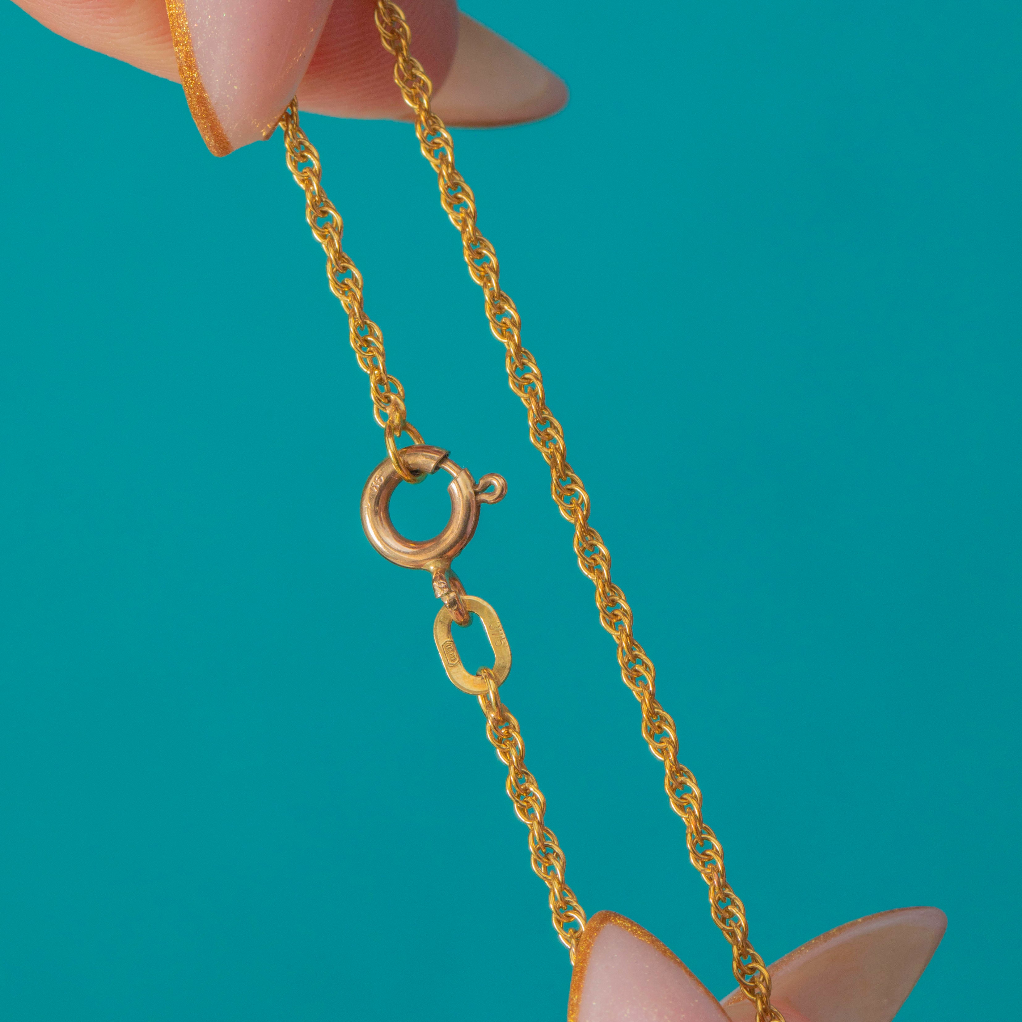 This vintage 9ct Gold rope chain is a classic and versatile staple. The twisted links catch the light beautifully, giving it a bright, fluid sparkle that layers effortlessly with charms, pendants or other chains.