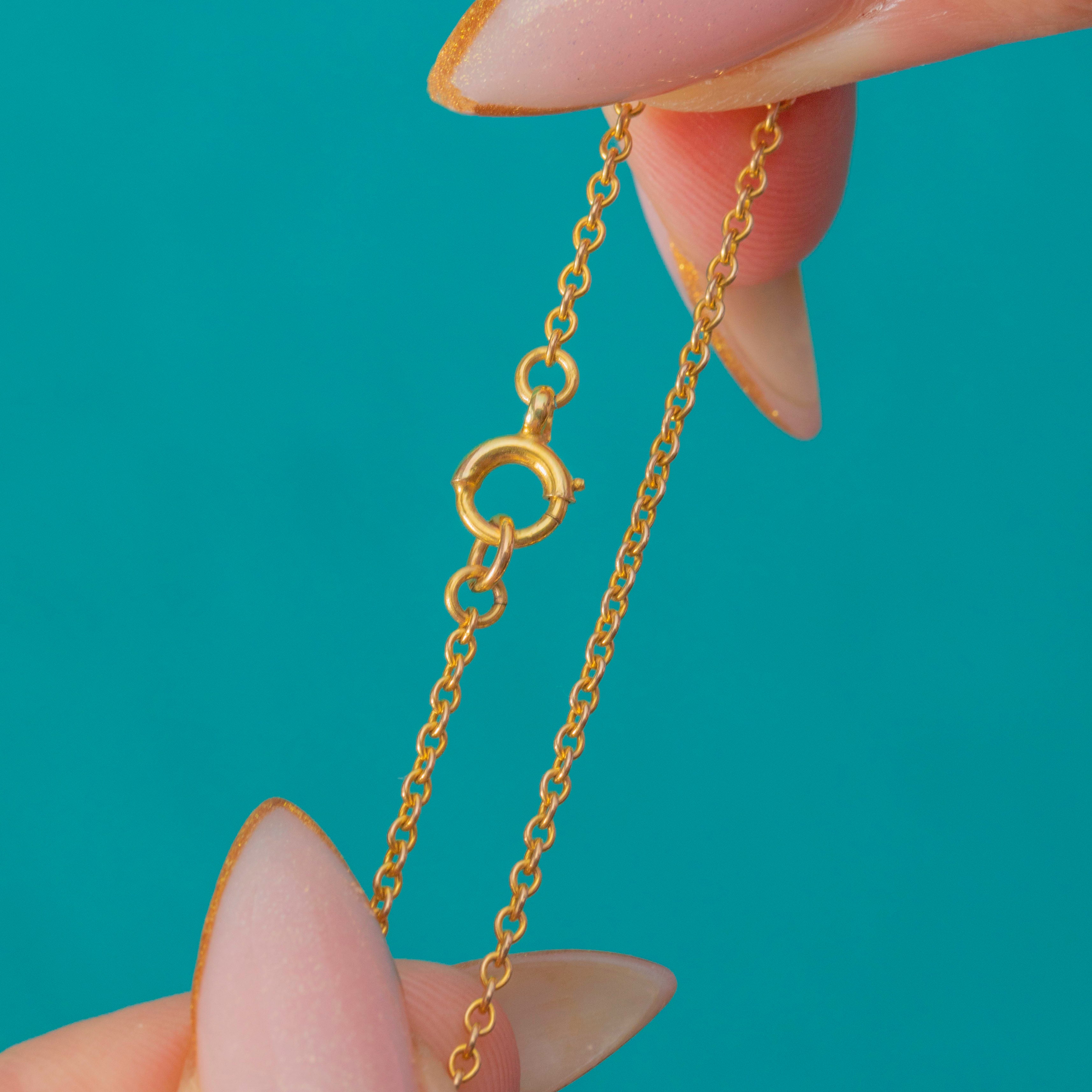 This dainty Victorian chain is an ideal staple piece for pendants. Crafted in rich 9ct Gold, it sits beautifully at 16”, offering a classic antique length that layers effortlessly with other favourites. The fine links catch the light softly, giving just the right amount of golden glow.
