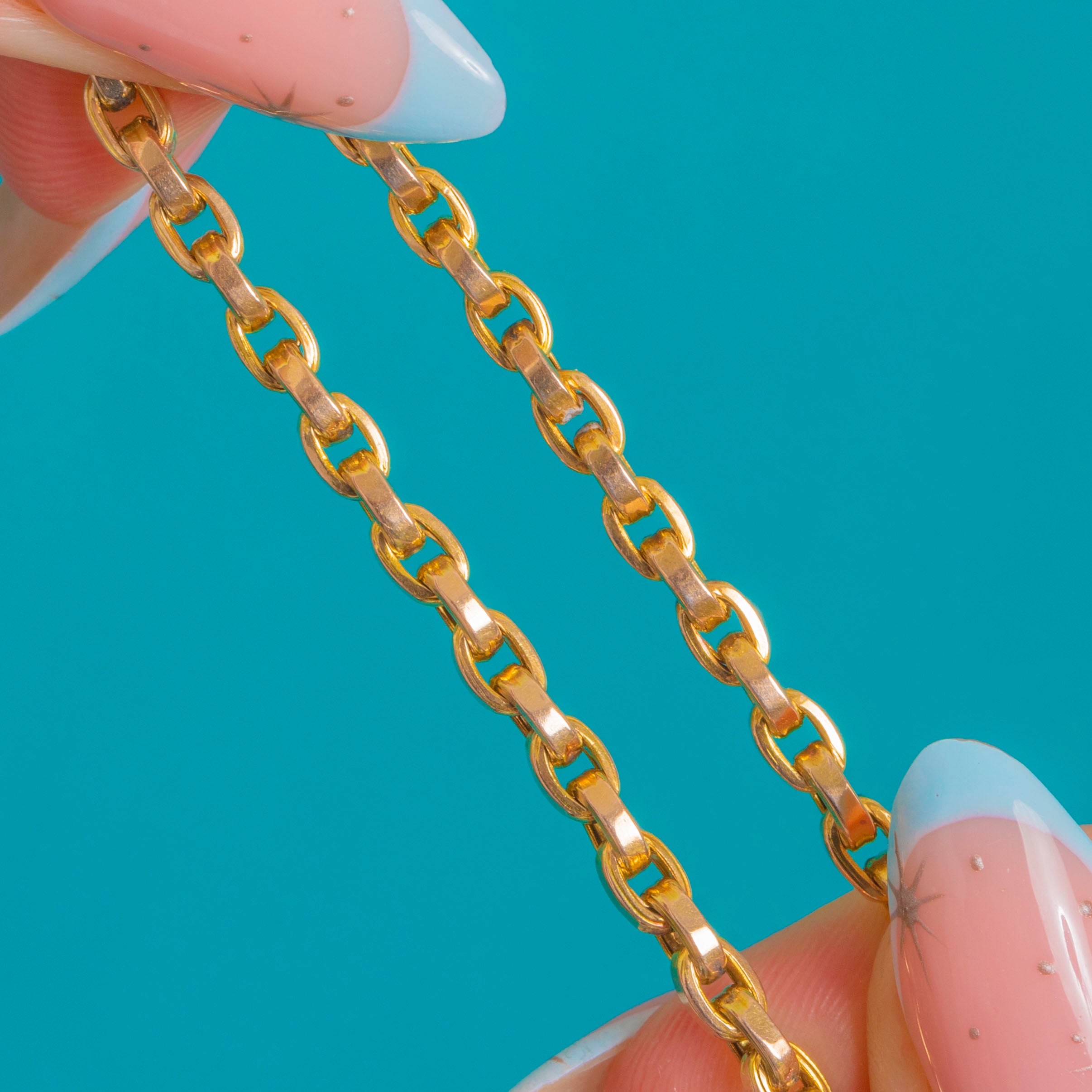 Understated and effortlessly chic, this Victorian 9ct Gold belcher chain is a timeless staple. Its uniform, rounded links catch the light with a soft glow, while the classic dog-clip fastening brings endless styling opportunities.