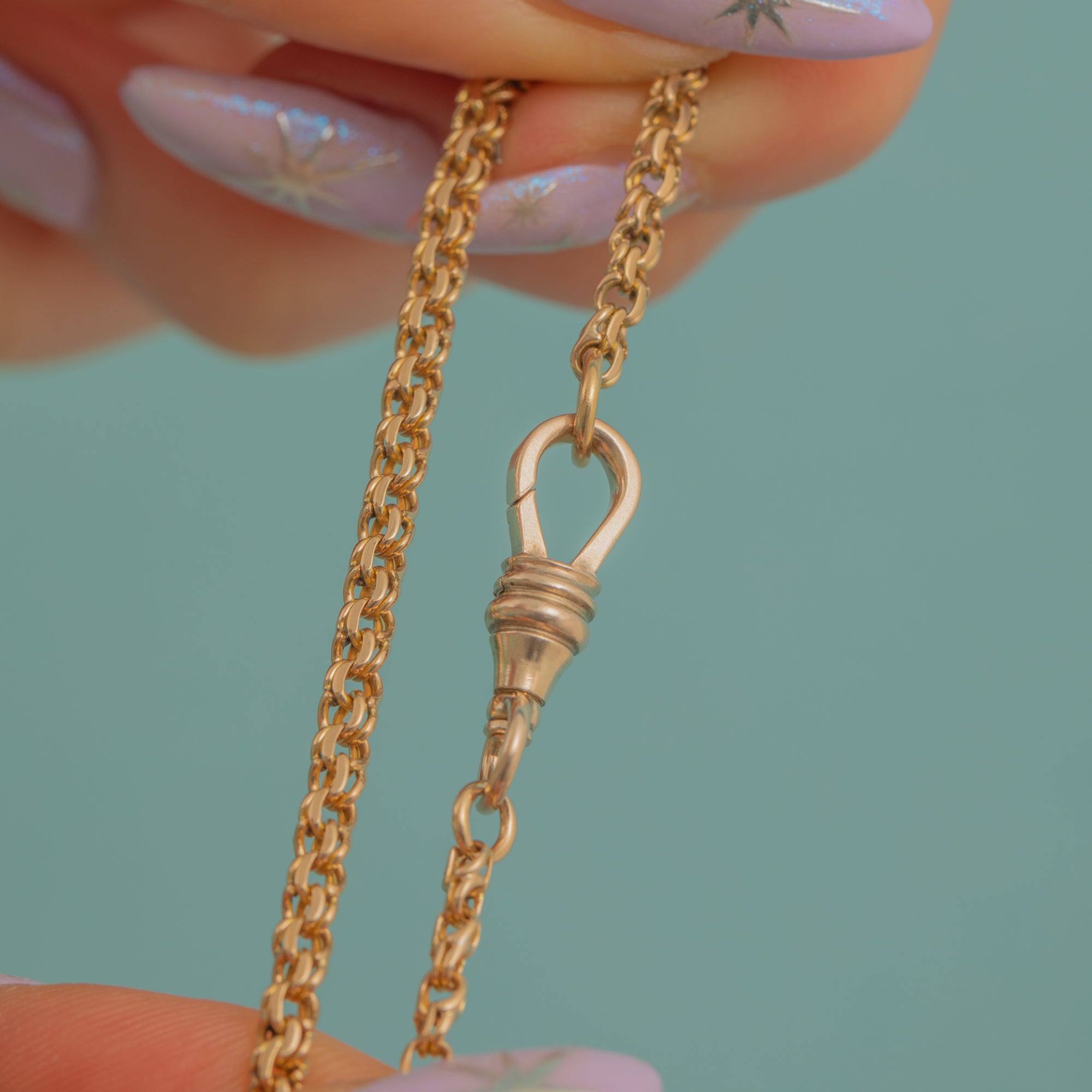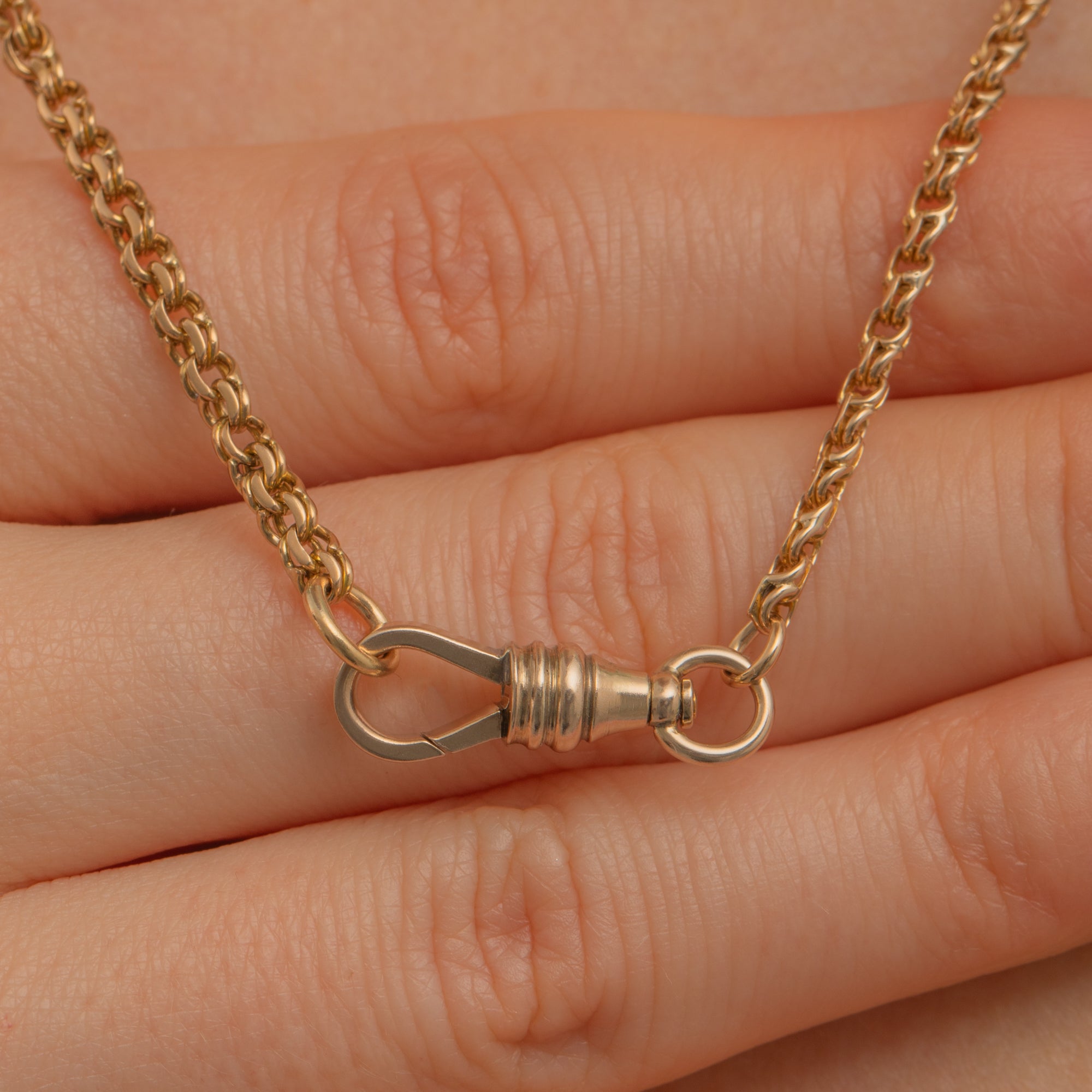 This Victorian Gold chain has a chunky expensive feel and can easily be worn as a standalone piece of stacked amongst your other favourite jewels. Complete with a large dog-clip to which you could add a charm or pendant for the ultimate antique look, this fancy Gold belcher chain is set to become a staple in your collection!