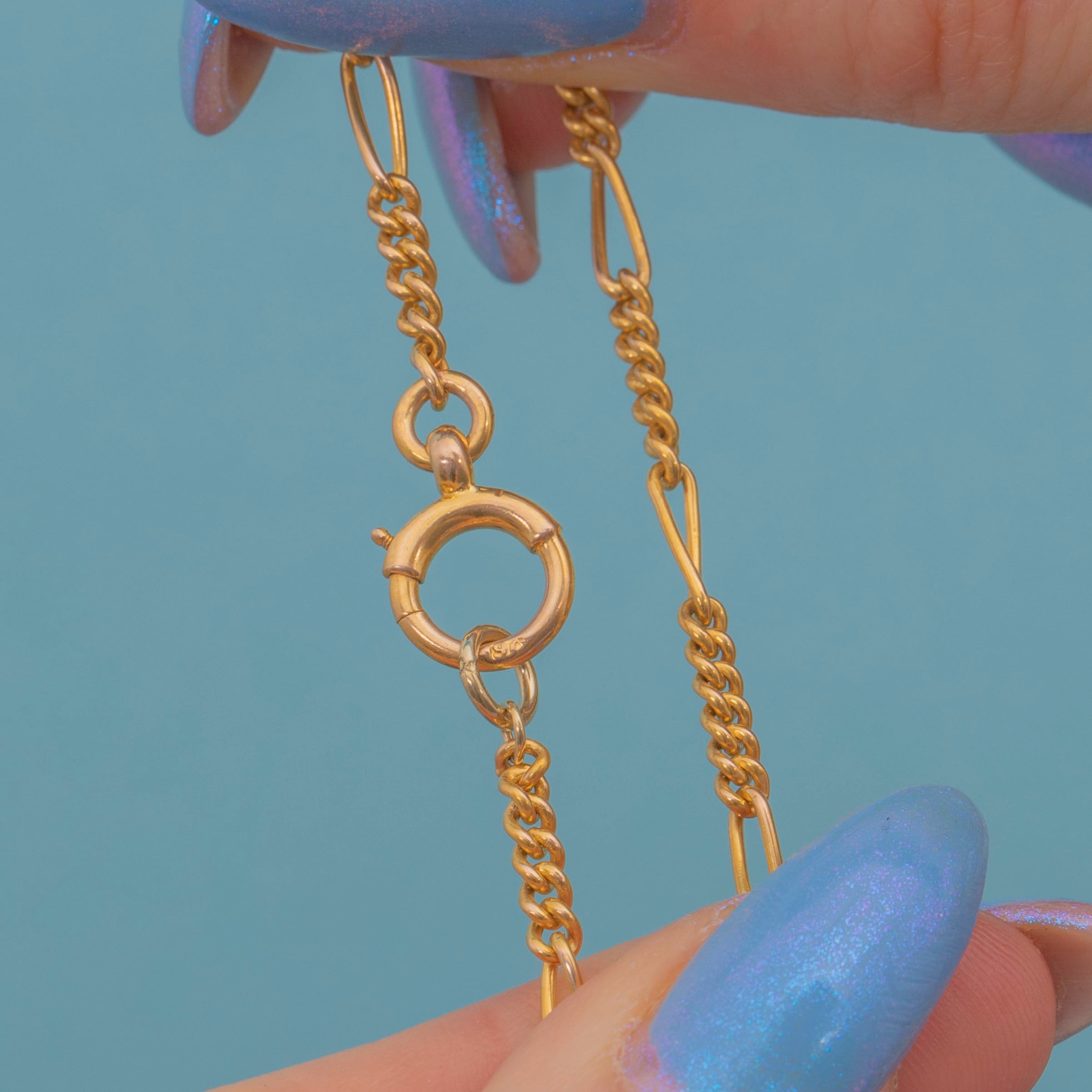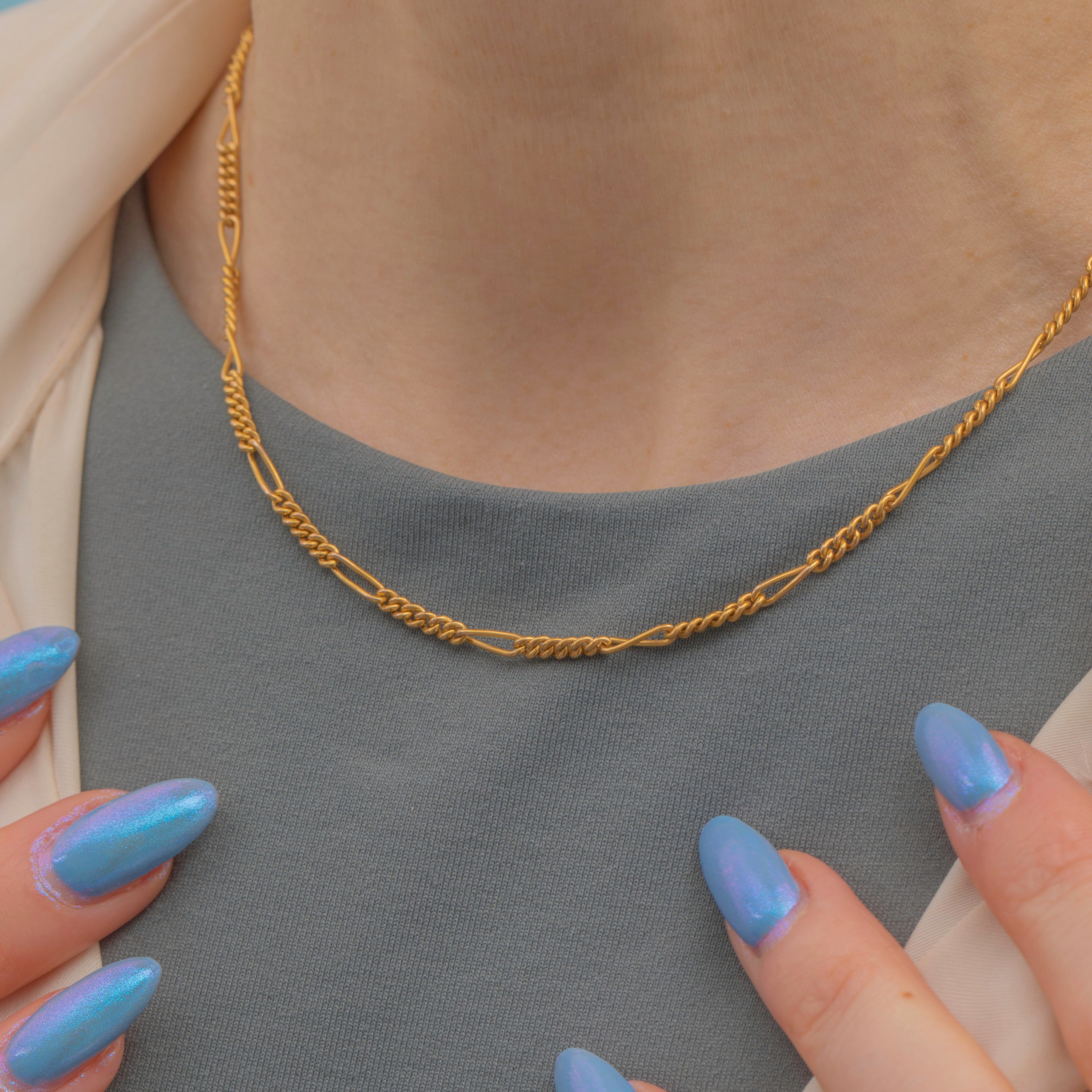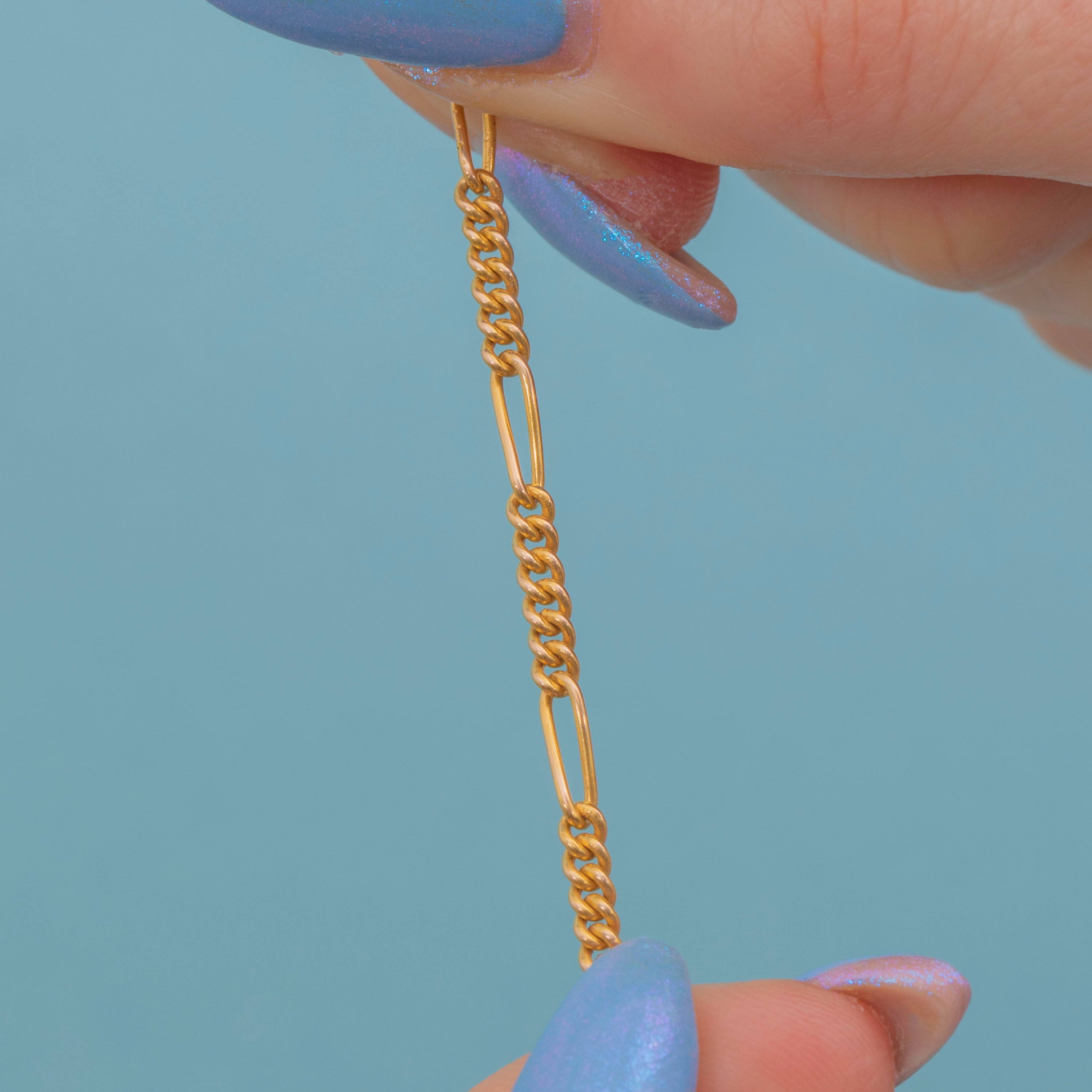 This fabulous antique 9ct Gold Figaro chain is the perfect piece to grow your collection with. Antique Gold chains are a wonderful way to curate your dream necklace stack, and just as easy to wear alone.
