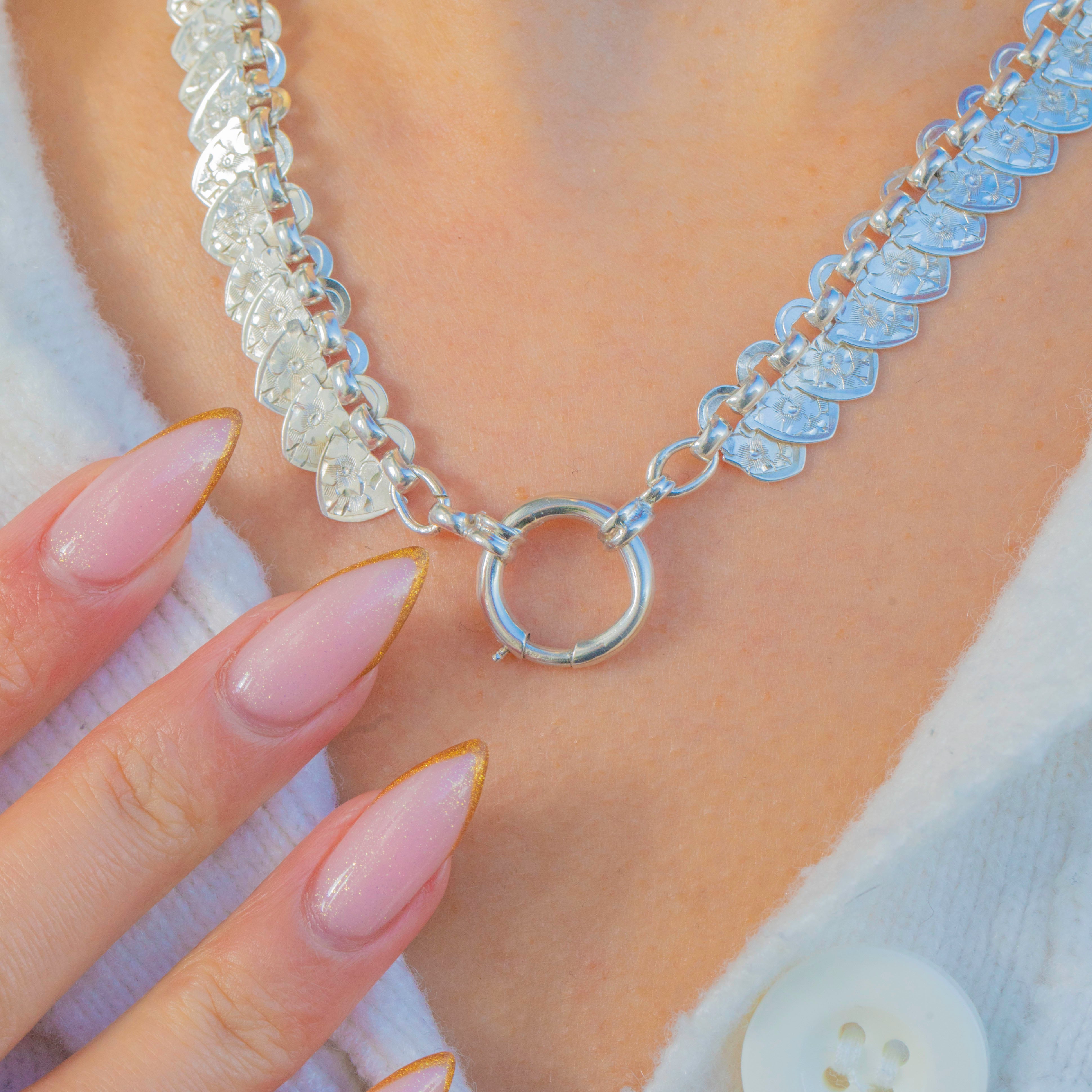 16" Victorian Silver "Hearts" Book-Chain Necklace, Large Bolt-Ring Clasp
