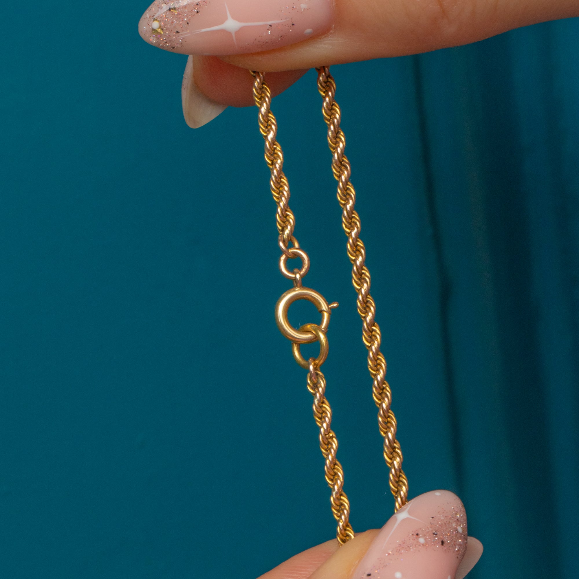 17.5" Antique 9ct Gold Green Enamel Rope Chain Necklace