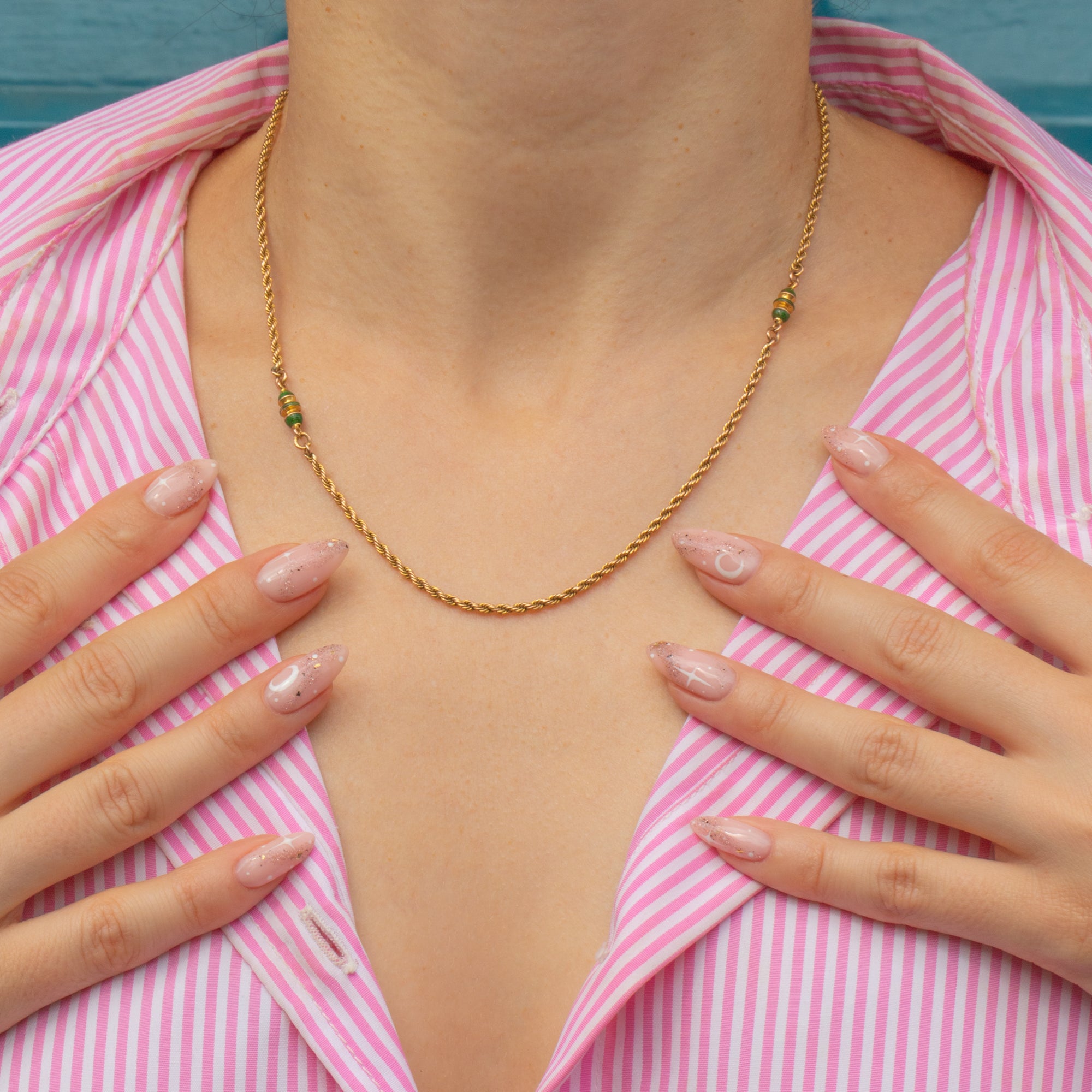 Accented with two Gold beads striped with a fern green Enamel, we love the way this Victorian Gold chain gleams under the sun! Such a dainty Victorian piece is perfect for everyday wear and would make a great addition to your necklace stack.