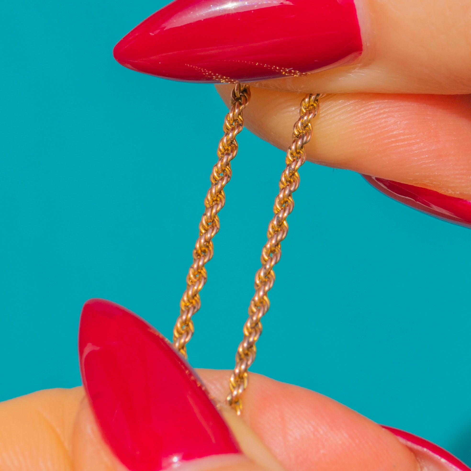Sleek, supple and eternally chic, this Vintage 9ct Gold rope chain is a wardrobe essential. Its tightly twisted links catch the light with a gentle shimmer, creating a refined, minimalist silhouette that layers beautifully or sings on its own.