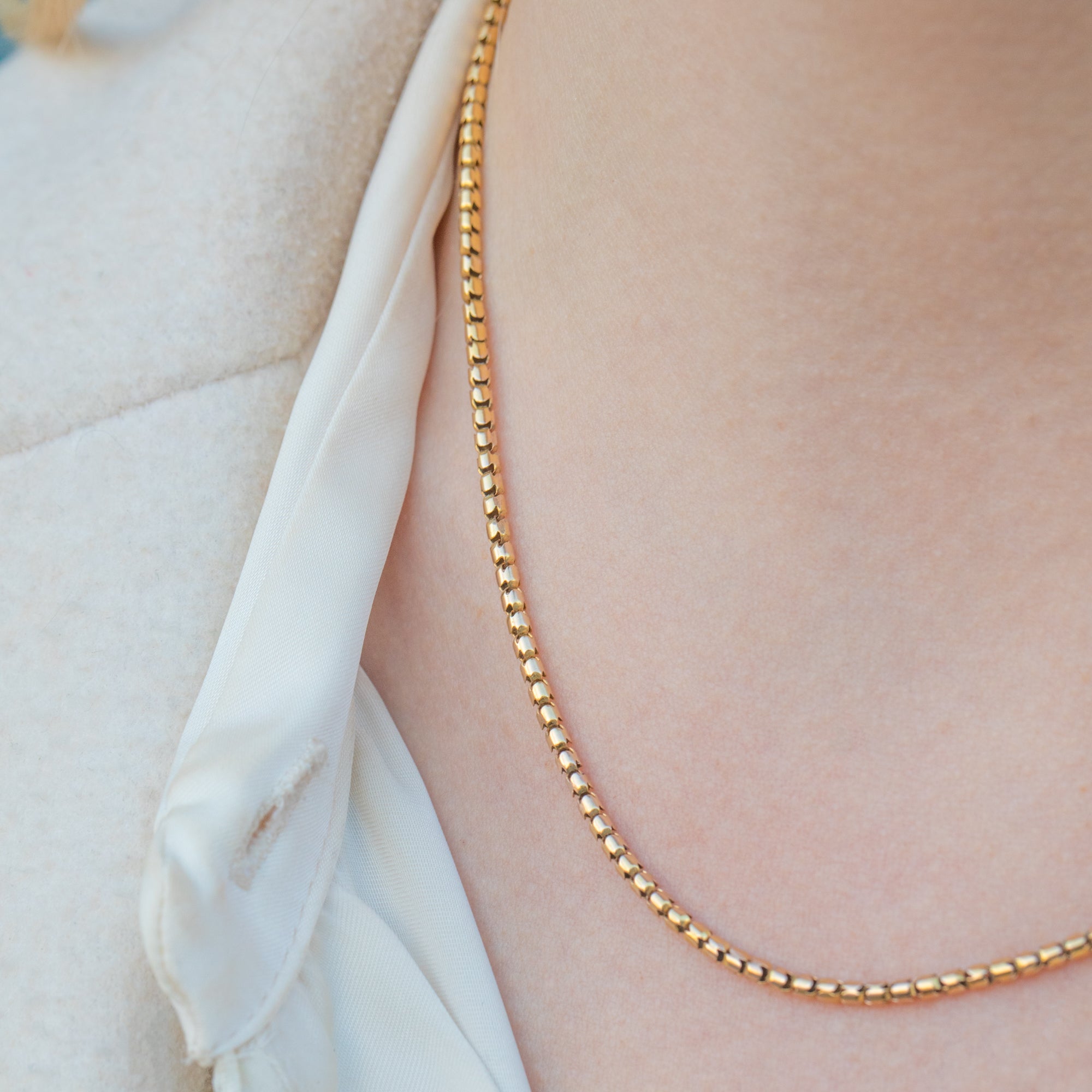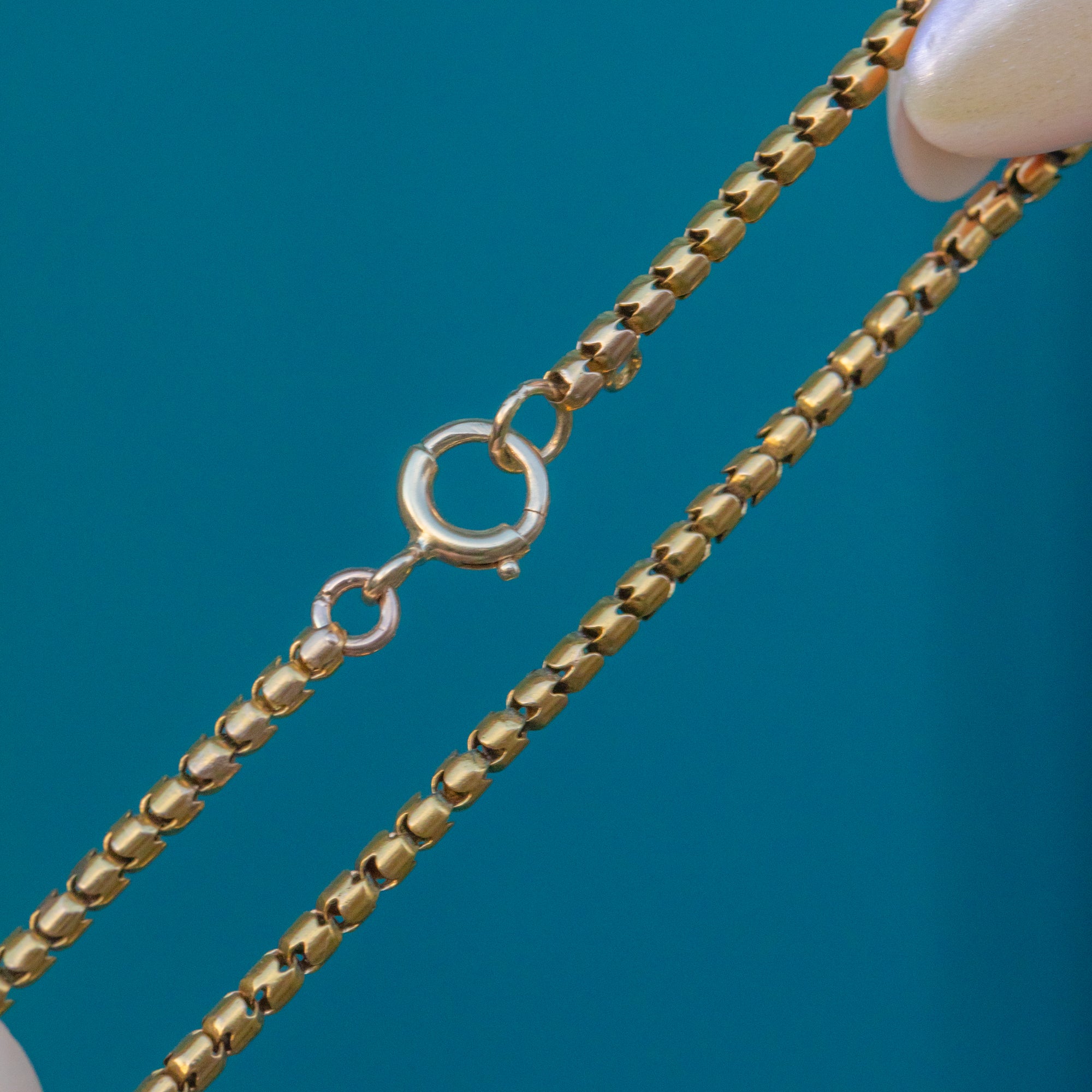 Wonderfully versatile, this antique snake chain is a glossy delight and can be worn as a standalone piece to add a satisfying flash of Gold to your attire, be stacked amongst your other favourite chains, or have a charm suspended from its authentic Victorian bolt ring for the ultimate antique look!