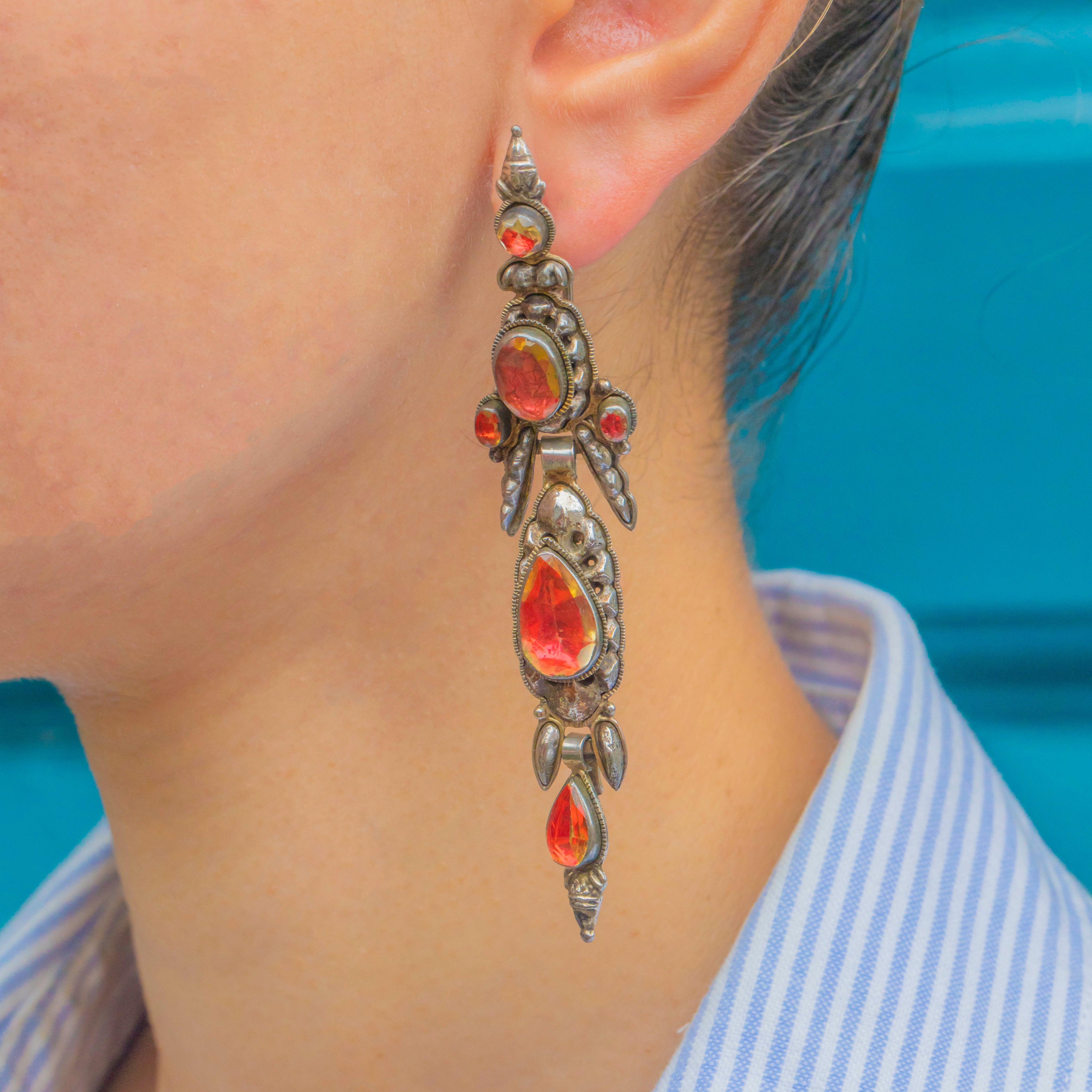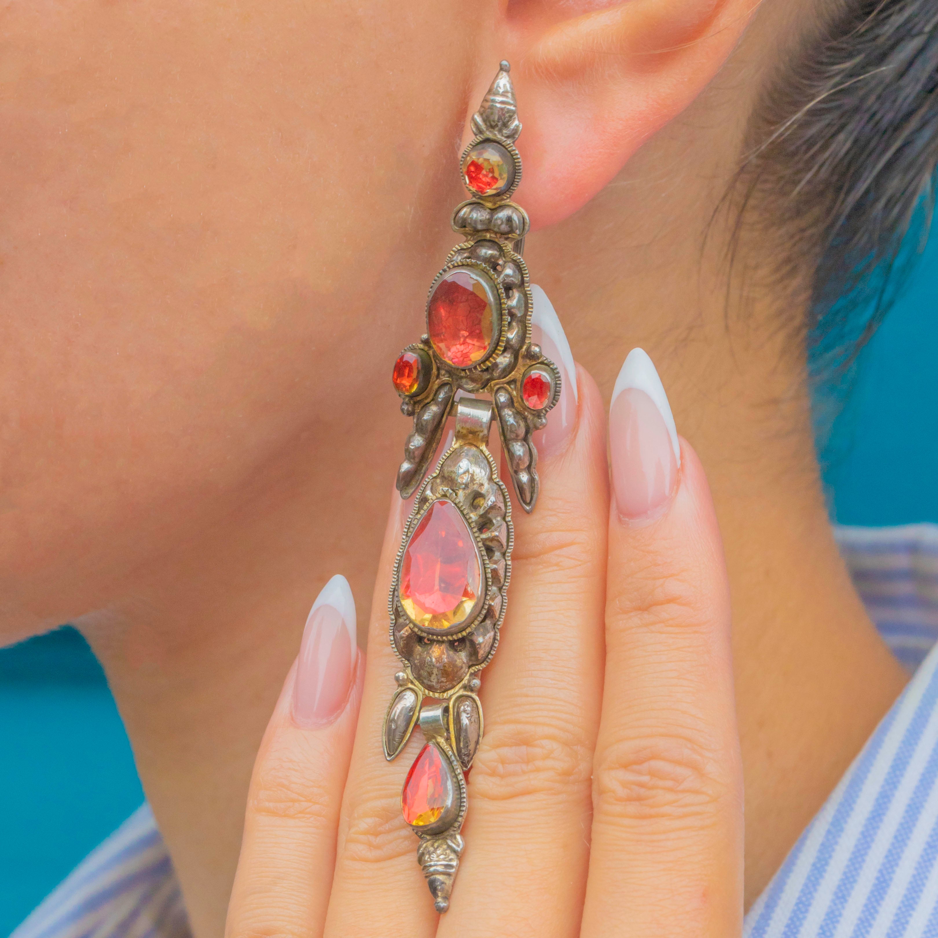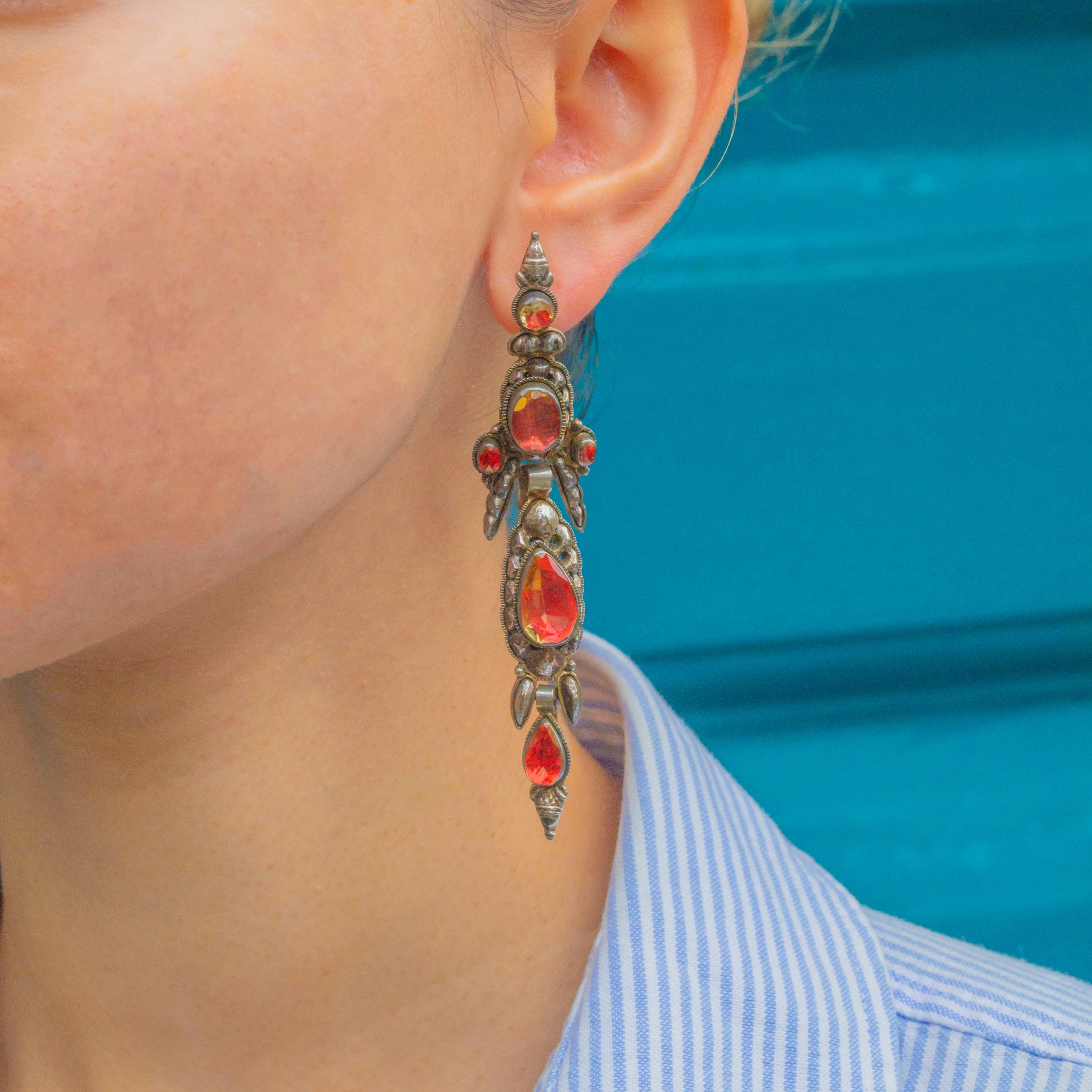 These magnificent early Iberian earrings from the 1700s are a true collector’s treasure. Crafted in Silver and set with vibrant foiled Citrines, they showcase the opulence and elegance of 18th-century jewellery. Their elongated silhouettes were designed to dazzle, catching the light beautifully with every movement.