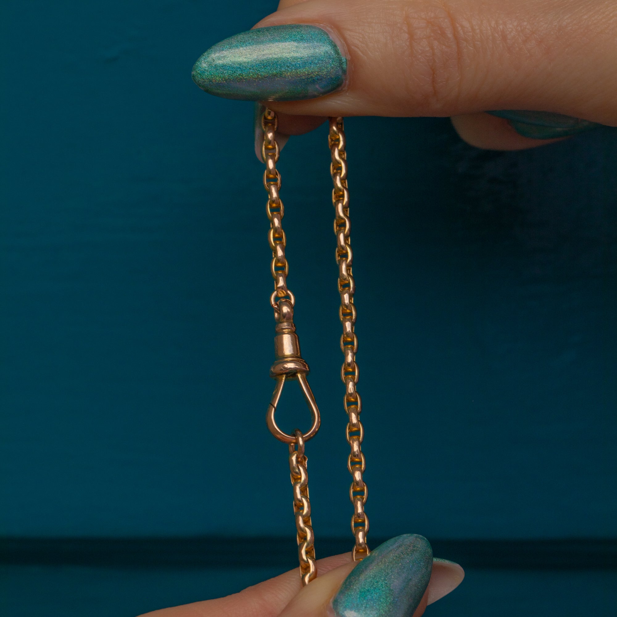 At 18.5" long, this antique chain will provide you with ample styling opportunities with the authentic Victorian dog clip doubling up as the perfect charm holder. Perfect for stacking with your other Gold goodies or adding a slice of luxury to your daily attire, this versatile piece is a staple addition to your antique jewellery collection!