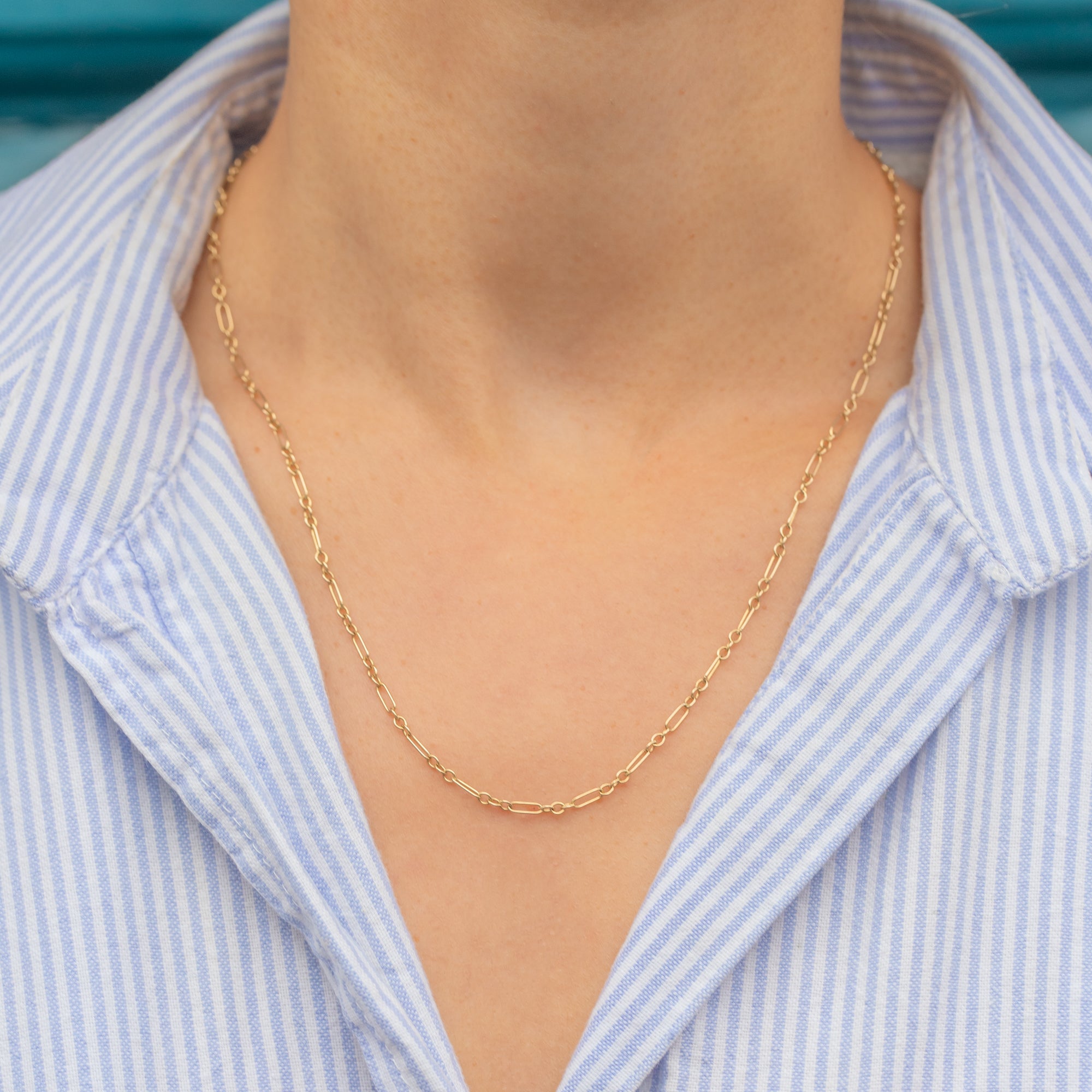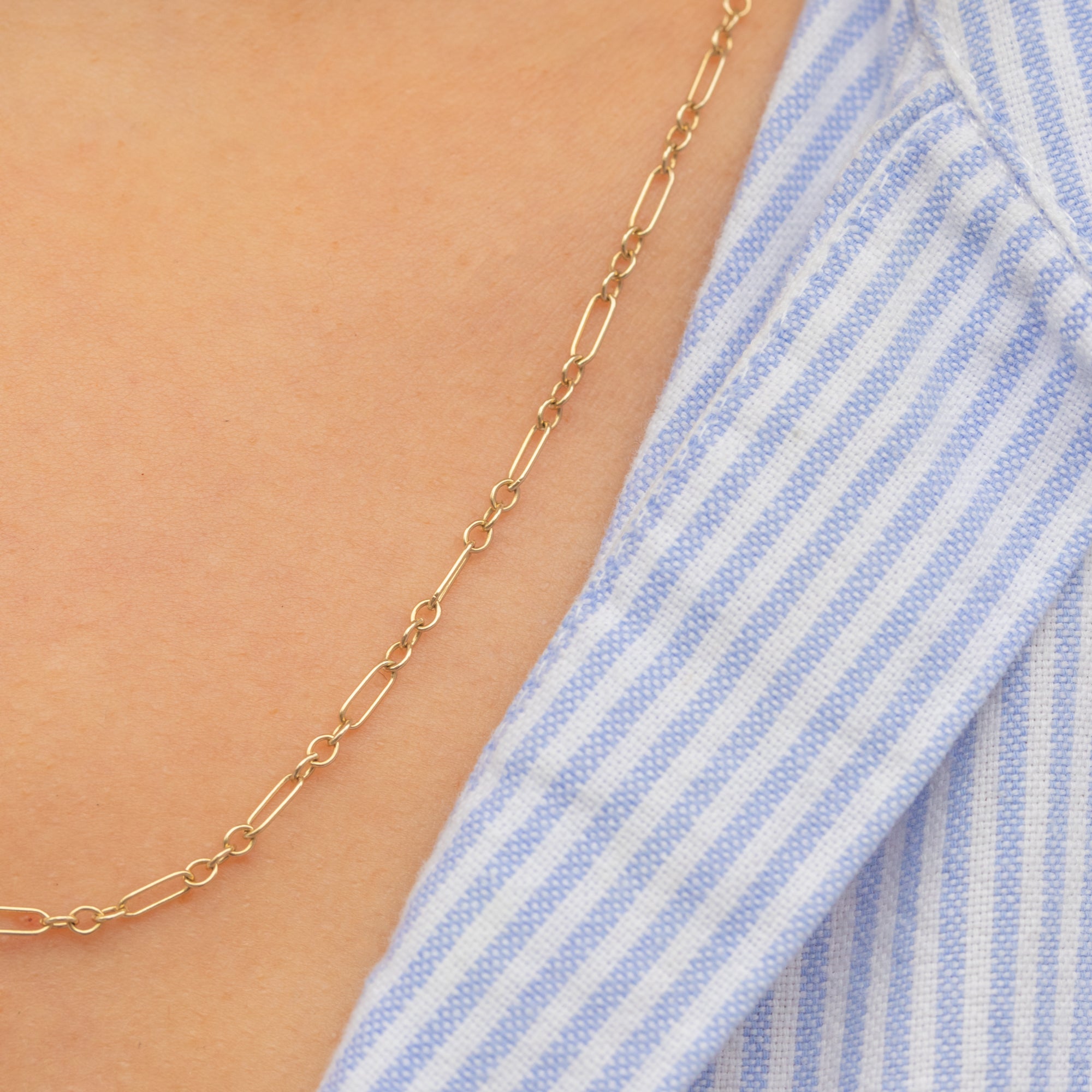 This chain has all the charm of 20th-century design; perfect to wear alone for a subtle accent of Gold, or layered with other necklaces for a modern stacked look.