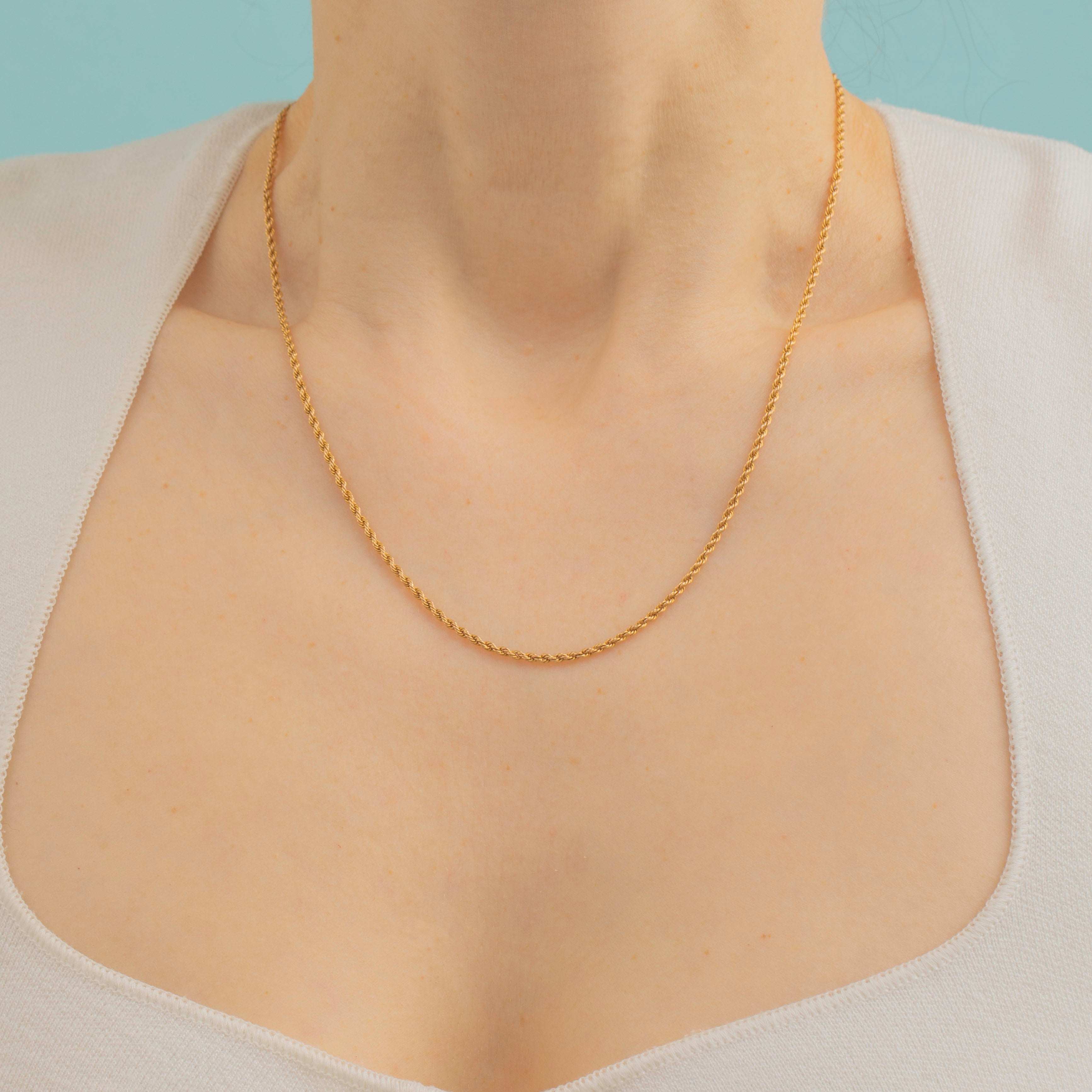 EXCELLENT. This 18" antique 15ct Gold twisted rope chain is in sublime condition throughout. Each twisted rope link is free from any damage and her 15ct Gold has retained that desirable buttery hue! Complete with a trusty barrel clasp, you can take her on and off with ease making this Victorian Gold chain perfect for everyday wear!