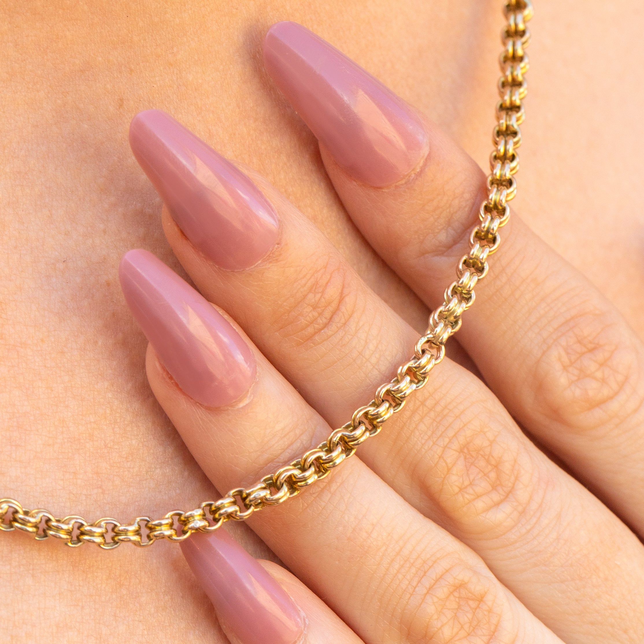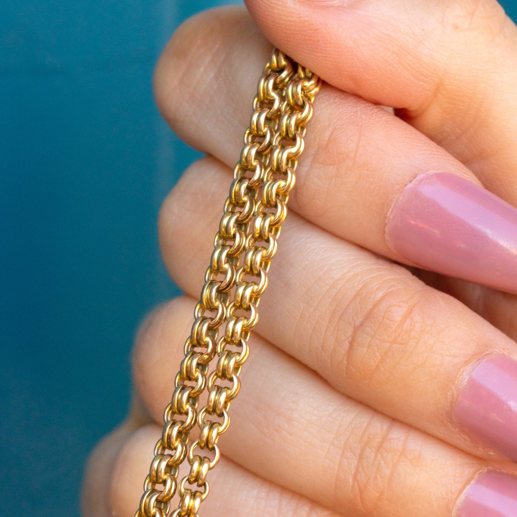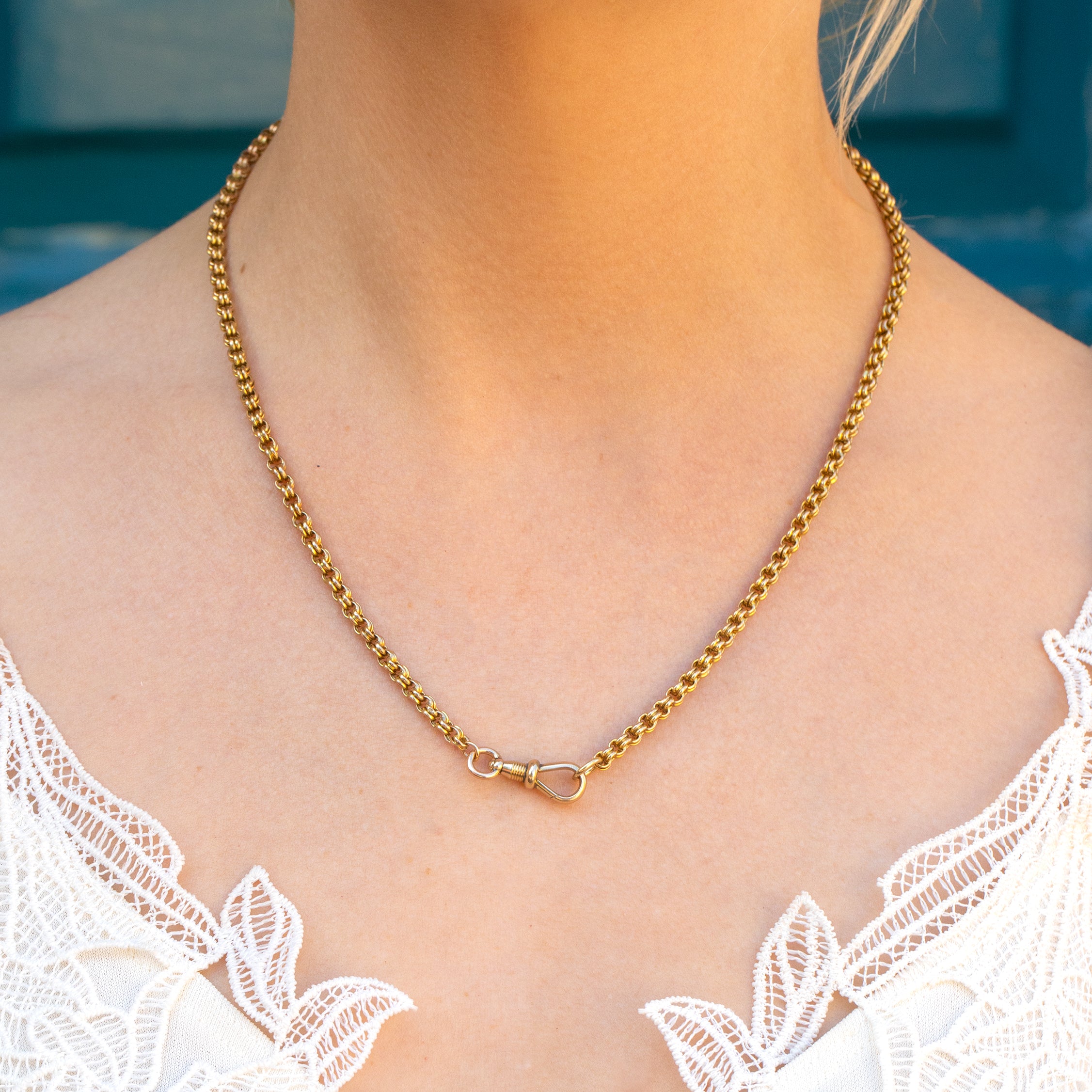 At 18" long, this Victorian Gold chain will drape elegantly across your collarbones, with her curvaceous chunky links bringing depth and texture to any ensemble. Crafted entirely from buttery 9ct Gold with an authentic antique dog-clip to finish, this antique belcher chain will get you all the right kind of attention!