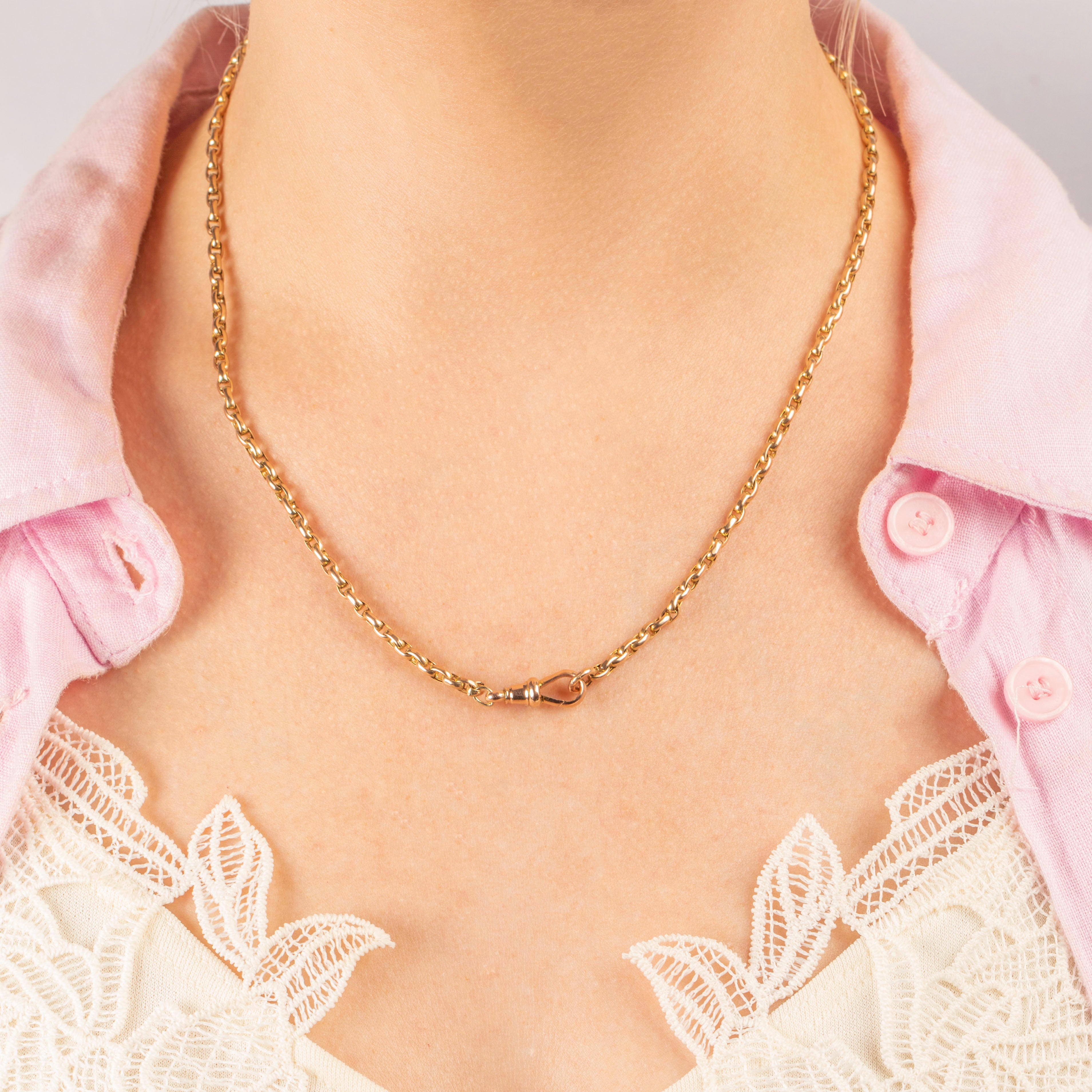 Victorian Gold chains are undeniably versatile, and she is no exception! Lending her a satisfyingly chunky but sophisticated feel, this Antique 9ct Yellow Gold Belcher chain features plump, saturated links and a highly sought after Dog-clip. Her unique Victorian charm is wonderful, and her versatility makes her the ideal chain for your everyday wear.