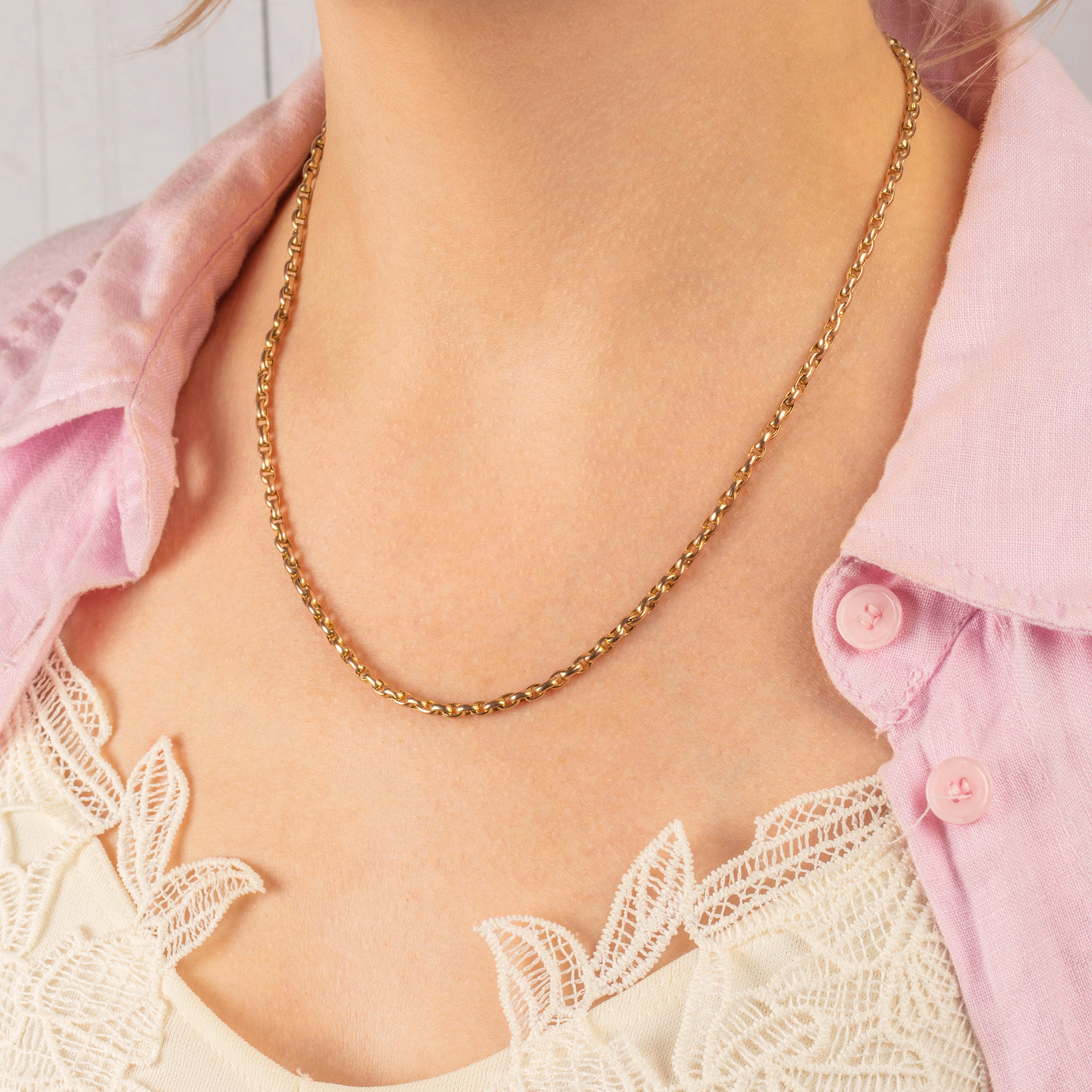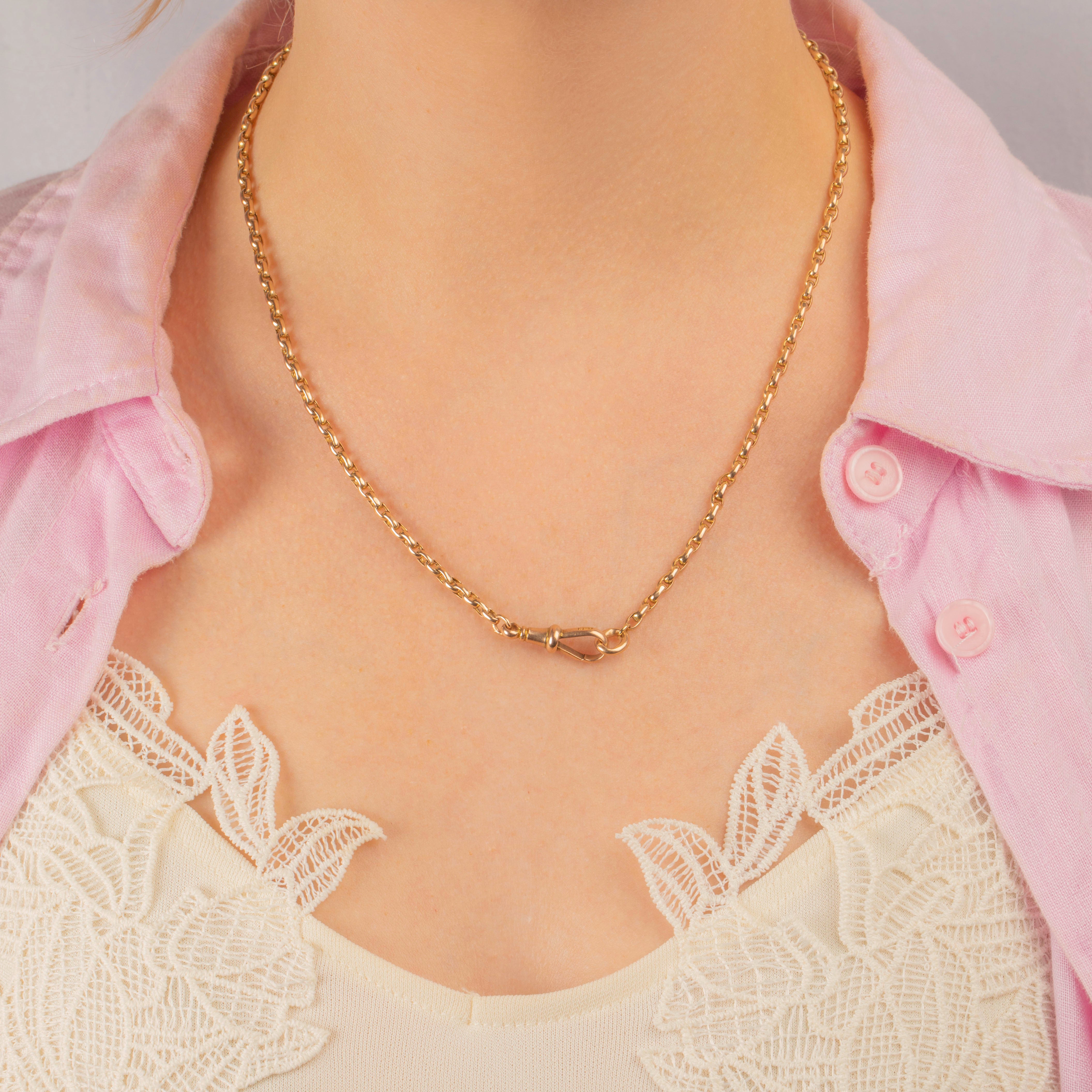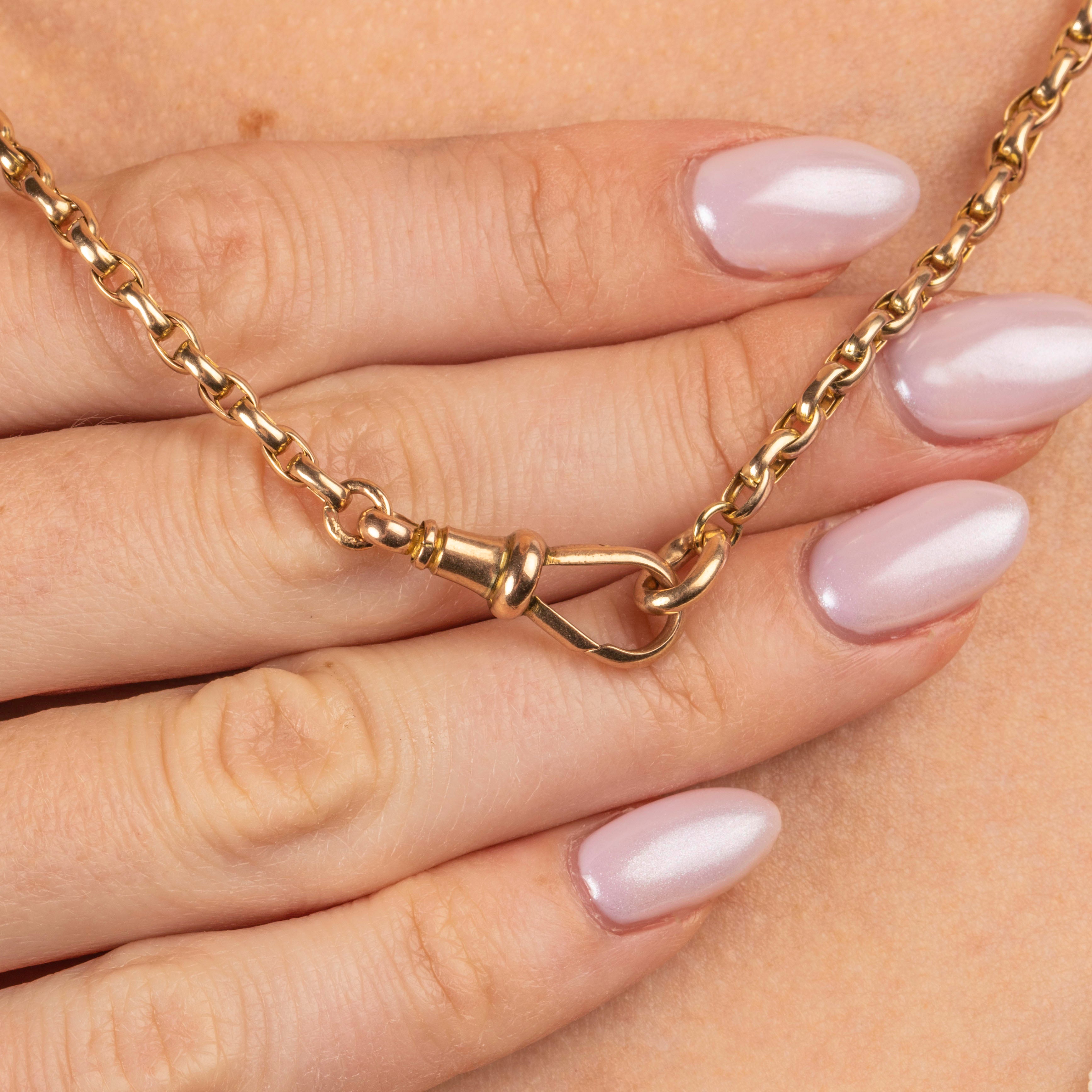 Guaranteed to bring antique luxury to any outfit, this Victorian belcher chain comes complete with its original dog clip which doubles up as the perfect charm holder. With ample styling opportunities, this solid Gold chain is a timeless piece of Victorian jewellery!