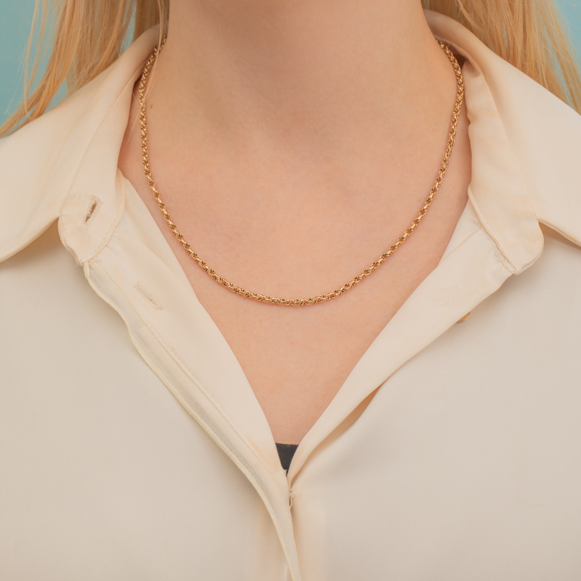At 18" long, she is a generous length and can be stacked with other antique Gold chains or worn alone to add a touch of luxury to any outfit!