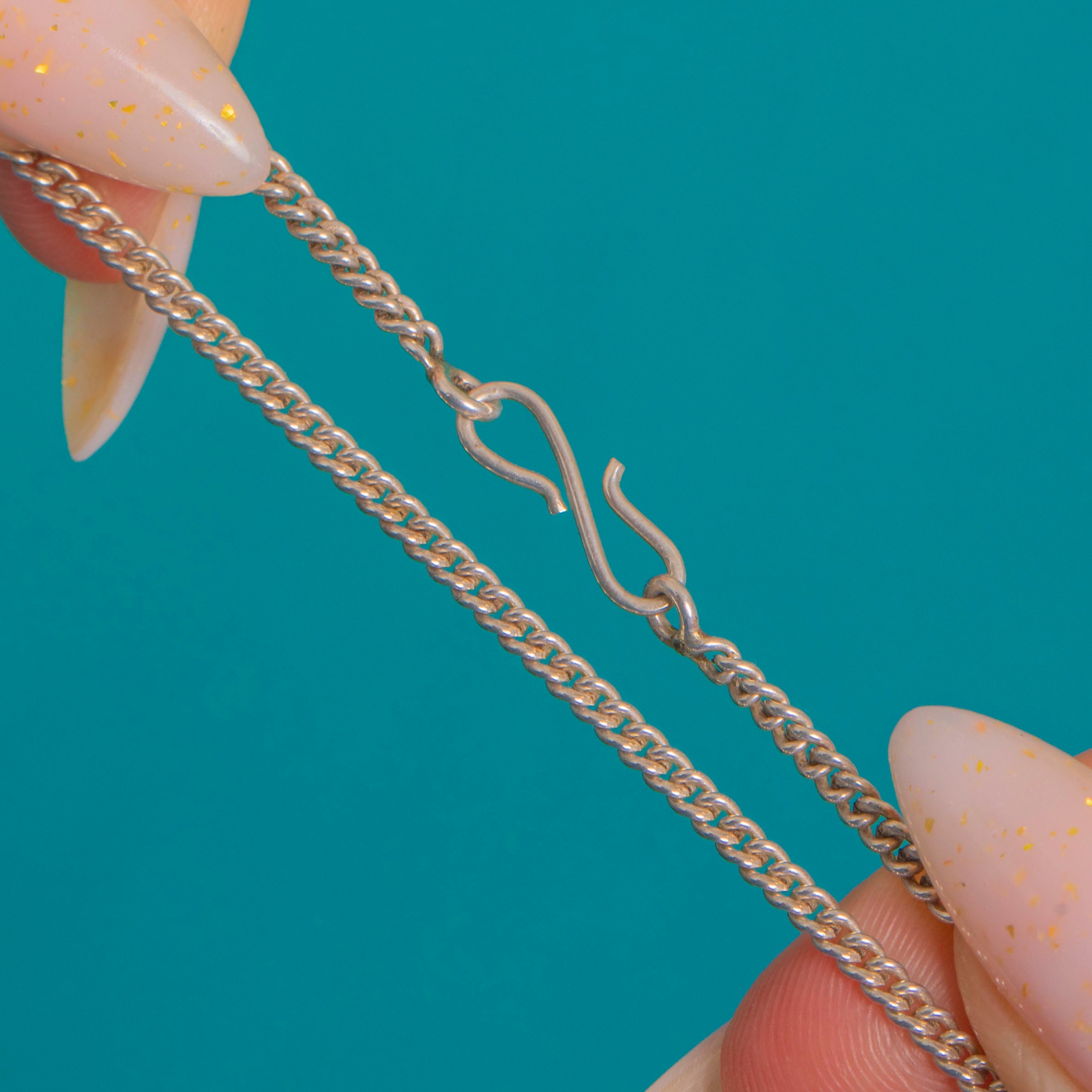 EXCELLENT: The Moonstones are bright with natural internal inclusions and only minor surface wear visible under magnification; no chips or cracks observed. The Silver shows light surface scratches, consistent with age, with all links and settings secure. The S-hook clasp is in good working order.