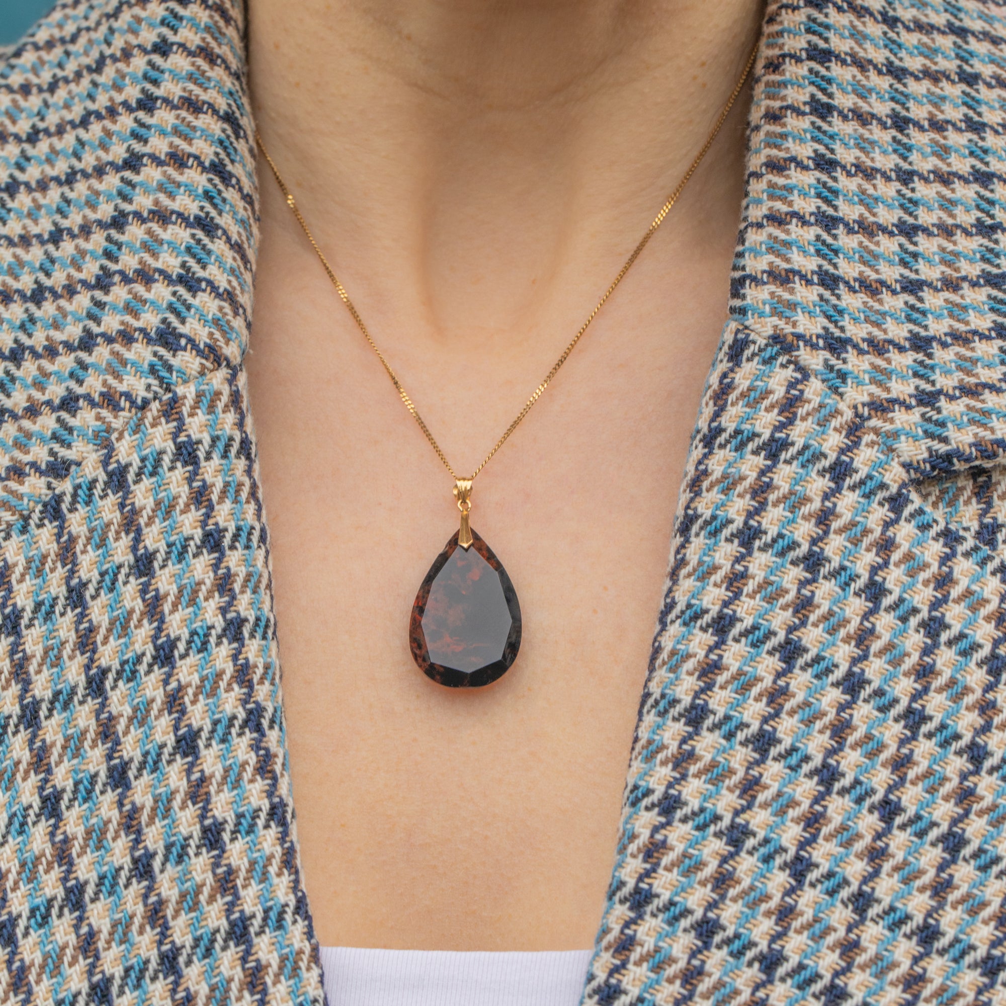 Add a touch of vintage allure to your décolletage with this striking 18ct Gold Agate pear drop pendant!