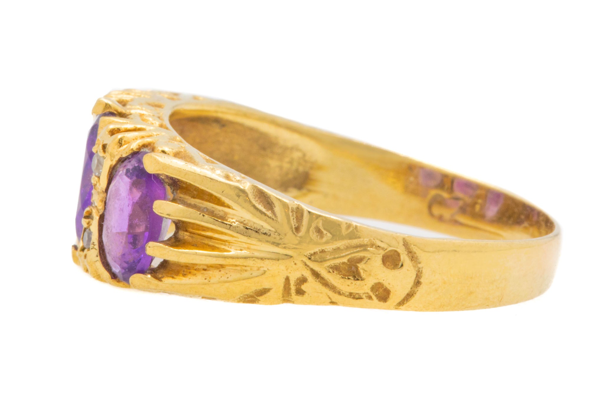 MATERIALS: 9ct Gold, Amethyst, Rose Cut Diamonds.