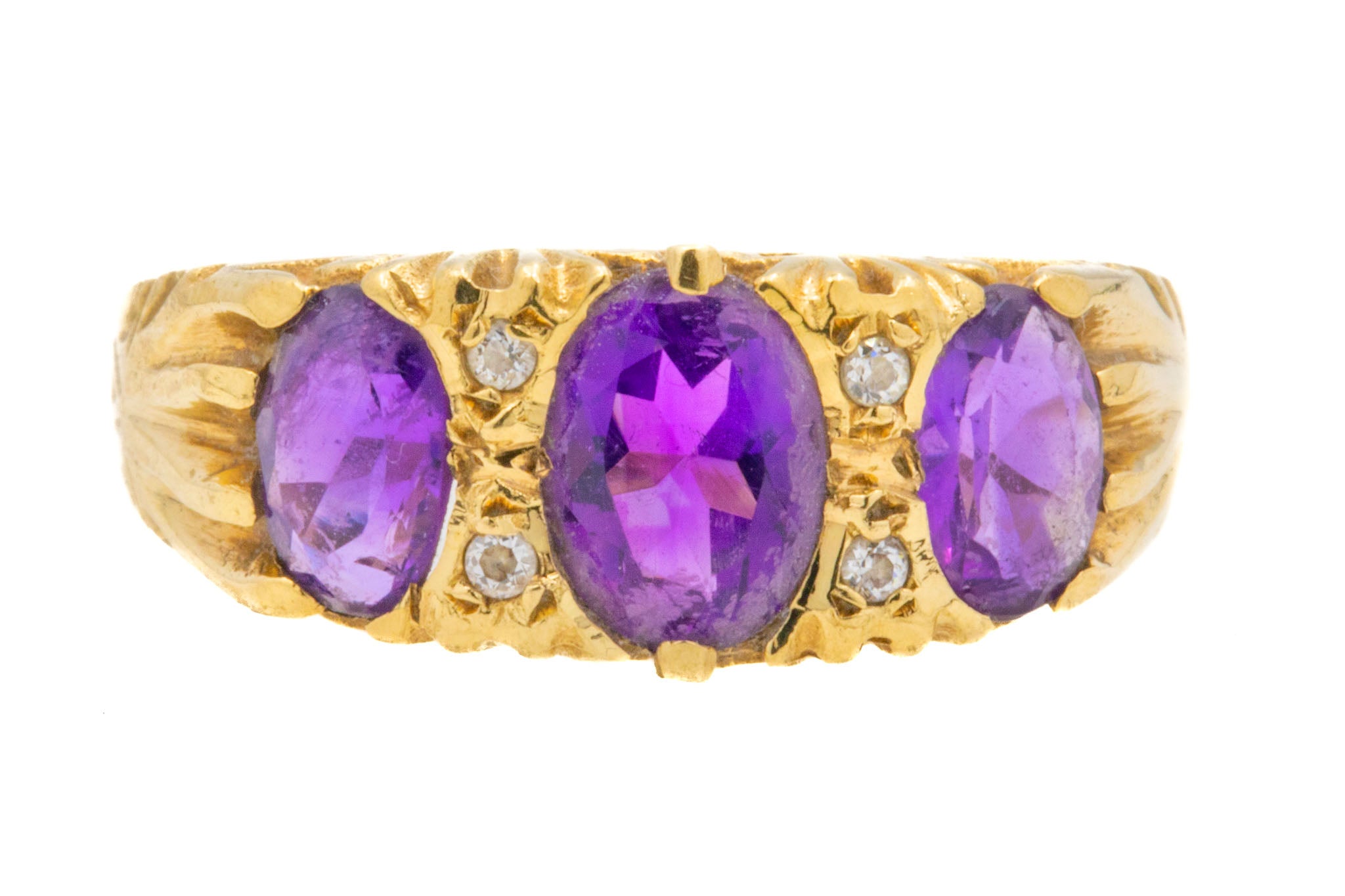 This vintage Gold ring is fit for a princess! The deep purple hue of the Amethysts complements the butter 18ct yellow Gold perfectly, and the Diamonds add that extra dose of luxury.