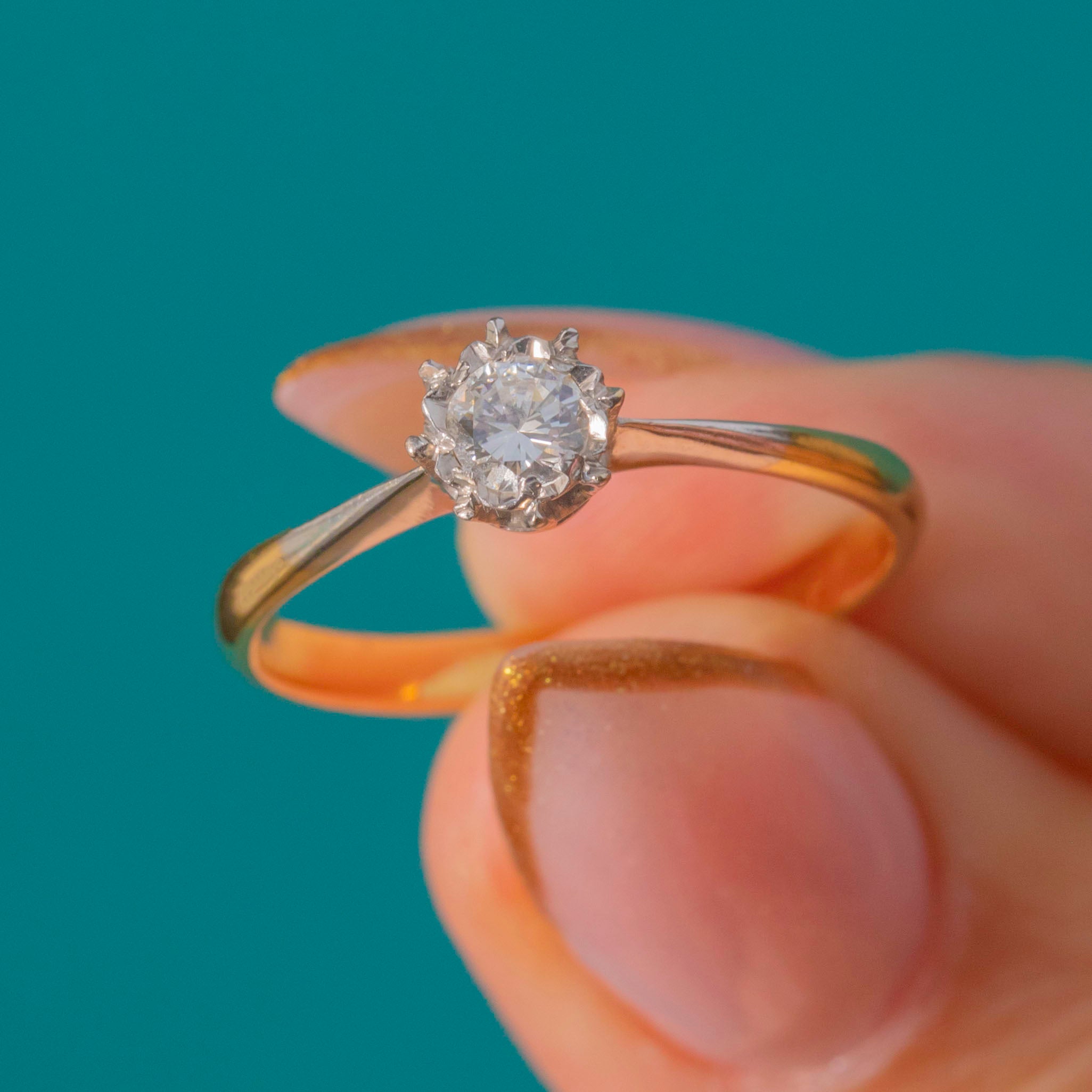 18ct Gold Art Deco 0.30ct Diamond Solitaire Ring c.1930