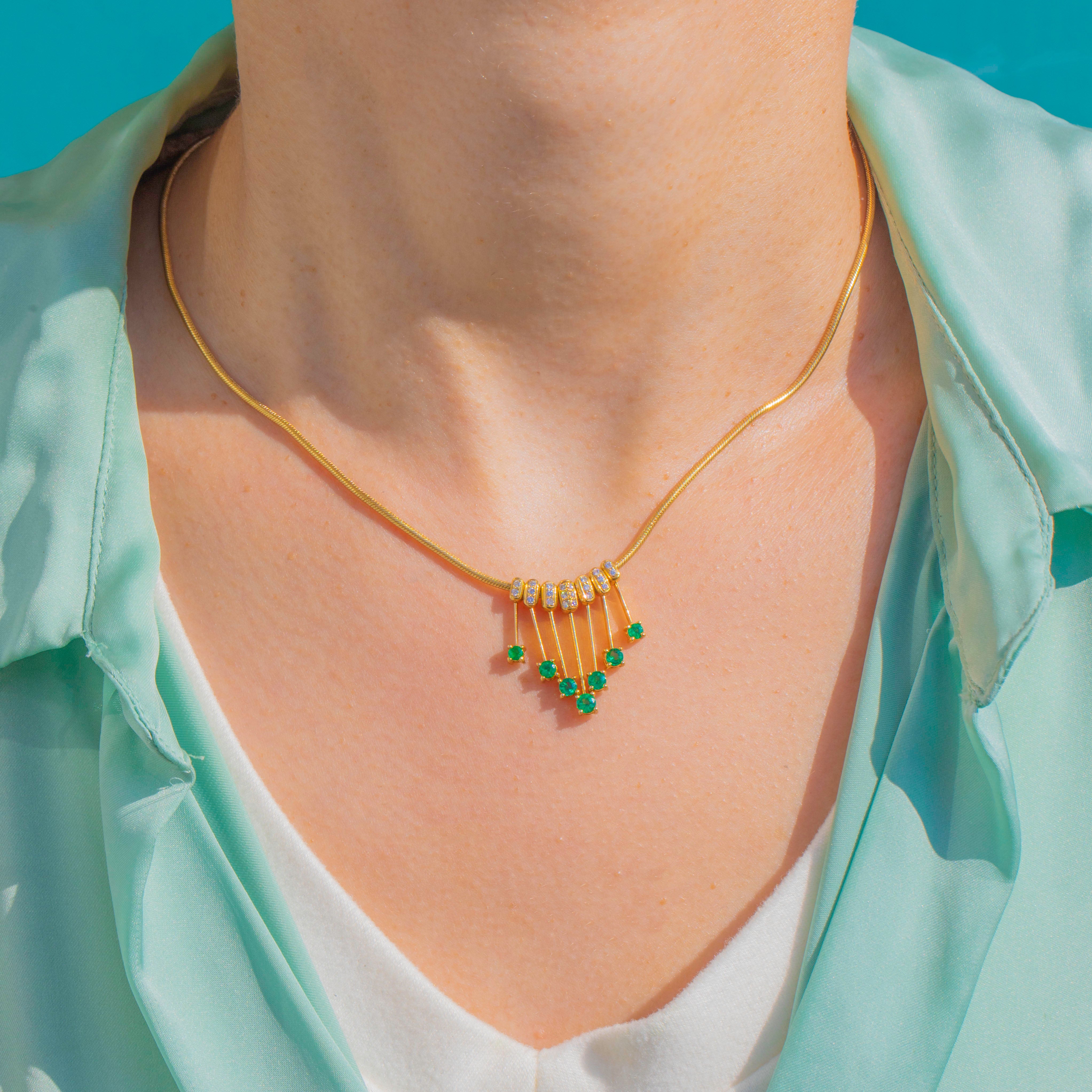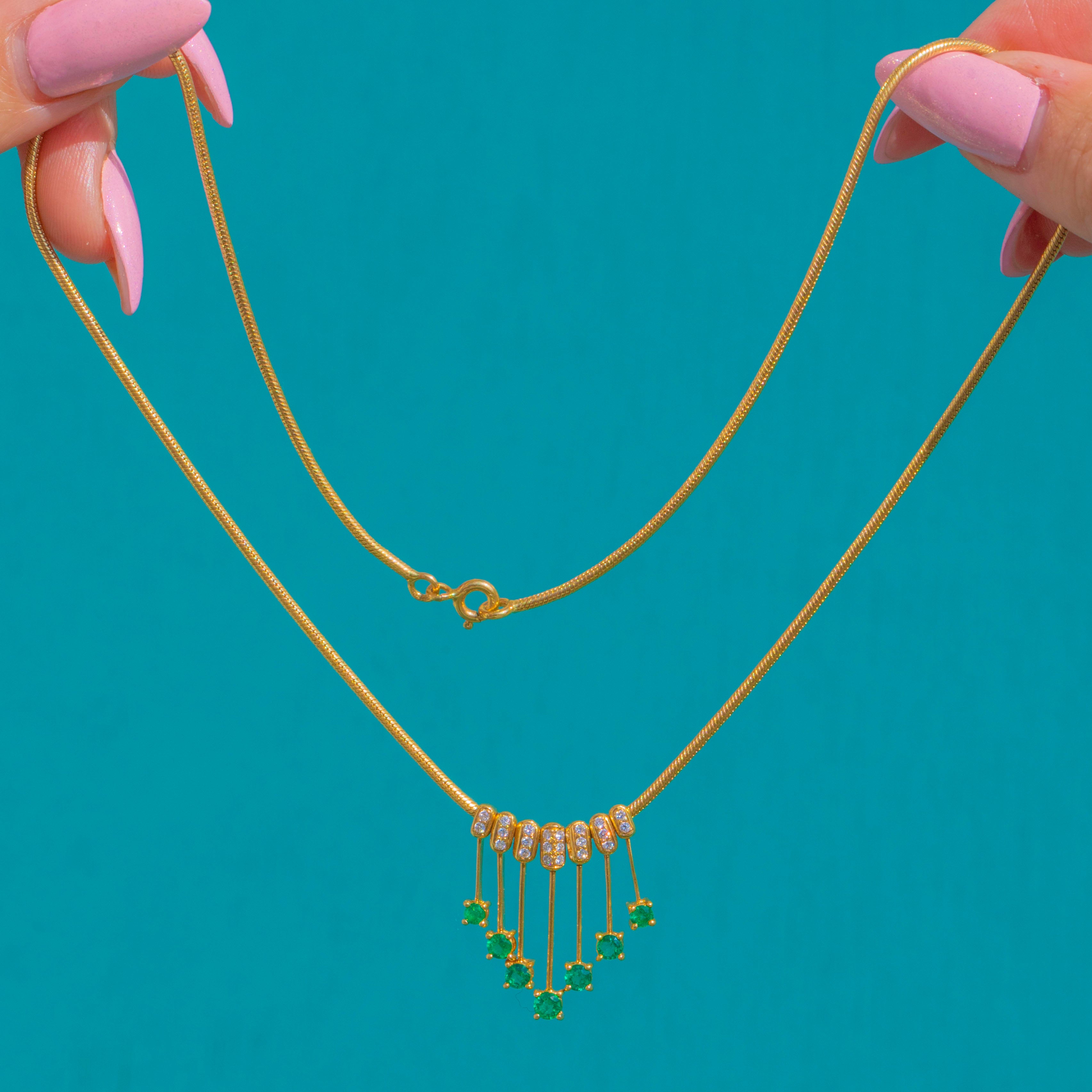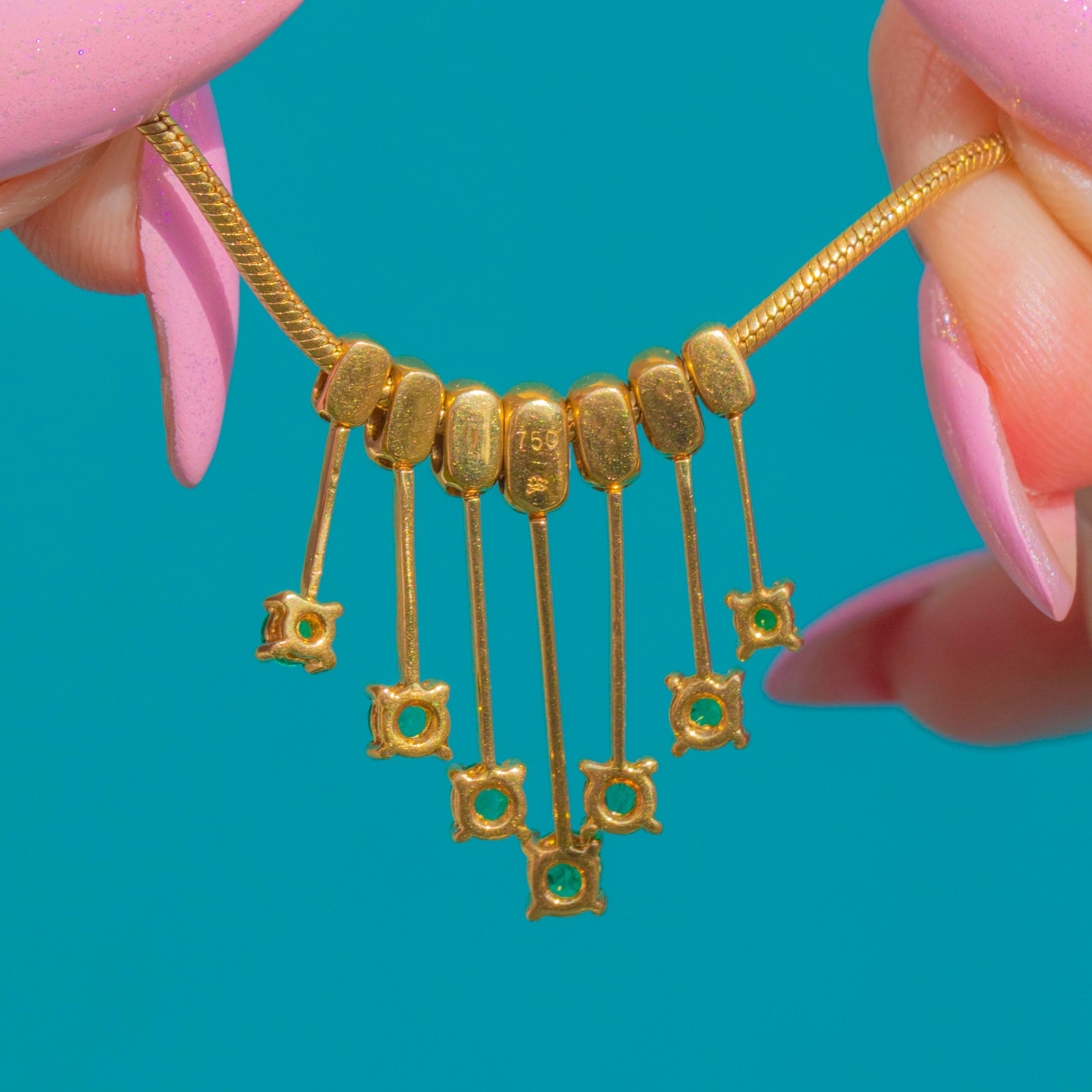 18ct Gold Diamond Emerald Graduated Fringe Necklace