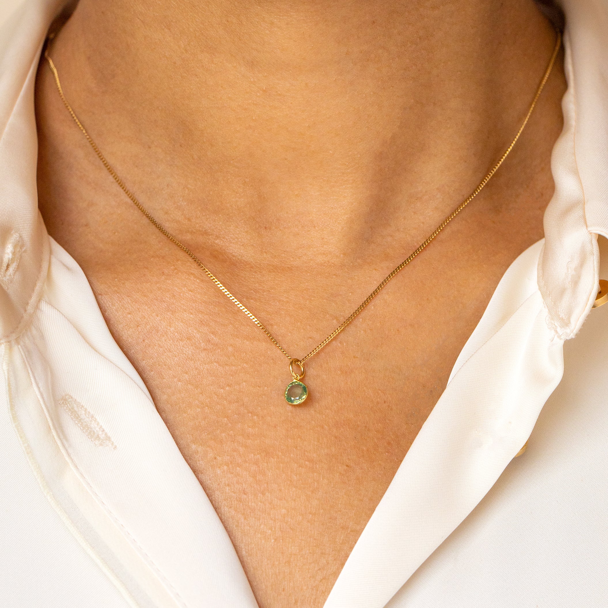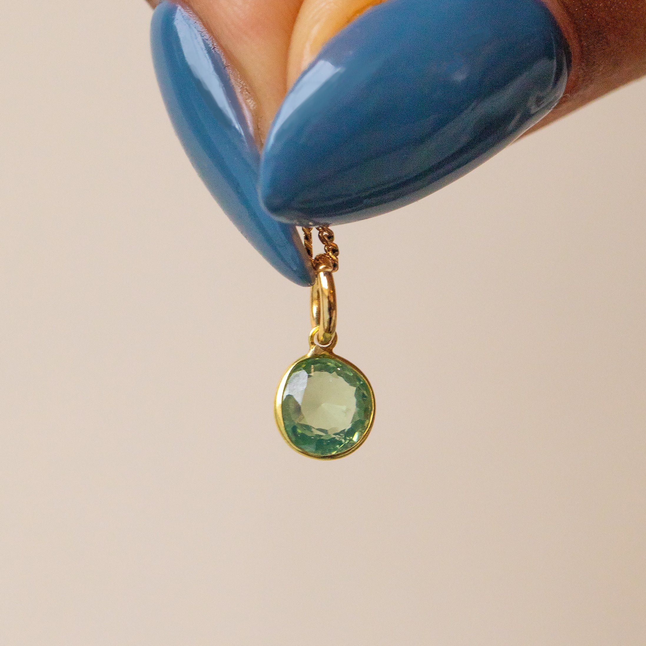 18ct Gold Green Garnet Bezel Set Charm