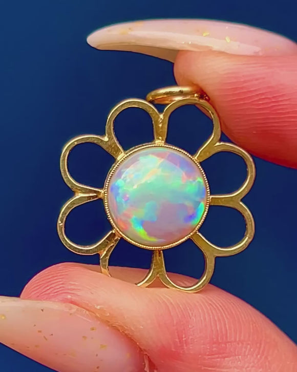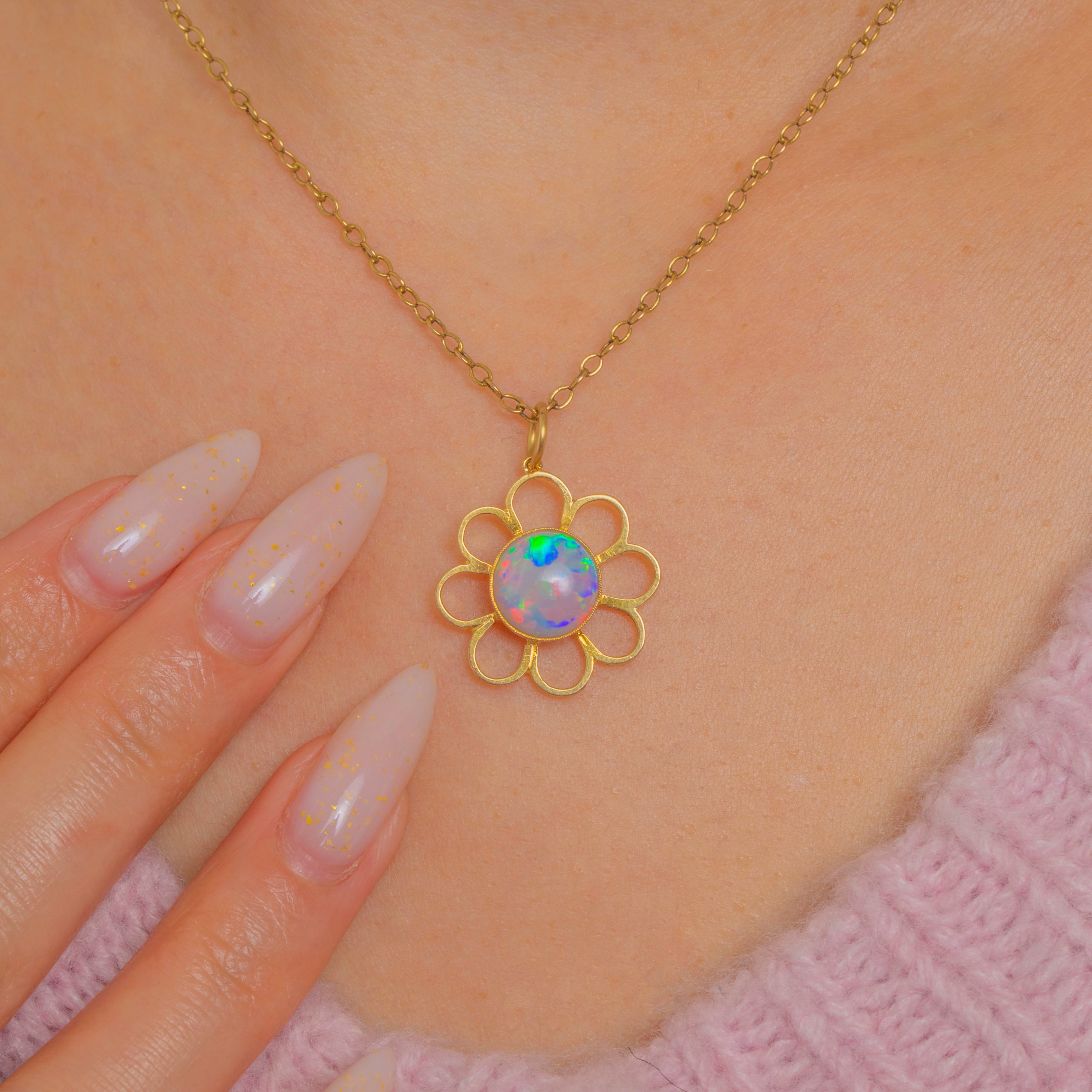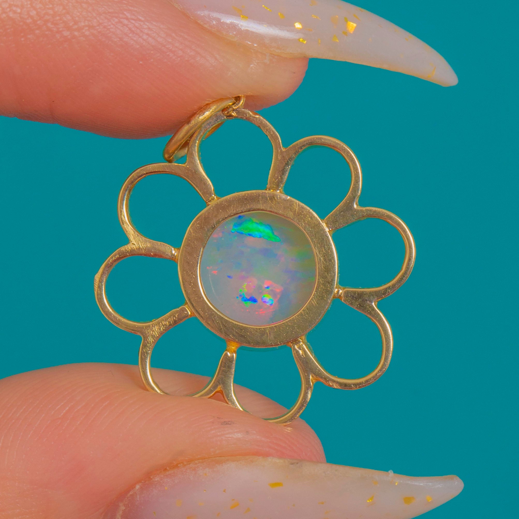 18ct Gold Opal Flower Pendant - 1.84ct Natural Solid Opal