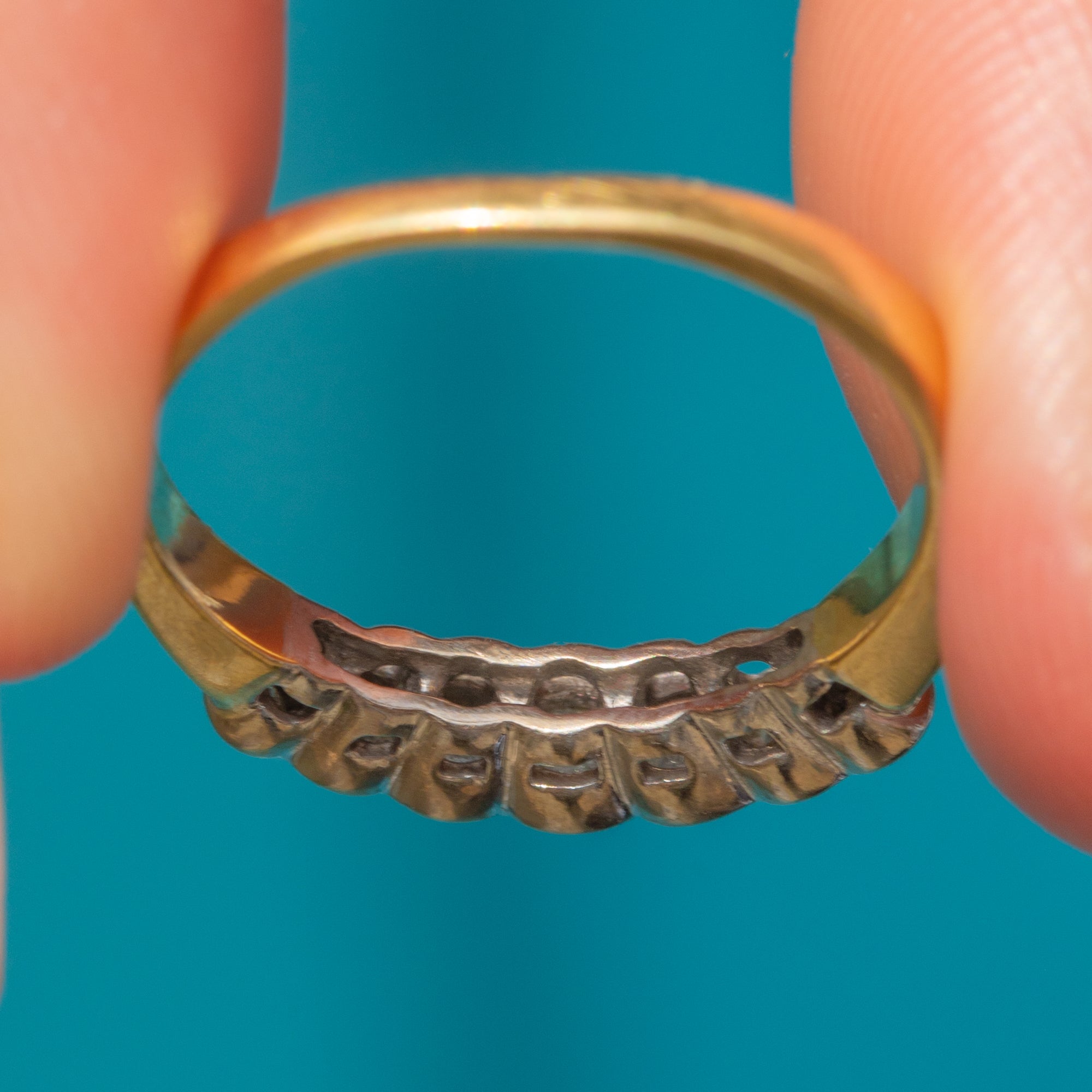 An exquisite vintage Diamond ring to grace your collection. From her sparkling Diamonds, with a 0.20ct spread, to her Platinum settings and buttery 18ct Gold shank, we simply adore everything about this ring!