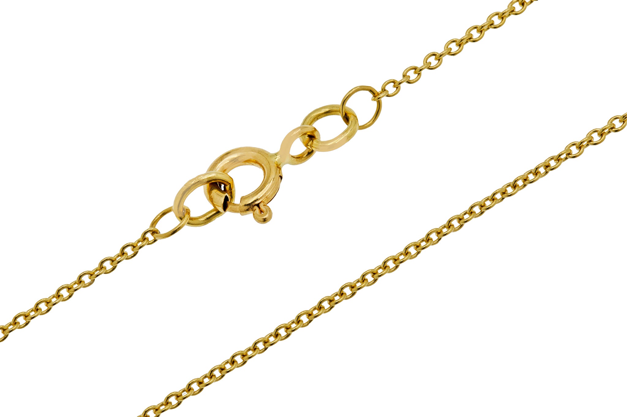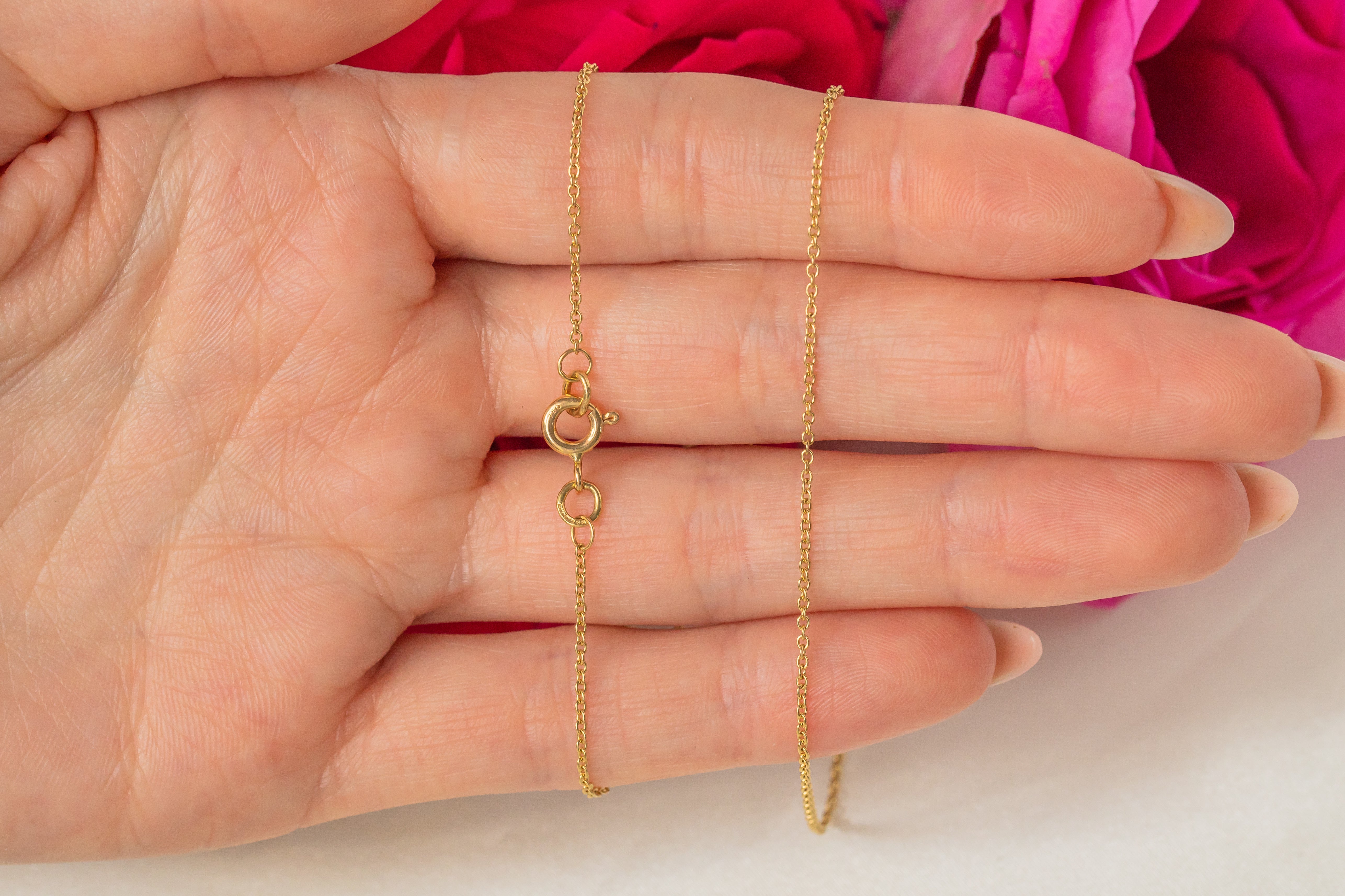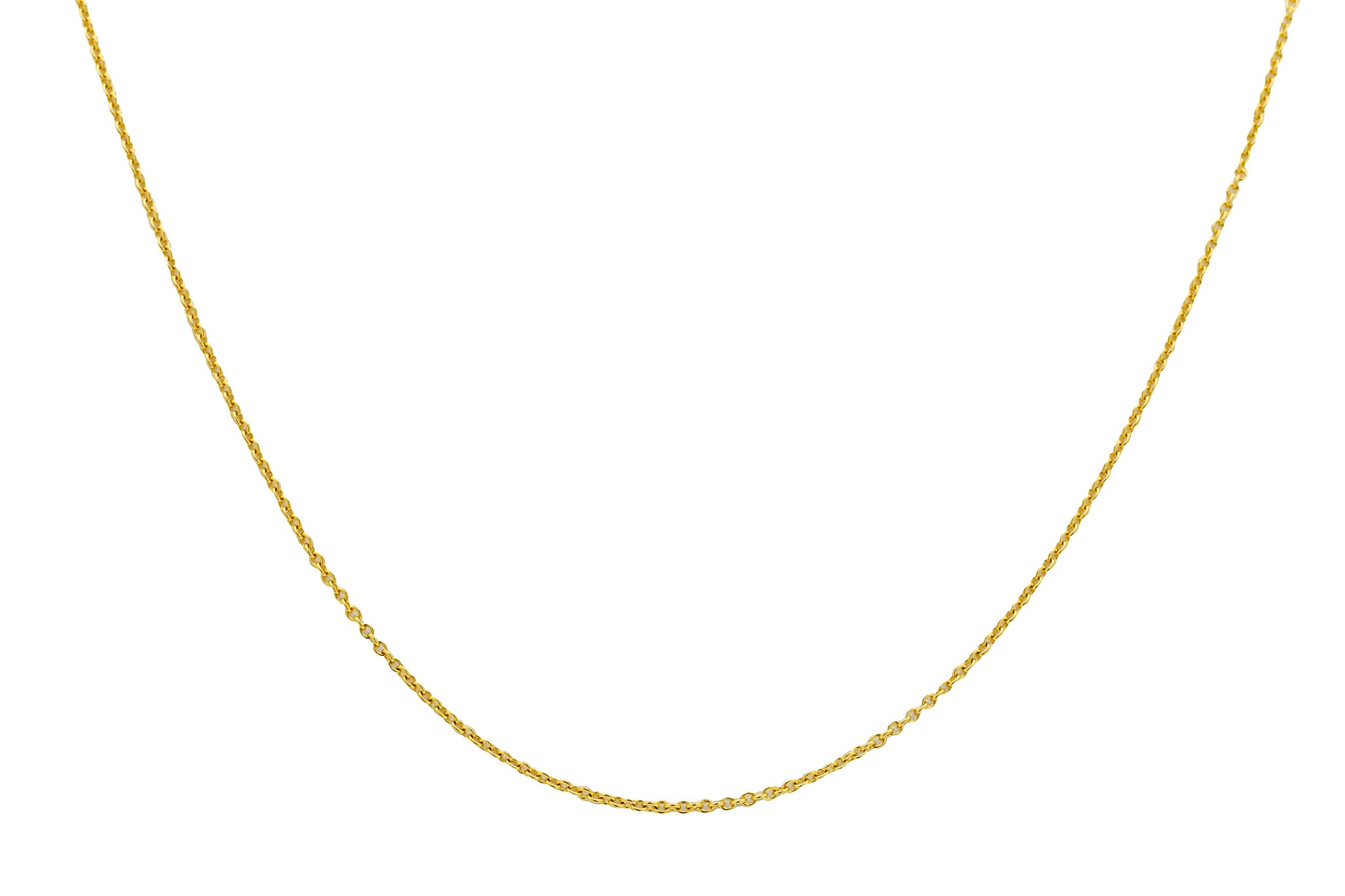 EXCELLENT. This 18ct Gold skinny pendant chain is in excellent condition. This piece has so much wear potential and hasn't aged a day since her mid-century start in life. The links are firmly attached and the bolt ring is in perfect working order, allowing you to wear it with confidence.