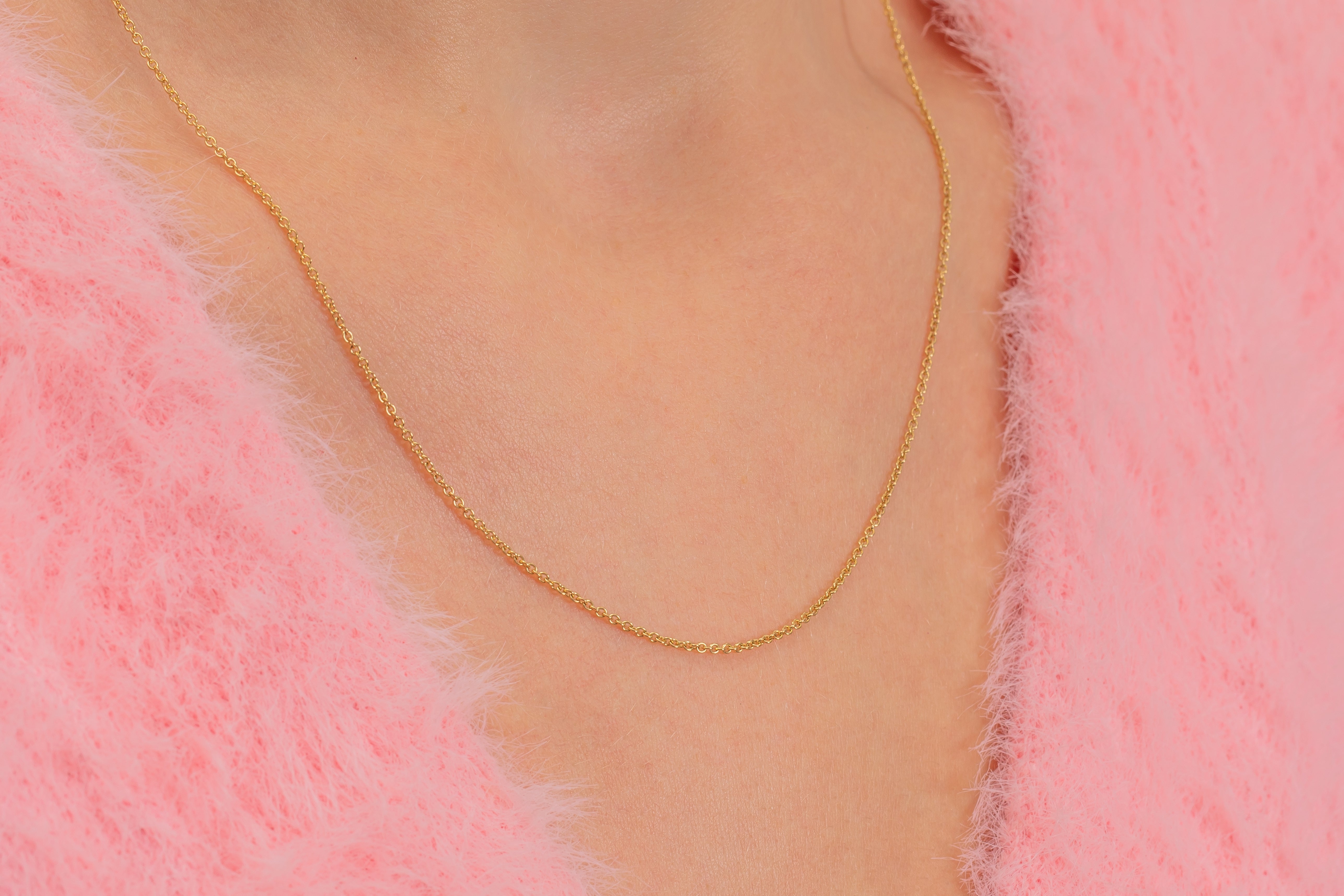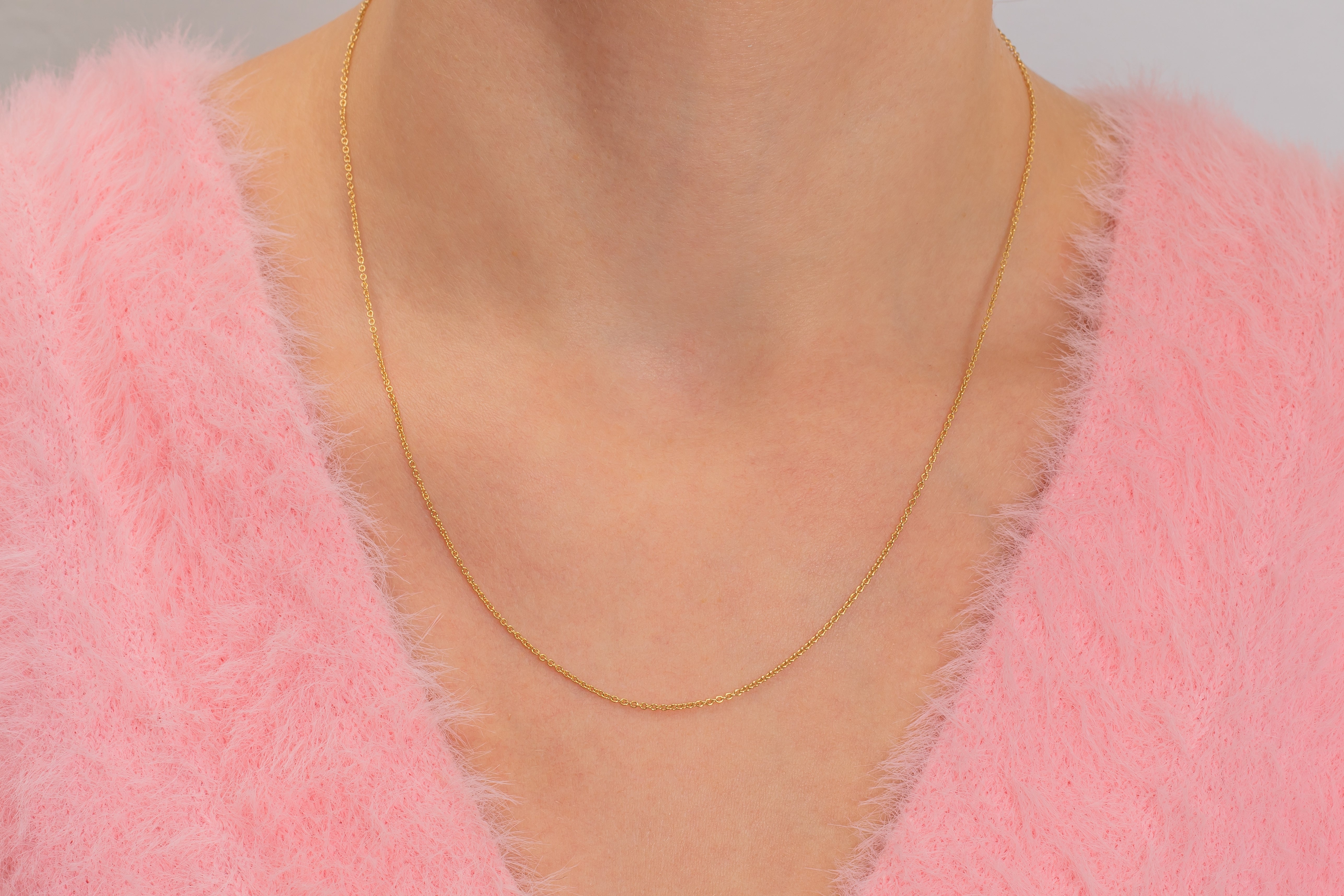 This divine 18ct Gold skinny pendant chain will become a staple within your jewellery collection! This beautiful piece has been crafted from solid 18ct Gold, with an adjustable length of 16" to 18" making it a versatile piece.