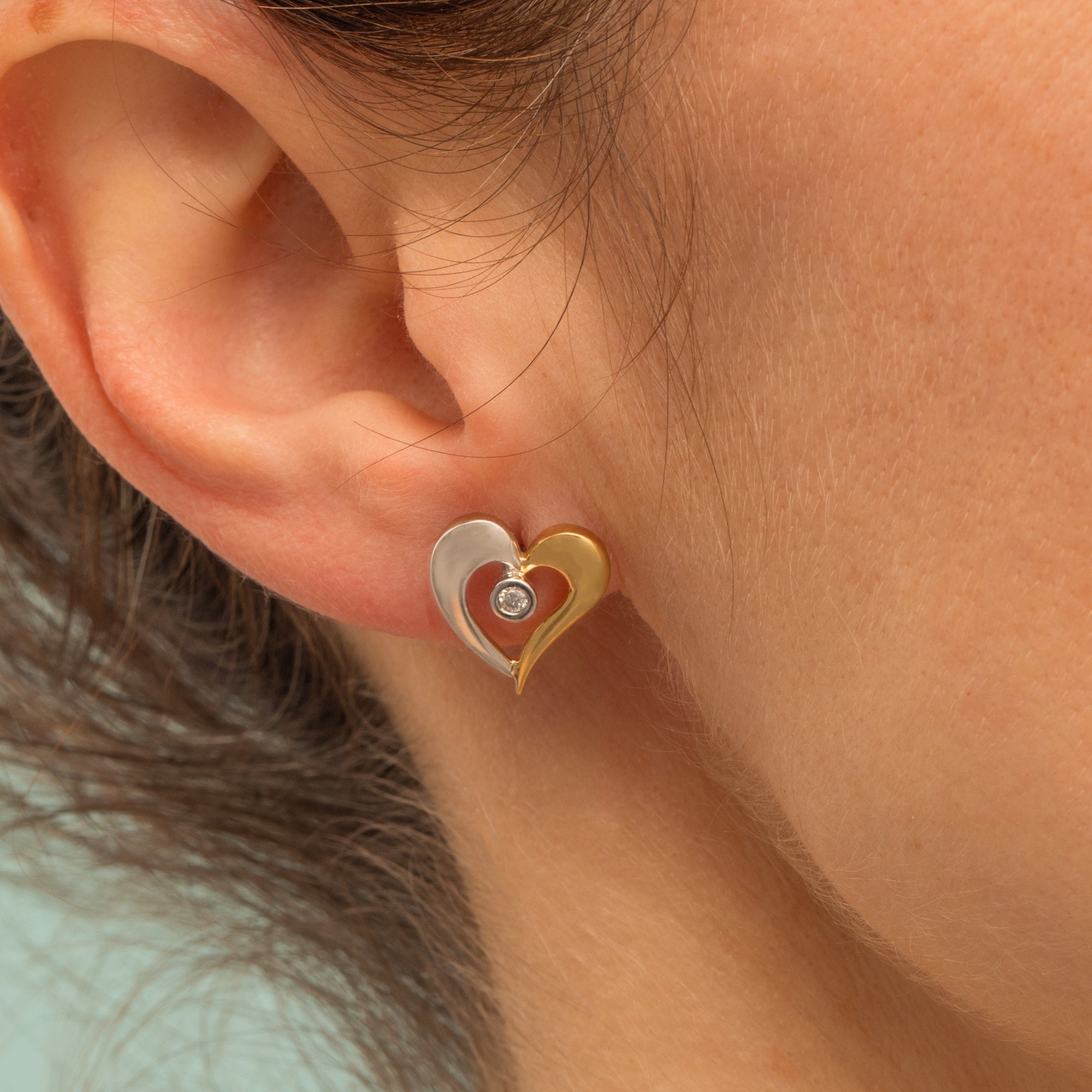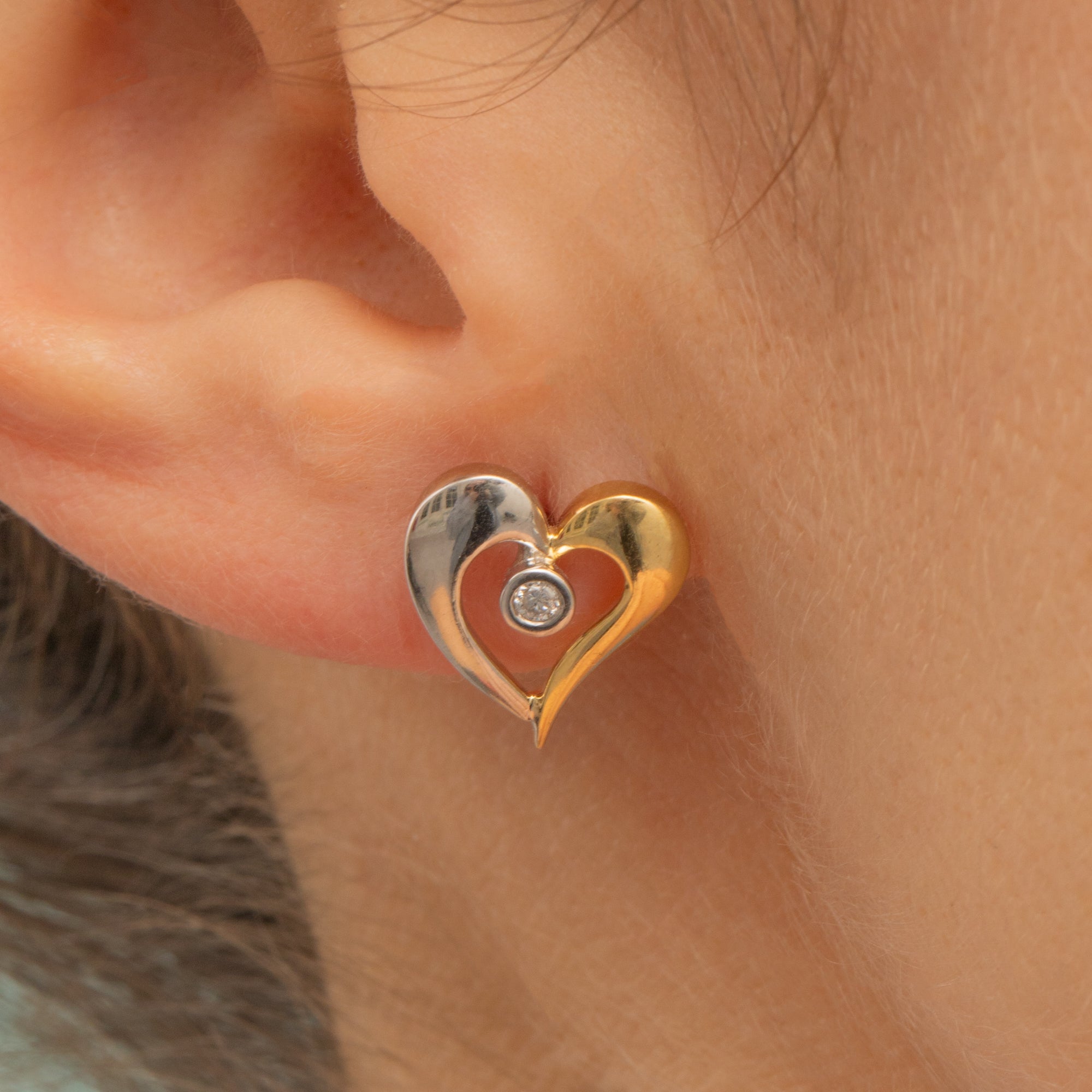 Each stud is divided into white and yellow Gold, married together by a scintillating Diamond in their centre. Adding a touch of romance to your collection, these lightweight Vintage stud earrings are the perfect pair for everyday wear.