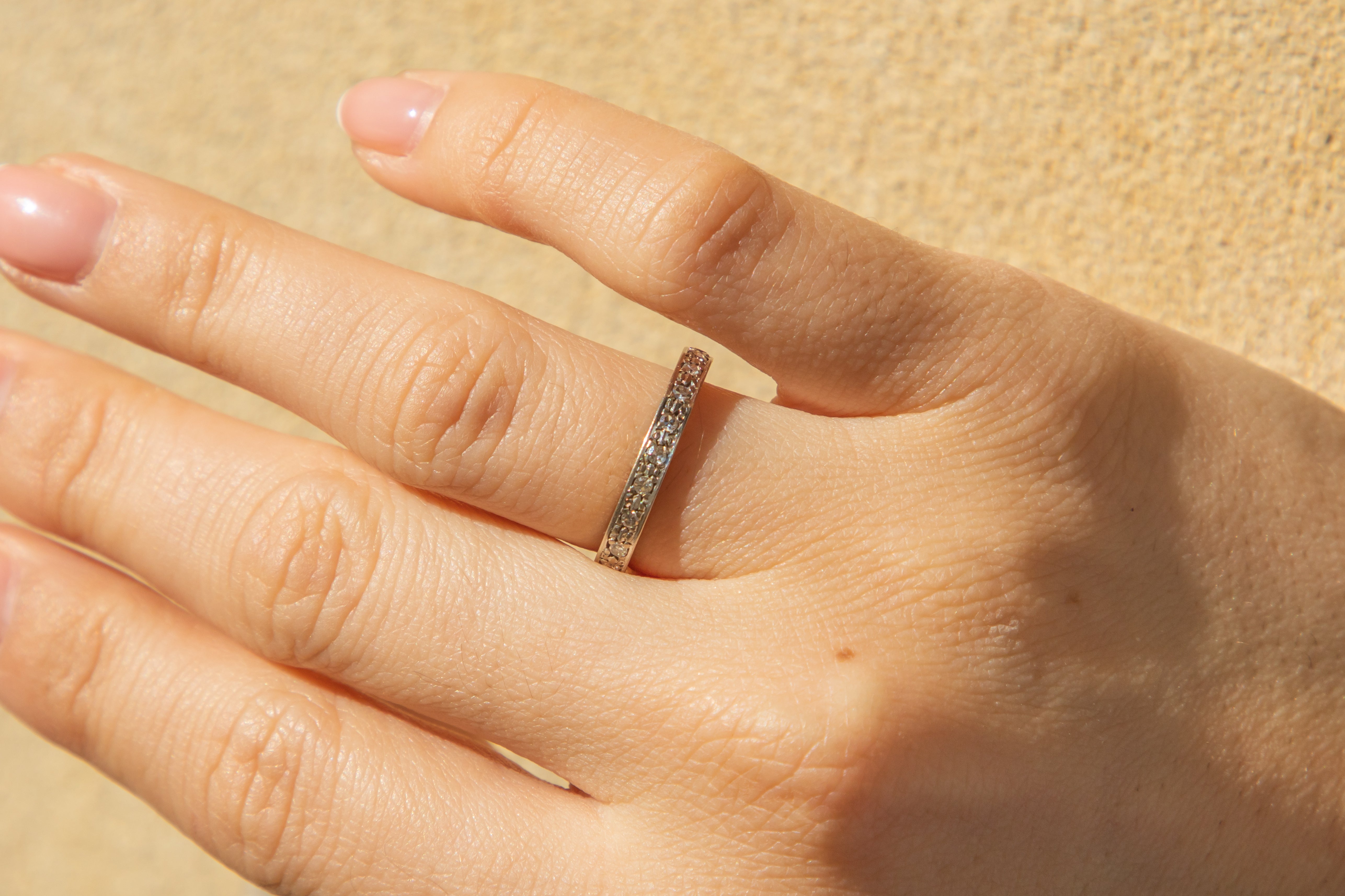 The Diamonds all look gorgeous, each with a brilliant little twinkle which will be all you need to polish off a ring stack. This piece is perfect to be worn daily, good enough to be worn alone but perfect to be stacked!