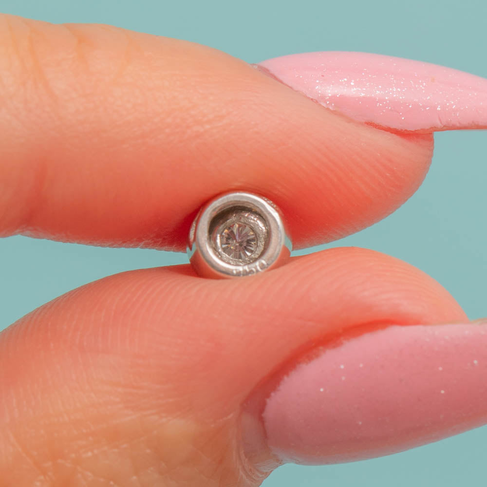 EXCELLENT: This 18ct White Gold Diamond slider charm is in fabulous condition. The Diamond is securely set within the 18ct white Gold settings with no wear to note. Easy to wear and style, don't hesitate to make this dainty Diamond charm your newest staple piece!