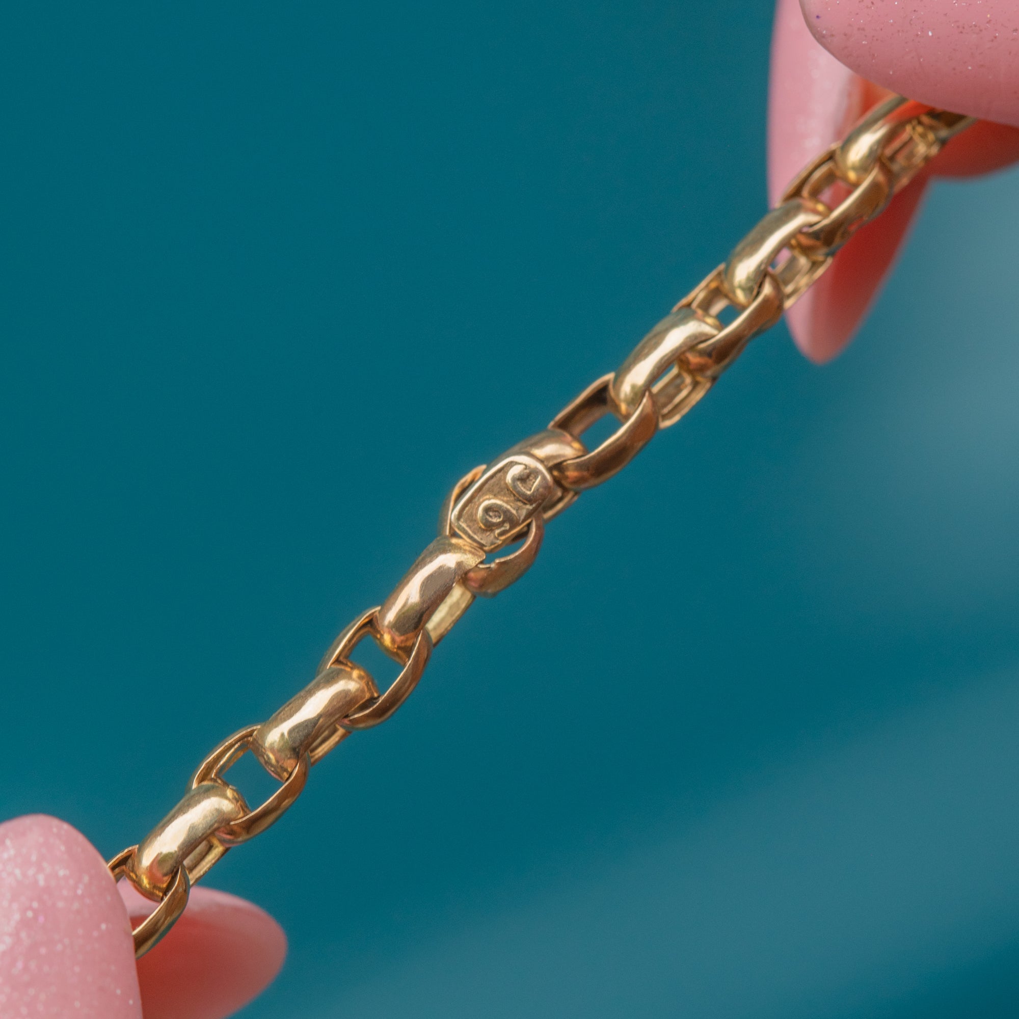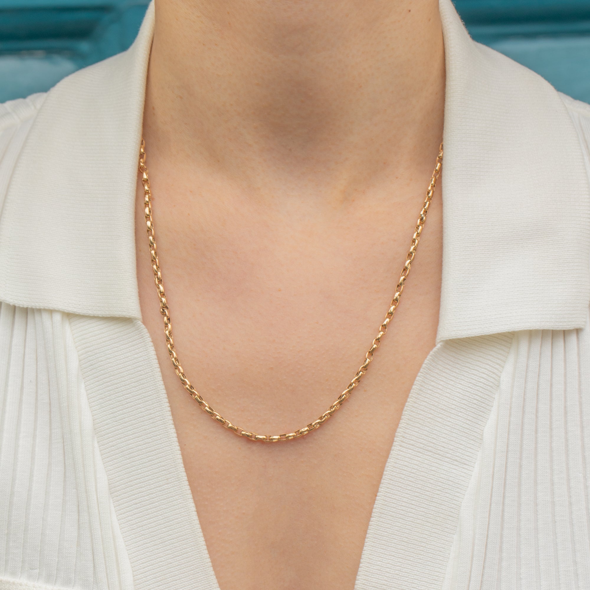 Crafted entirely from glossy 9ct Gold, this Victorian belcher has a gorgeous sheen and glows as she adorns your décolletage. Victorian Gold chains are undeniably versatile, and she is no exception!