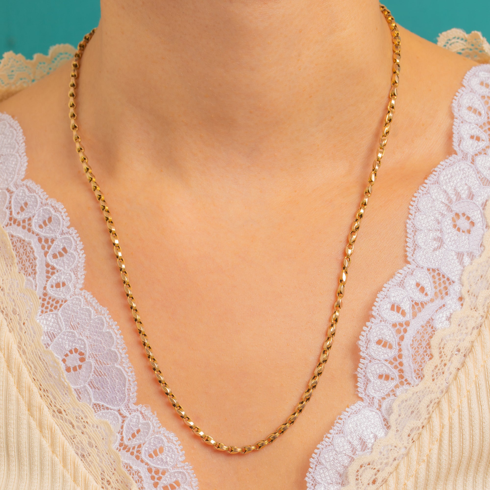 Elegant and effortlessly wearable, this Victorian 9ct Gold Tulip chain shimmers with crisp, faceted links that catch the light beautifully. Its refined, minimalist profile makes it a chic standalone piece and a flawless foundation for layering.