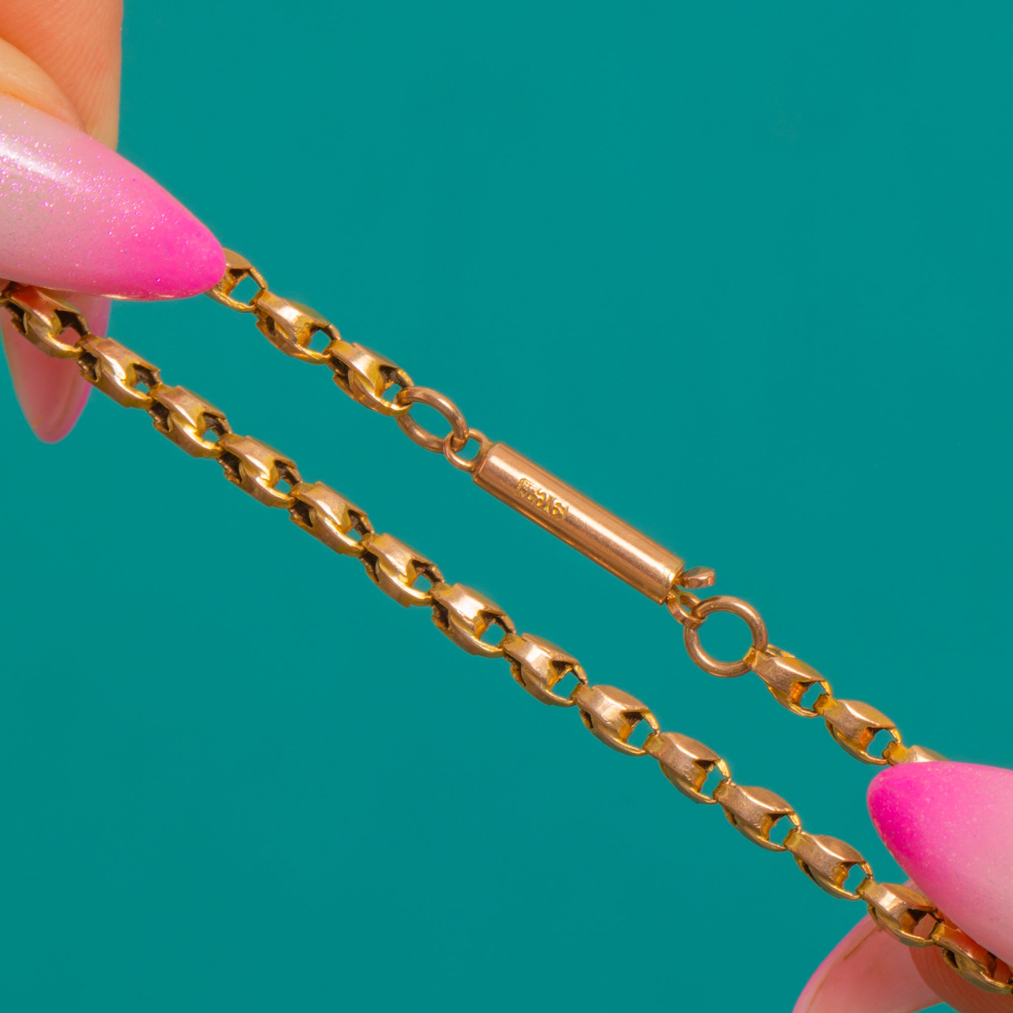 STAMPS: 9ct stamped on clasp, 9ct stamped on chain.
